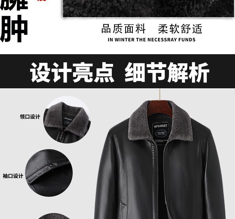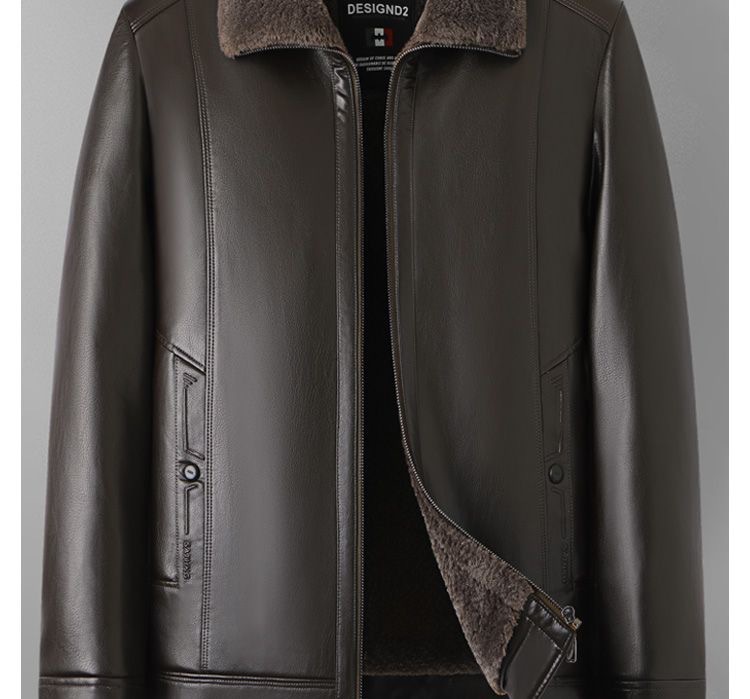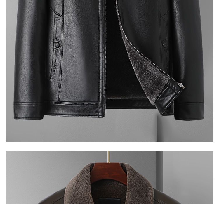 중년 남성용 가죽 자켓, 벨벳 안감, 두꺼운 겨울용 가죽과 모피 일체형 아빠옷, 중장년 가죽 의류스토어 가기