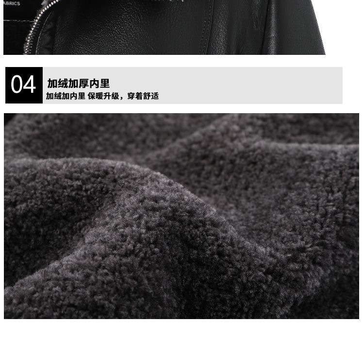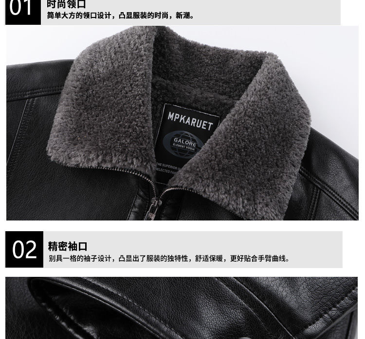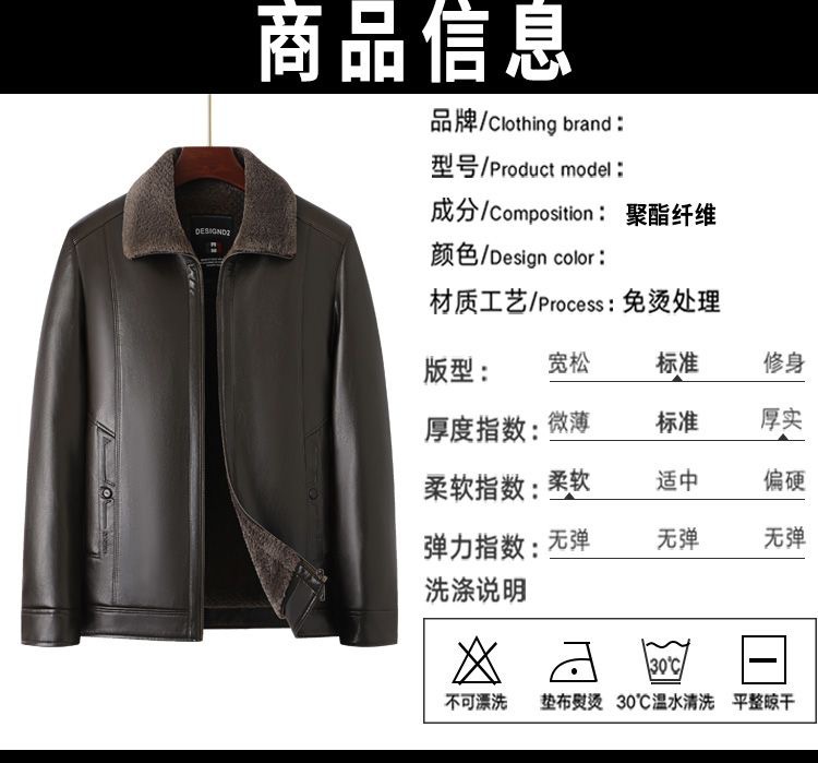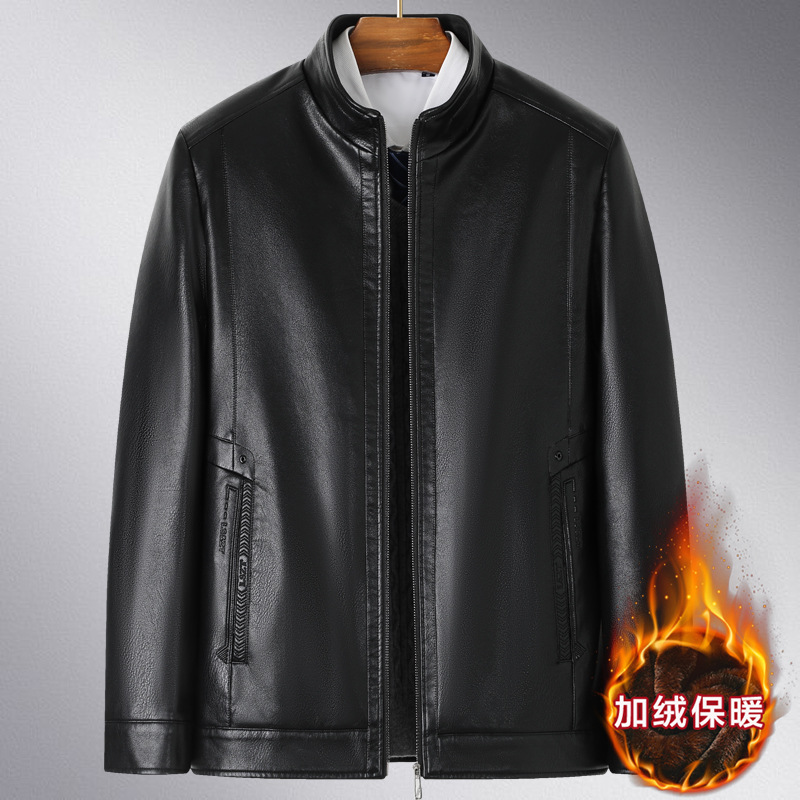 중년 남성용 가죽 자켓, 벨벳 안감, 두꺼운 겨울용 가죽과 모피 일체형 아빠옷, 중장년 가죽 의류