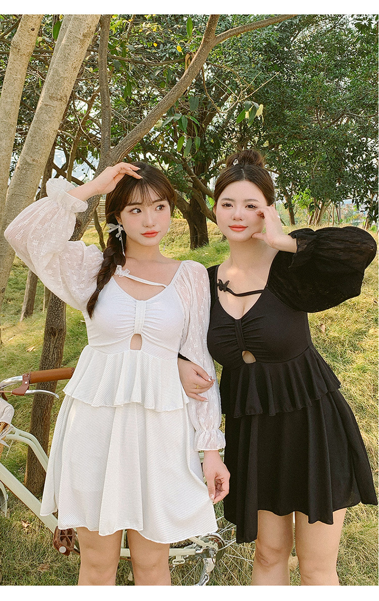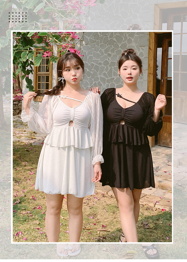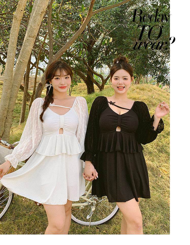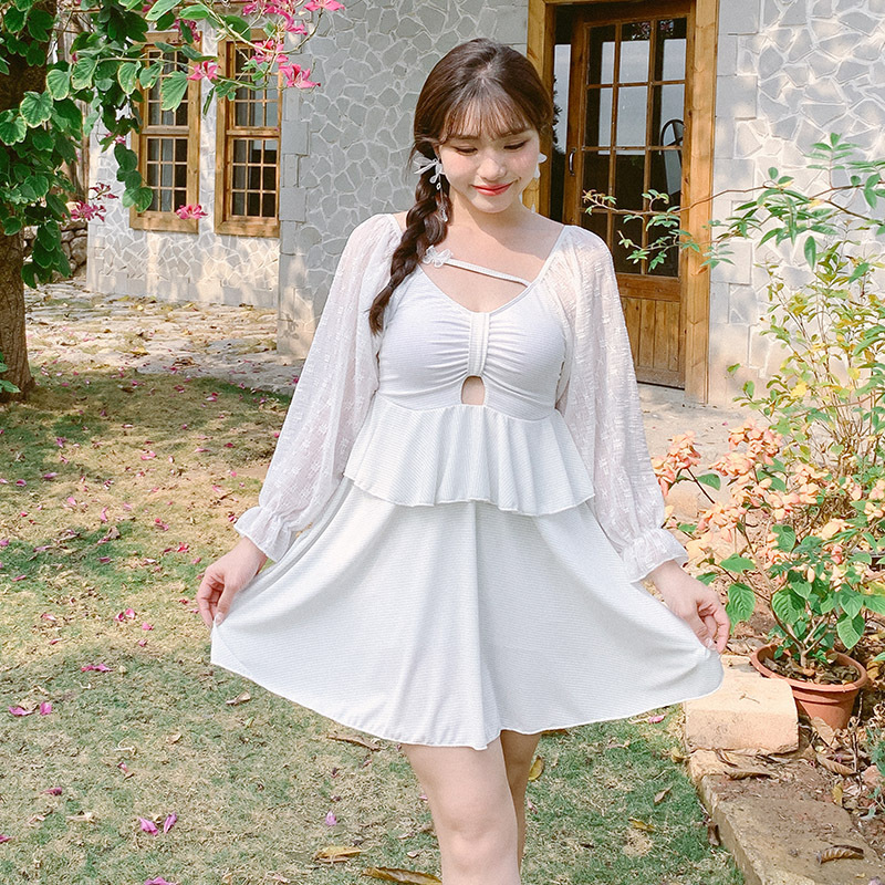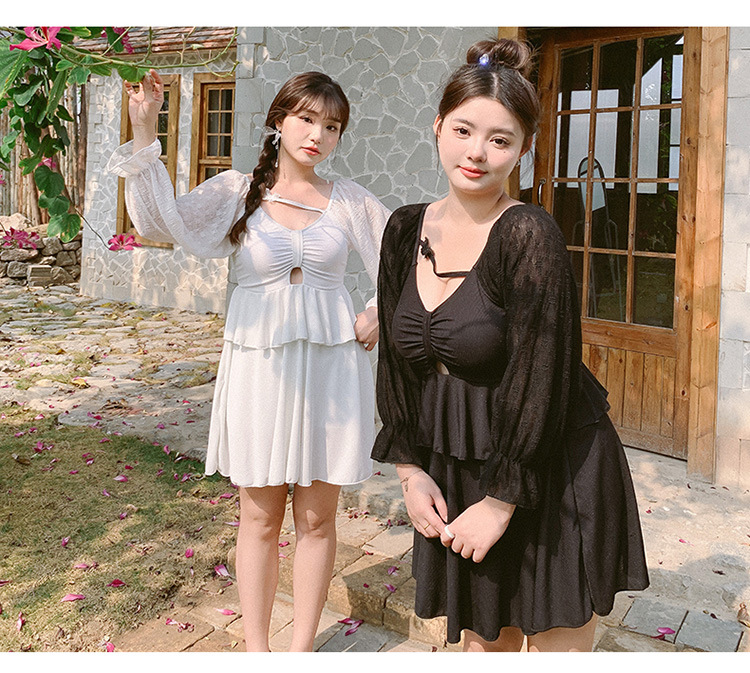대형 스커트 원피스 수영복 여성 200kg 통통녀 배꼽 슬림 온천 지방 자매 보수 수영복 섹시