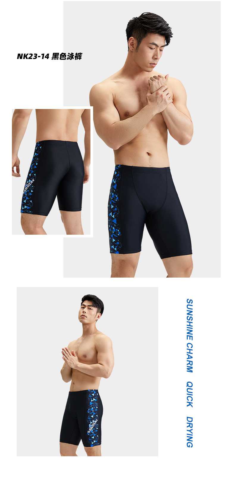 SABOLAY 남성용 나일론 수영복 새로운 고급형 사각형 성인용 경주 수영 전문 장비 남성용스토어 가기