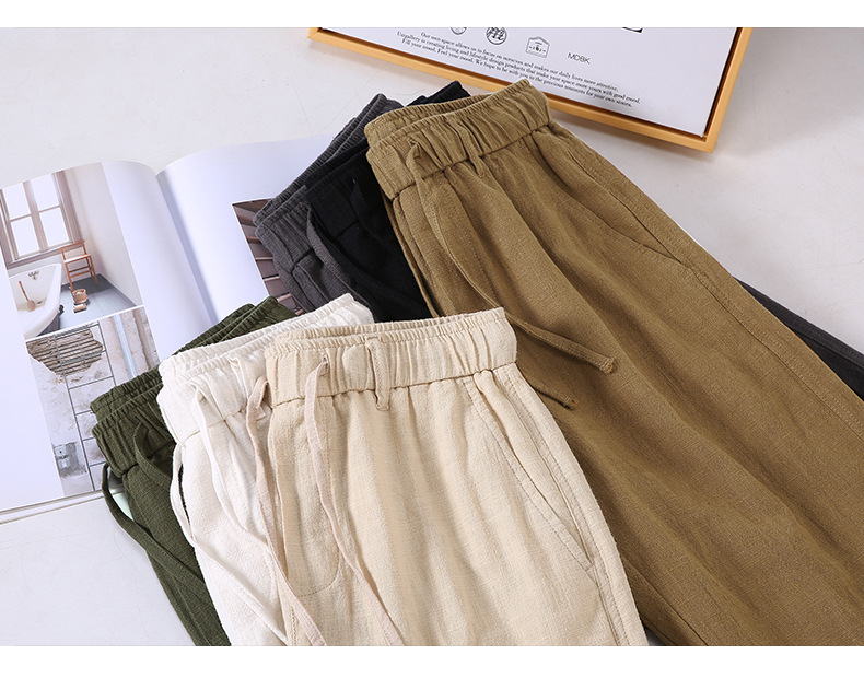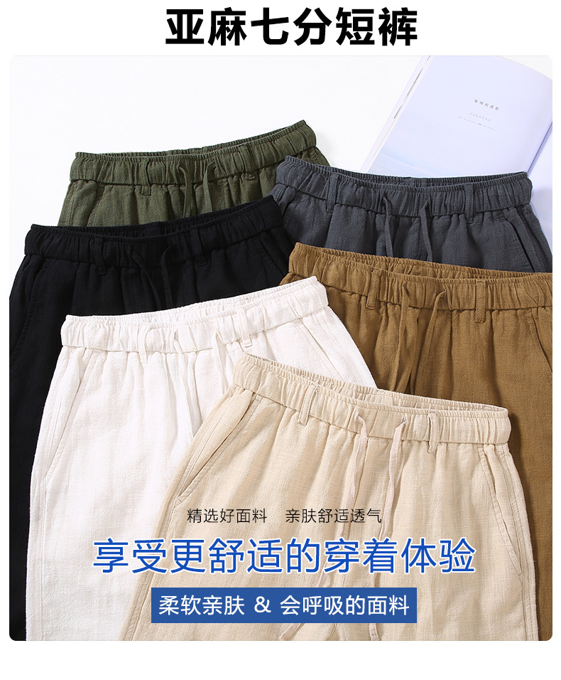 3041 라미 캐주얼 남성 반바지 여름 느슨한 외부 착용 카프리 바지 얇은 편안한 리넨 바지 남성스토어 가기