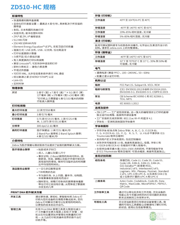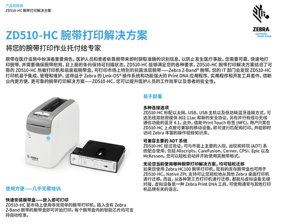 ZEBRAzebra ZD510-HC 손목 밴드 프린터 성인 어린이 HC100 열 라벨 병원 엔터테인먼트