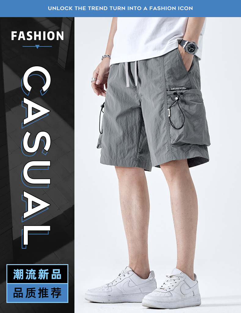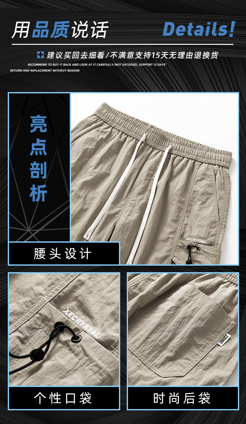 아이스 실크 반바지 남자 여름 새로운 얇은 멀티 포켓 주머니 바지 유행 느슨한 편안한 올 매치 캐주얼 바지스토어 가기
