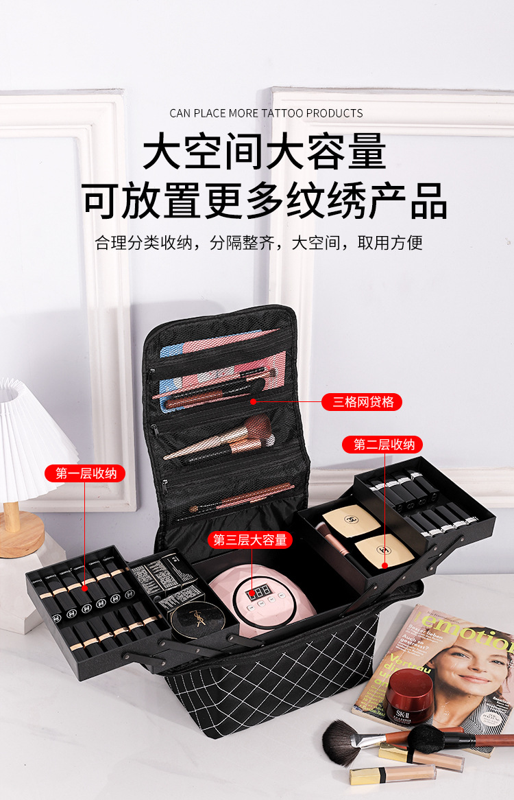 대용량 휴대용 화장품 가방 다층 문신 네일 아트 도구 상자 간단한 높은 수준의 고급 화장품 보관 가방스토어 가기