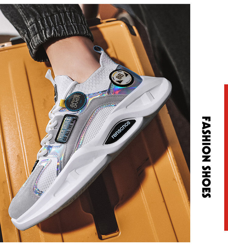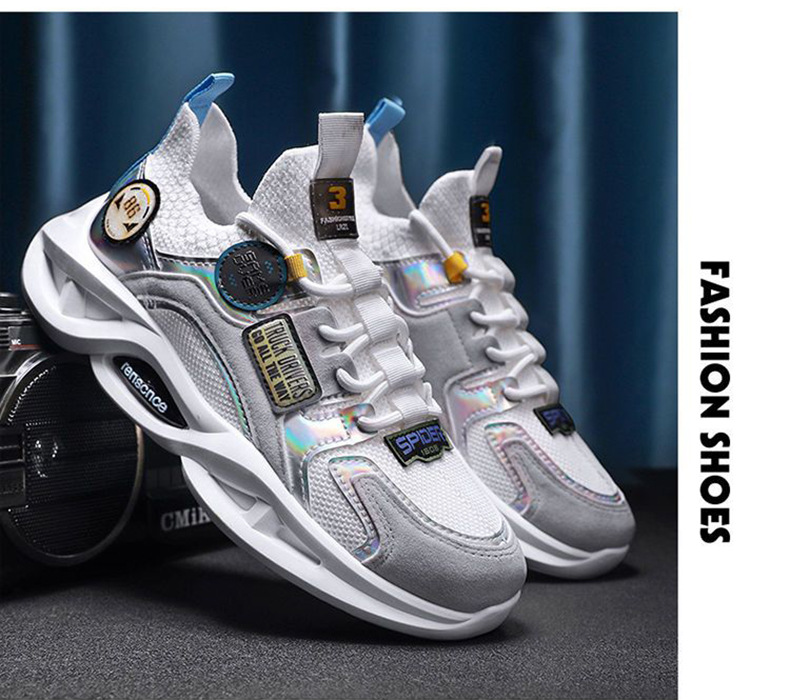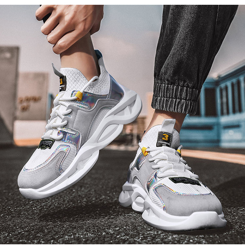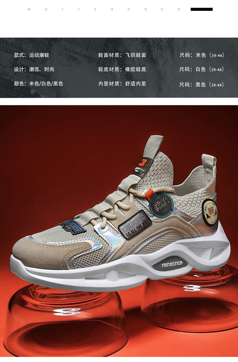 봄 새로운 패션 남성 신발 레이스 업 통기성 플라이 짠 운동화 패션 블레이드 두꺼운 바닥 편안한 운동화 세대