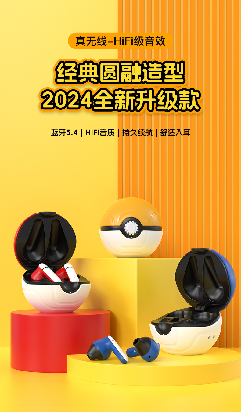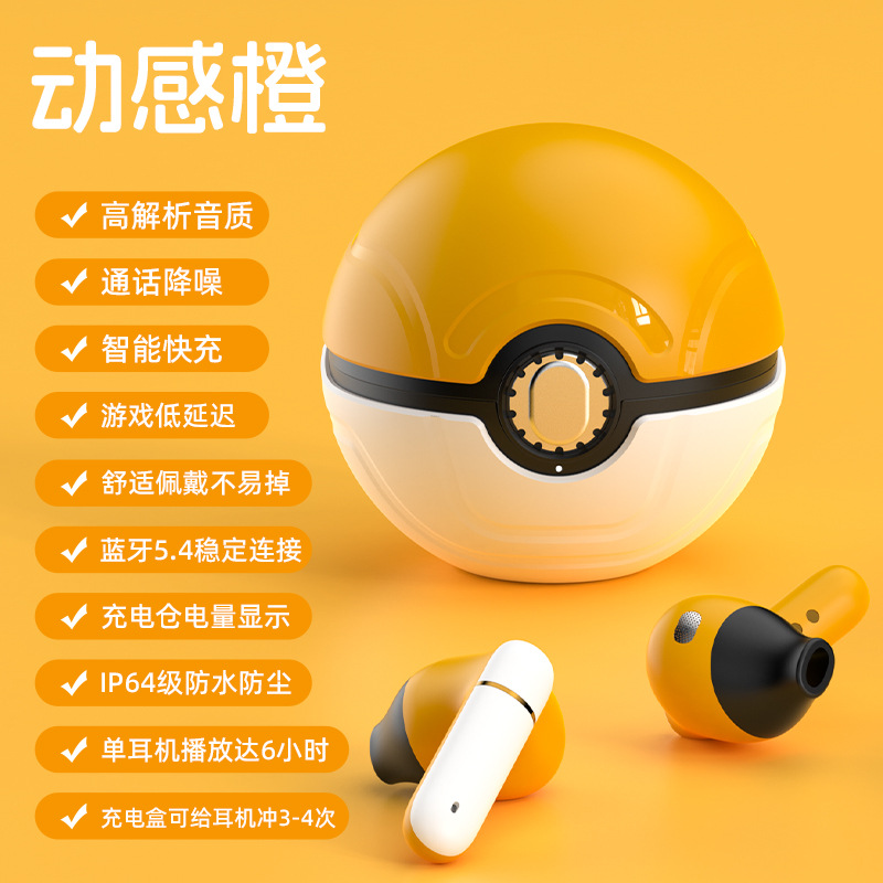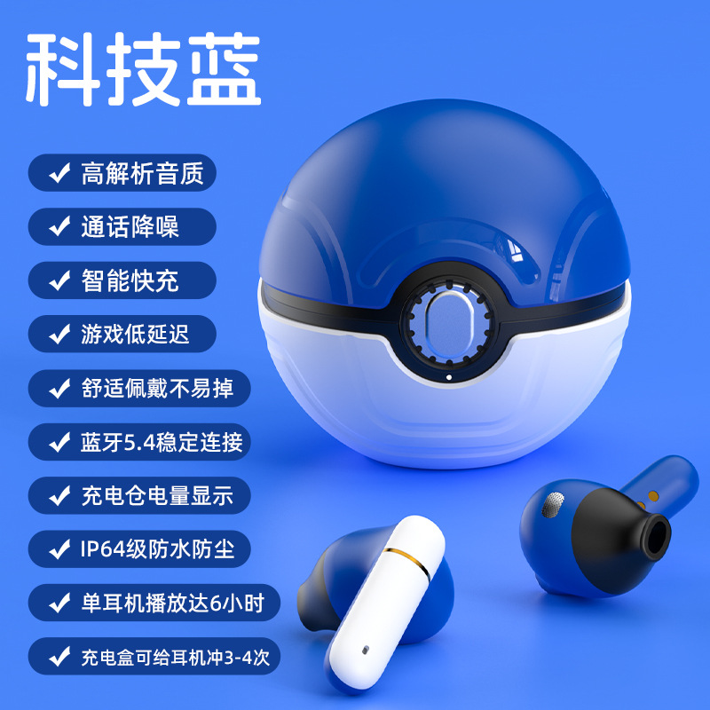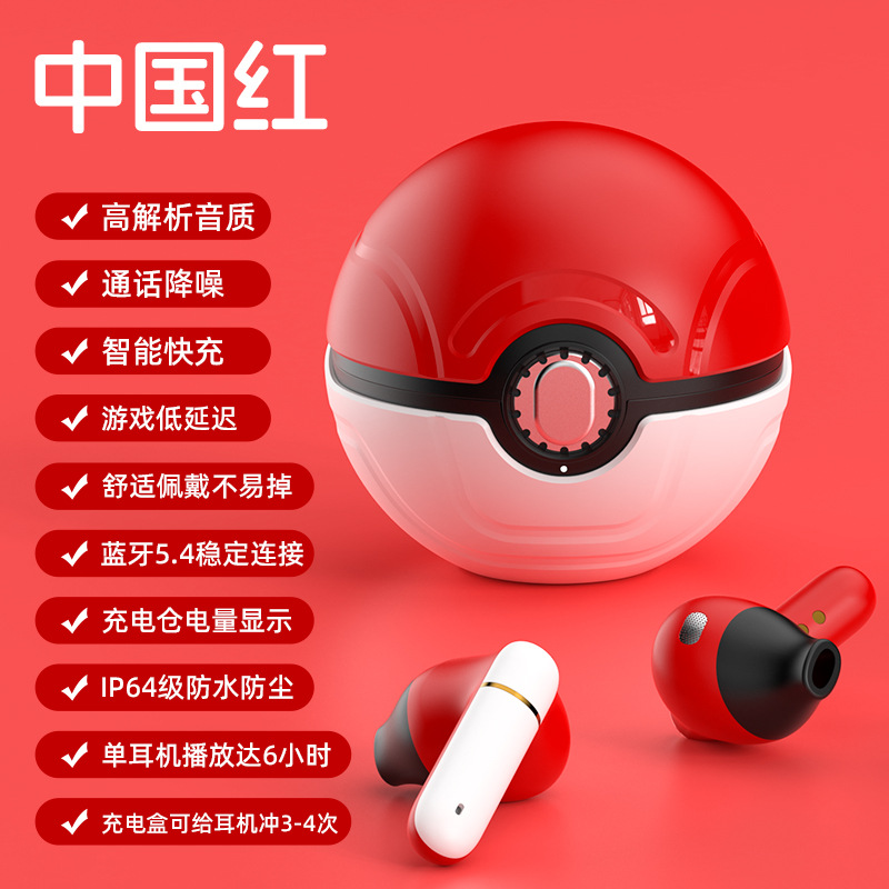 2025 새로운 Pokeball 만화 tws 무선 블루투스 헤드셋 슈퍼 긴 배터리 수명 소음 감소 게임 헤드셋 휴대용스토어 가기