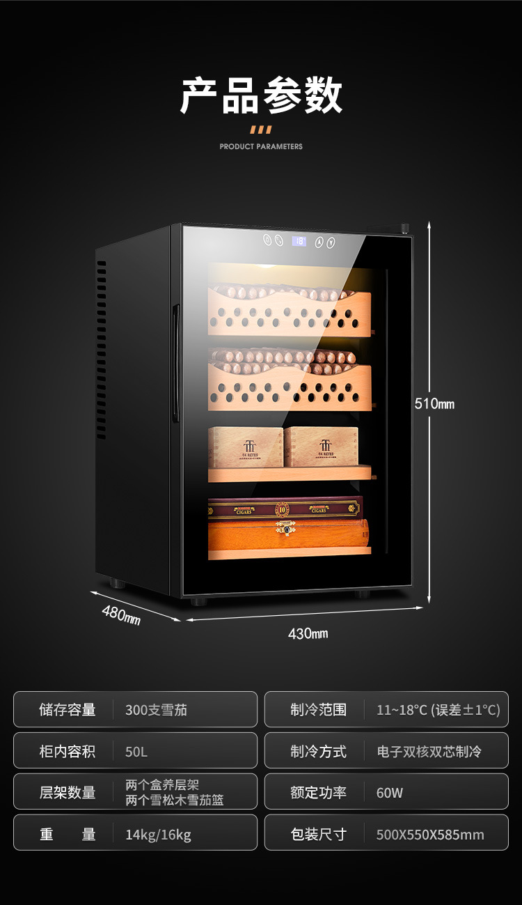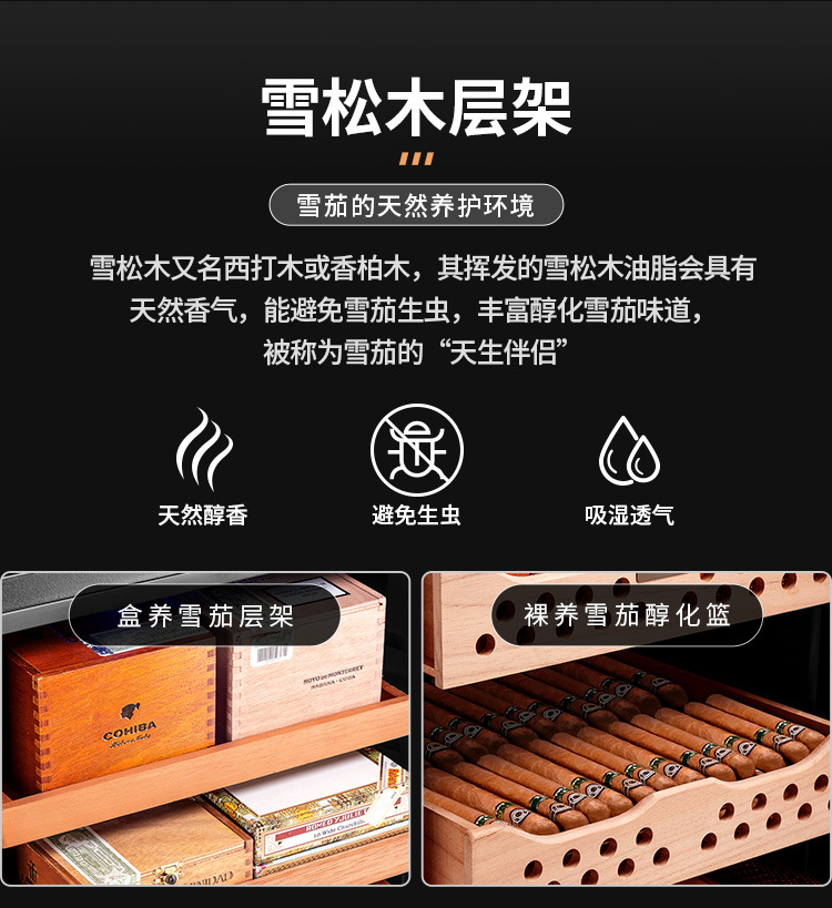 恒温保湿雪茄柜雪松木层架小型烟柜红酒柜古巴茄窖无霜风冷雪茄柜