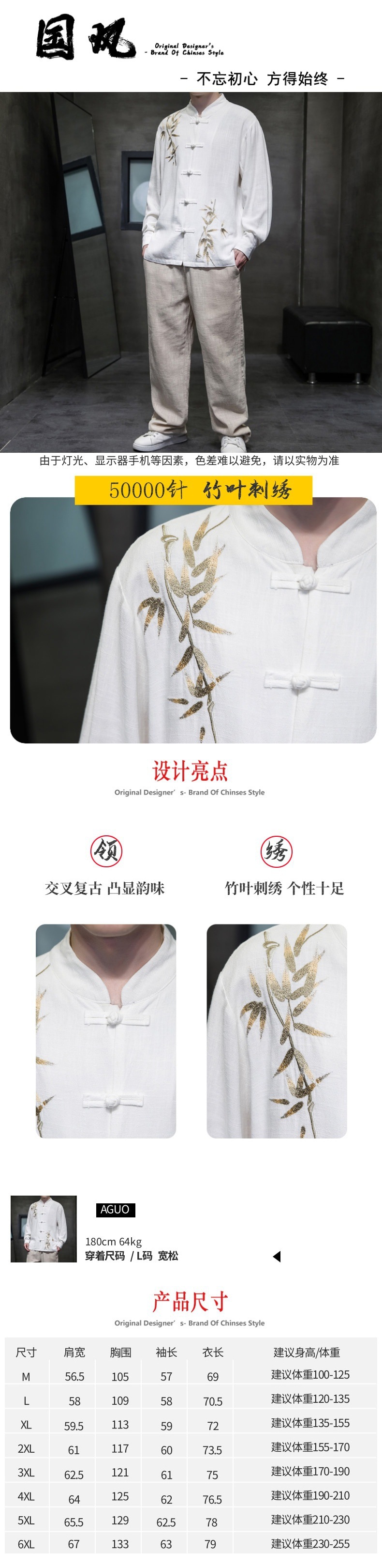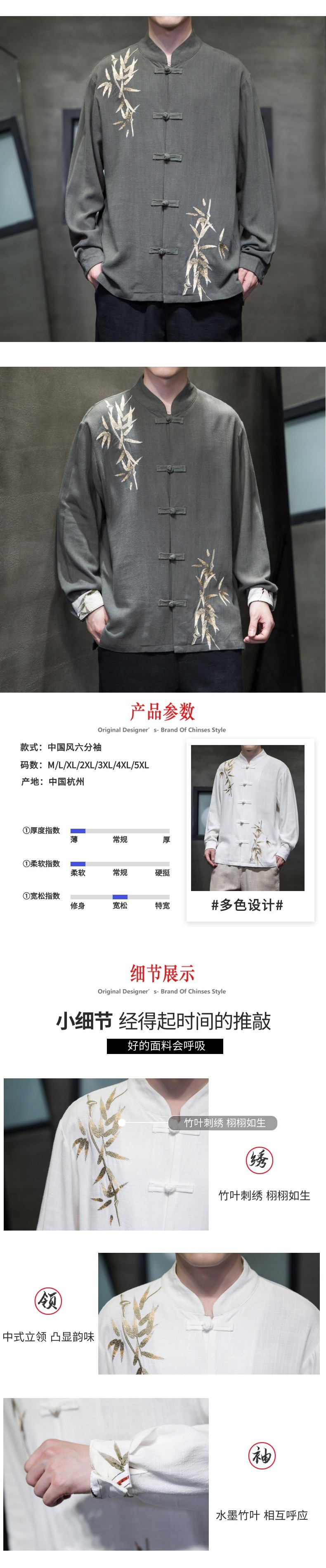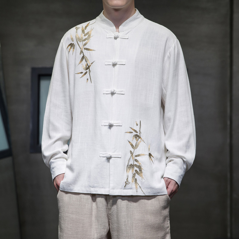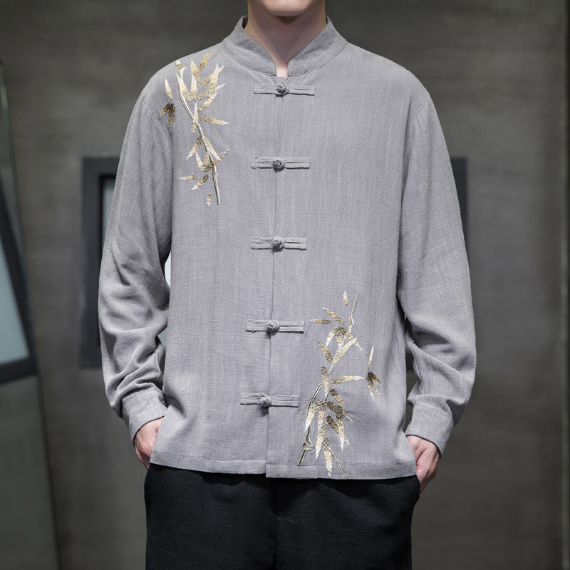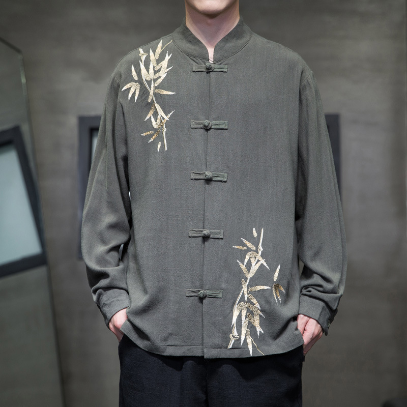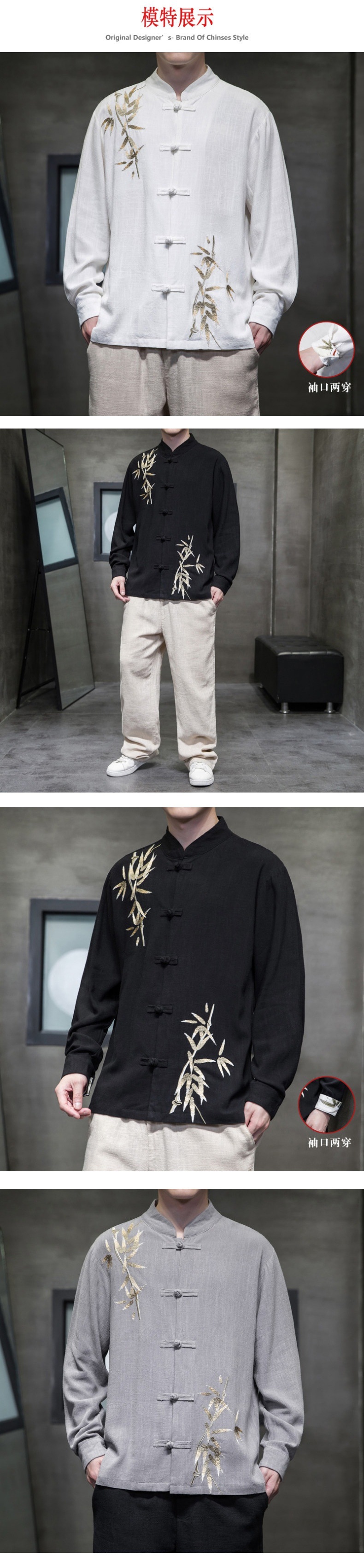 여름 새로운 빈티지 플러스 사이즈 셔츠 중국 스타일 리넨 버튼 긴 소매 셔츠 대나무 잎 자수 고대 원피스 셔츠스토어 가기