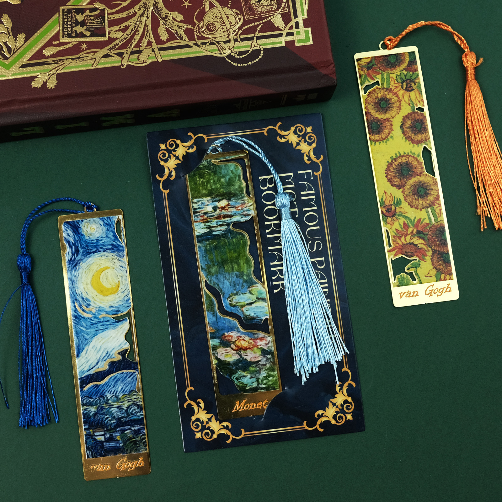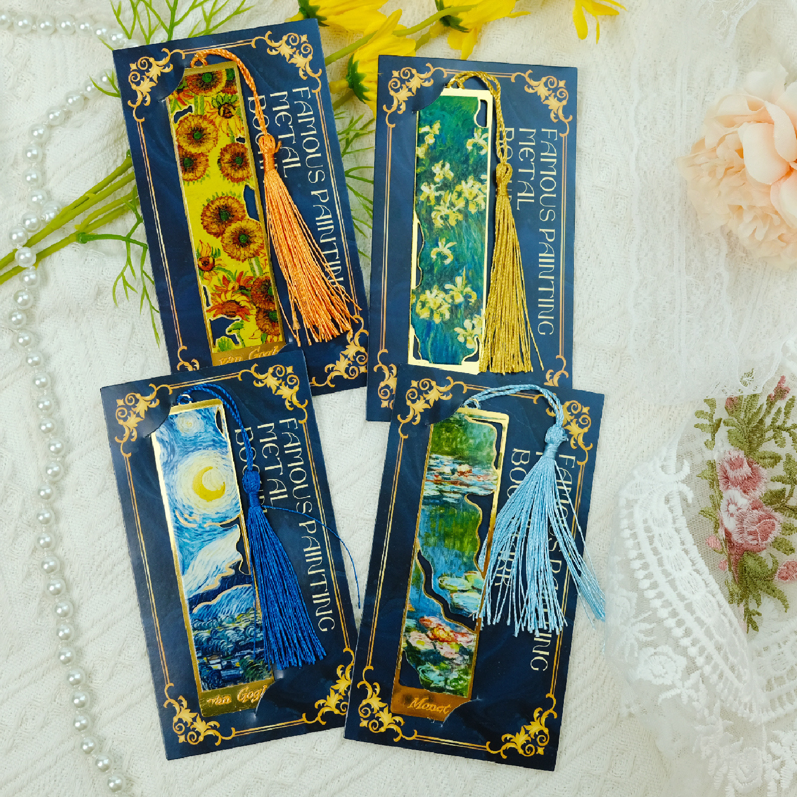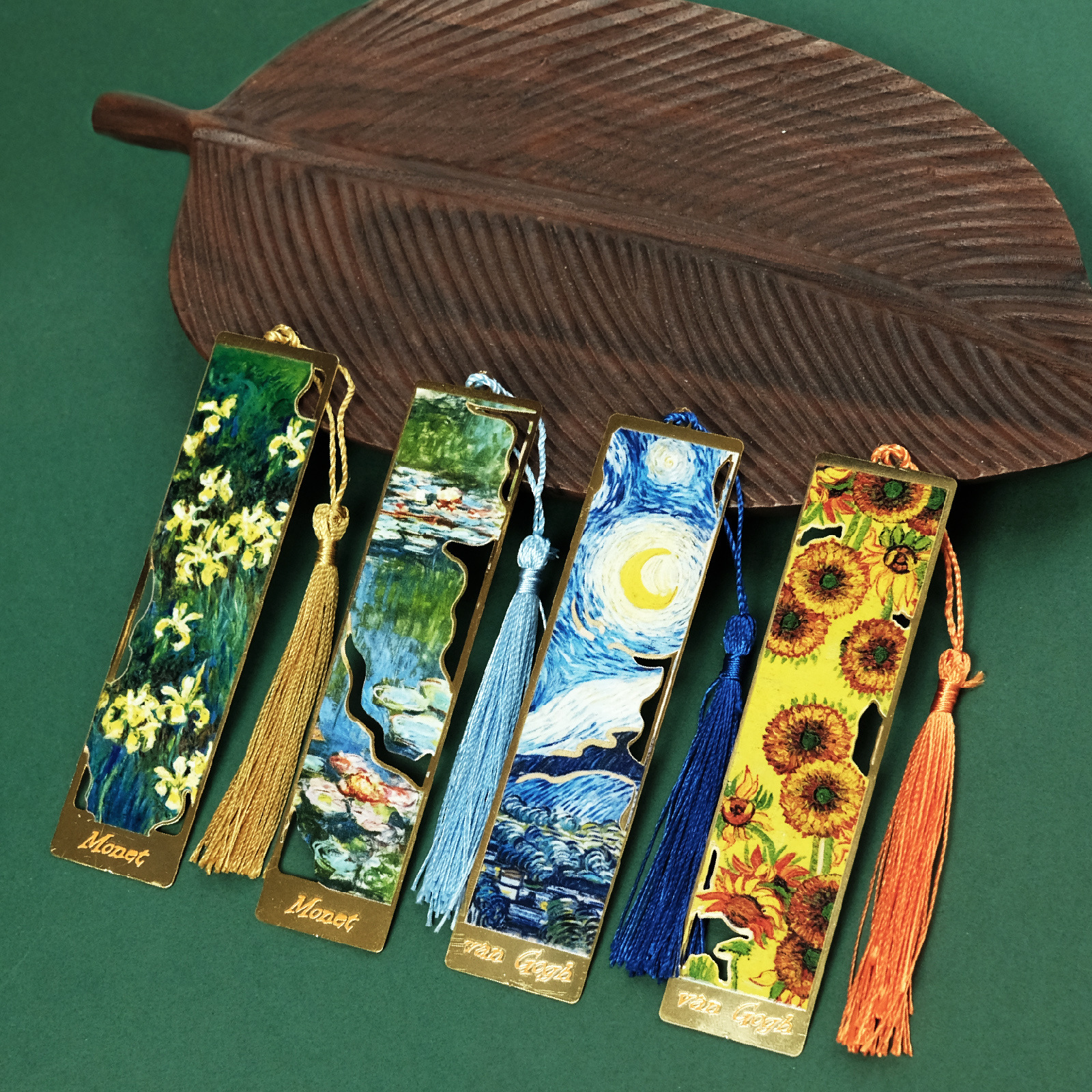 빈티지 유명한 회화 유화 스타일 금속 책갈피 빈 독서 책 페이지 클립 손 계정 펜던트 금속 책갈피 창조적 인 선물