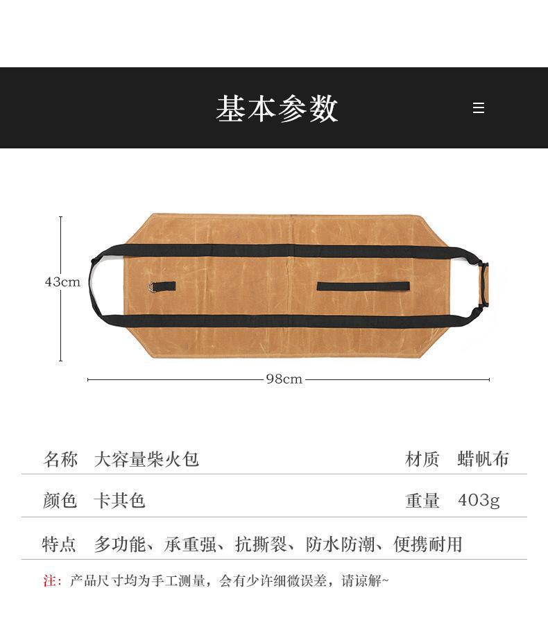 야외 장작 가방 캠핑 용품 대용량 휴대용 장작 저장 가방 캔버스 토트 가방 벌채 가방