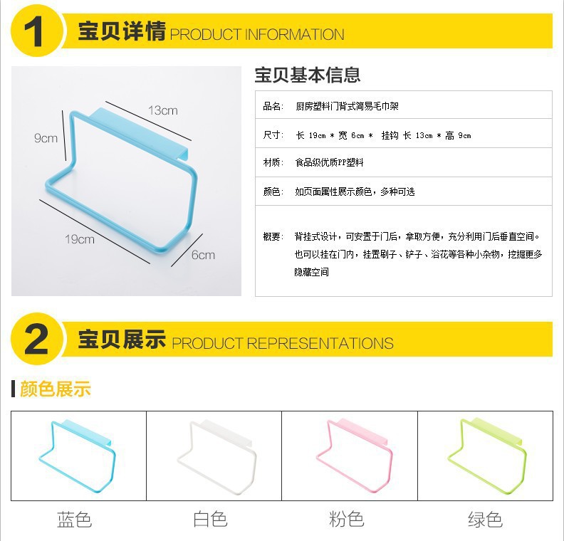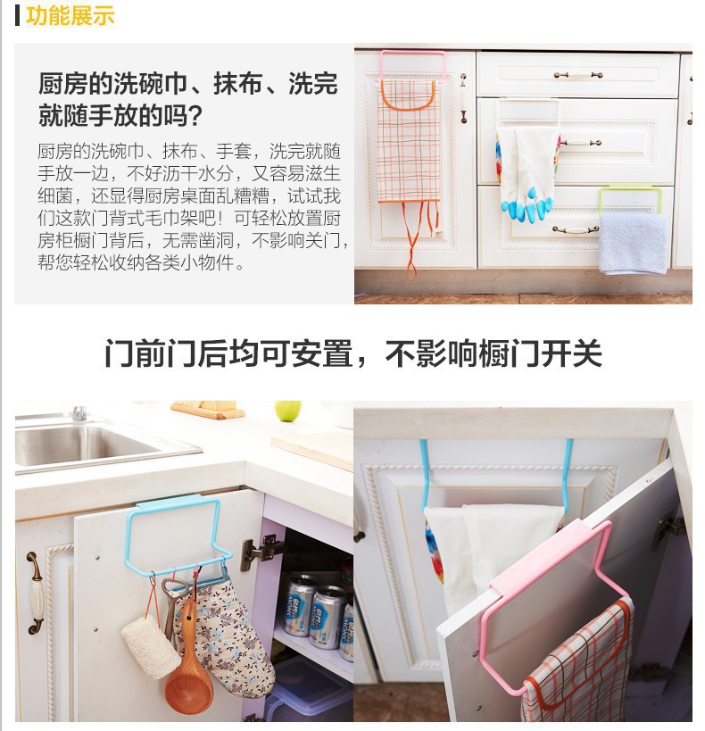 캐비닛 도어 단극 타월 랙 플라스틱 추적없는 헝겊 걸이 타월 바 다중 사용 드리프트 걸이 스토리지 랙