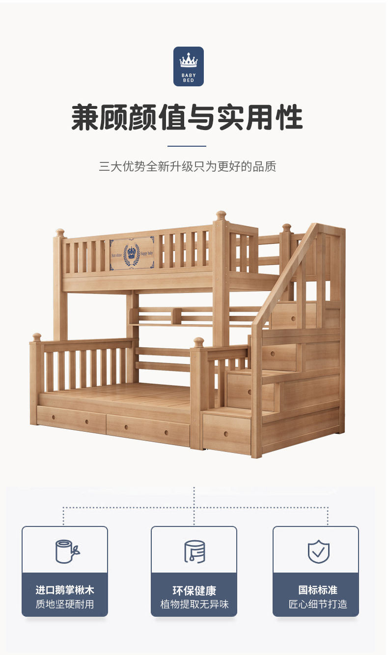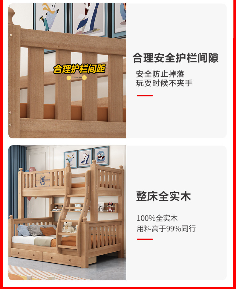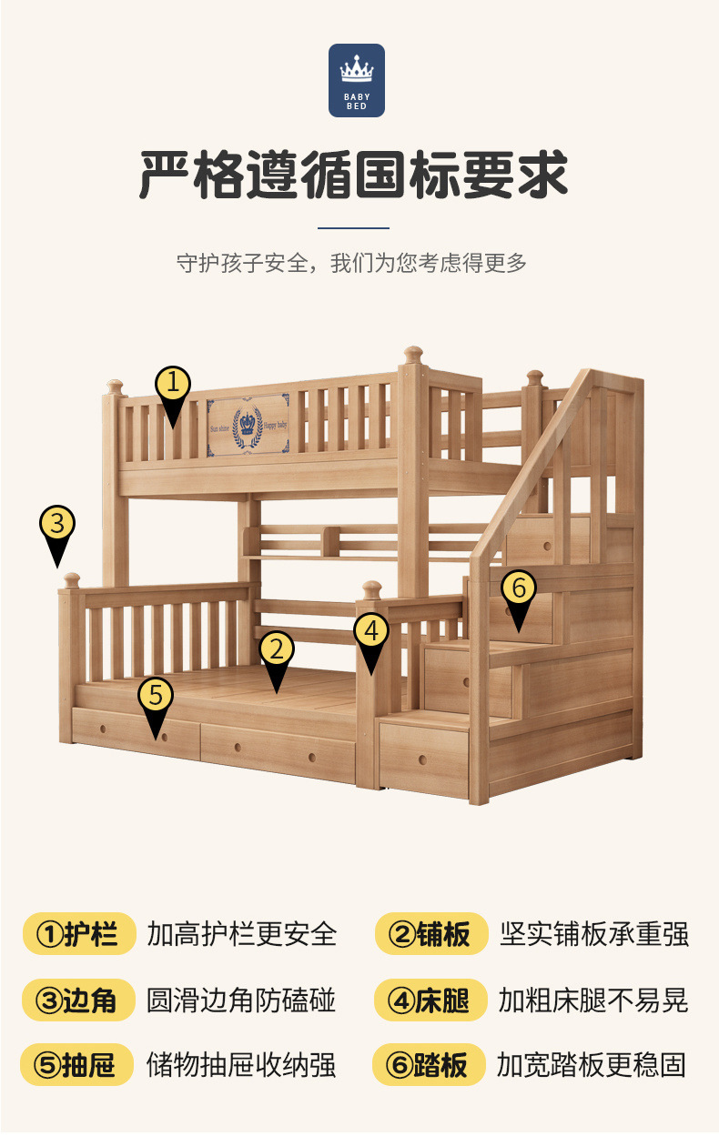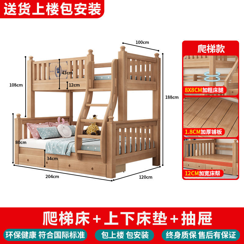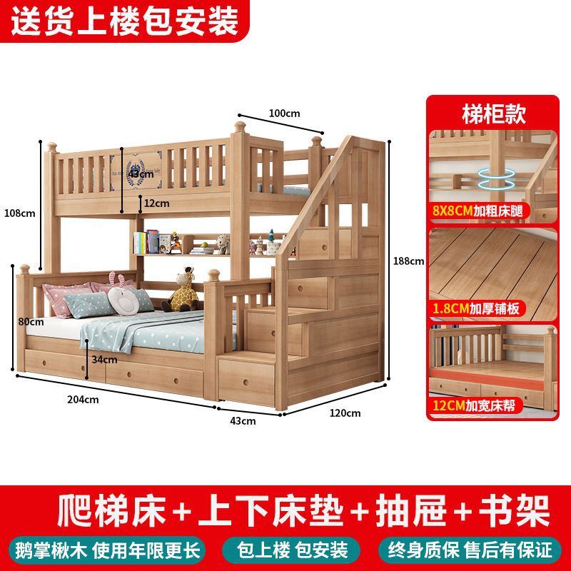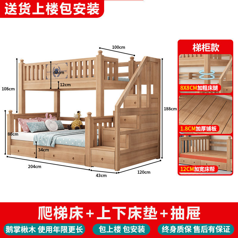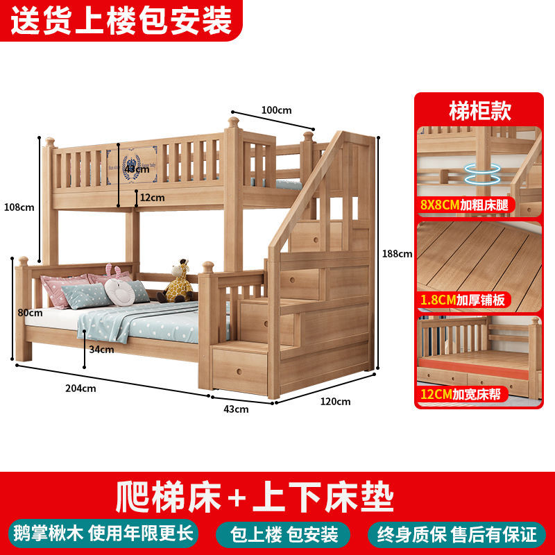 모든 솔리드 우드 이층 침대 어린이 이층 침대 성인 높고 낮은 침대 Liriodendron 어머니 침대 2 층 침대 더블 침대