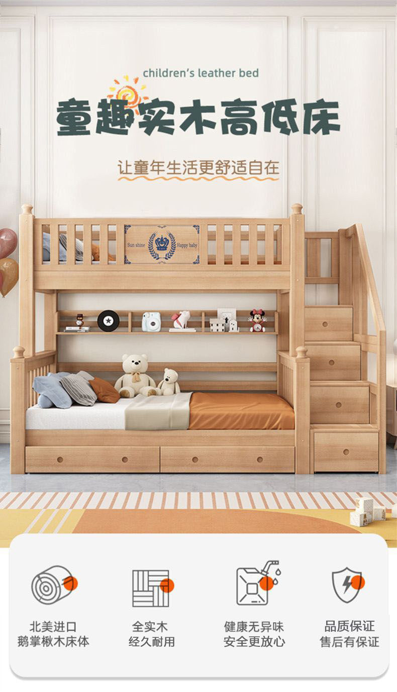 모든 솔리드 우드 이층 침대 어린이 이층 침대 성인 높고 낮은 침대 Liriodendron 어머니 침대 2 층 침대 더블 침대스토어 가기
