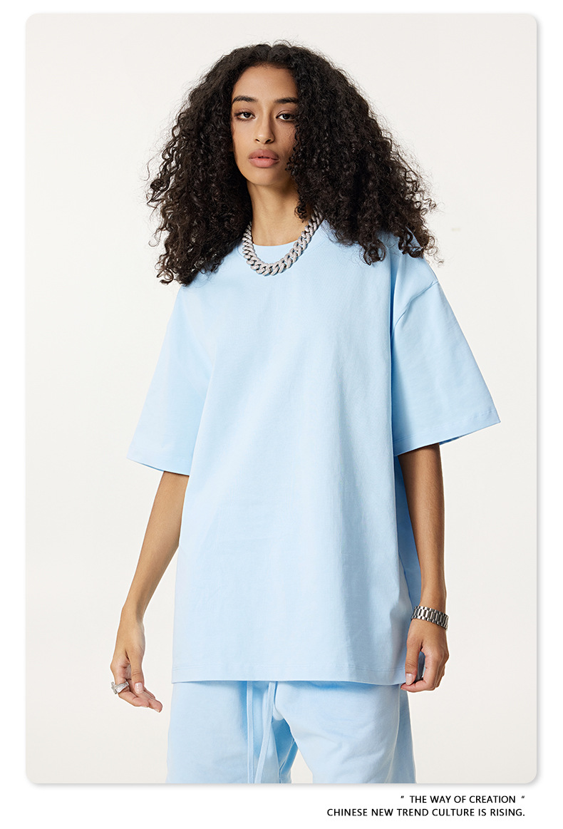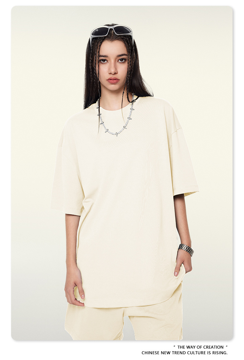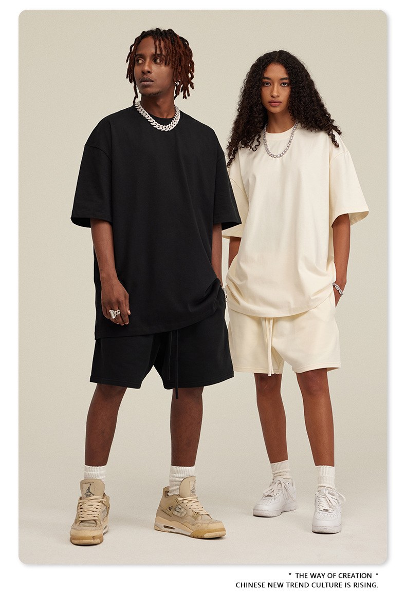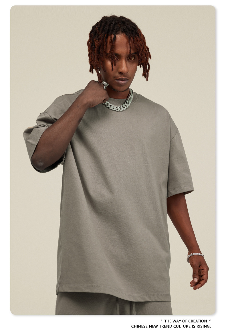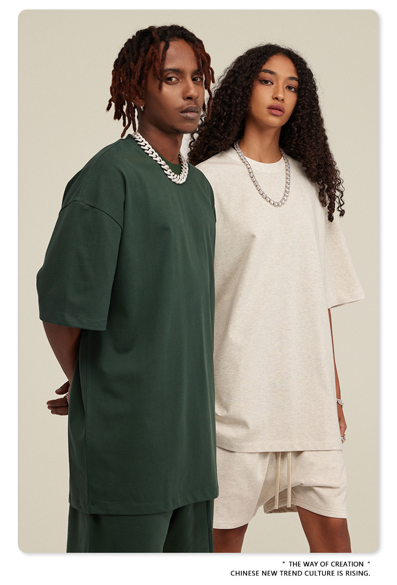 2025 여름 미국산 순면 헤비웨이트 티셔츠 청소년용 대형 사이즈 하이 스트리트 패션 브랜드 단색 루즈핏 캐주얼 반팔 남성용
