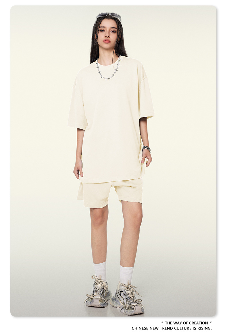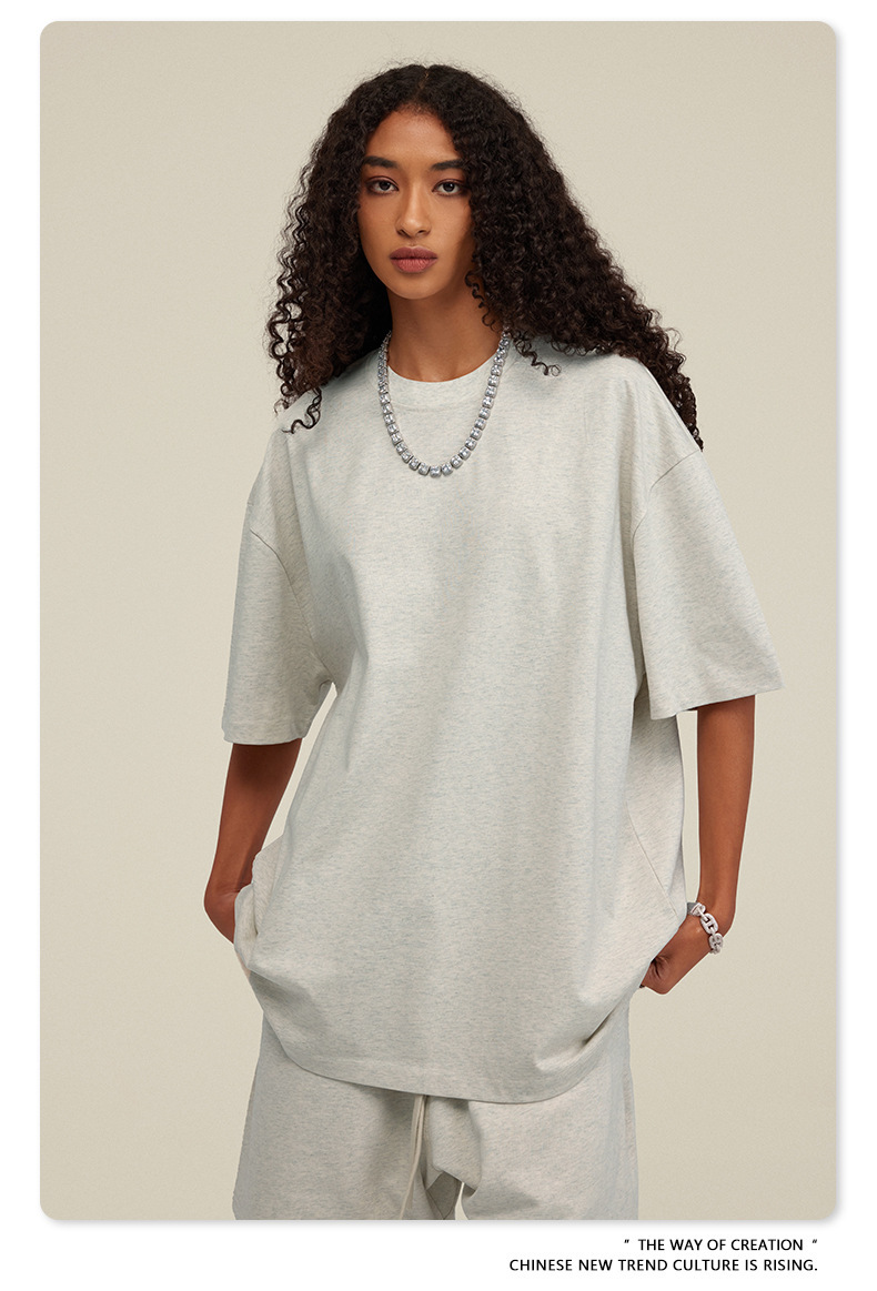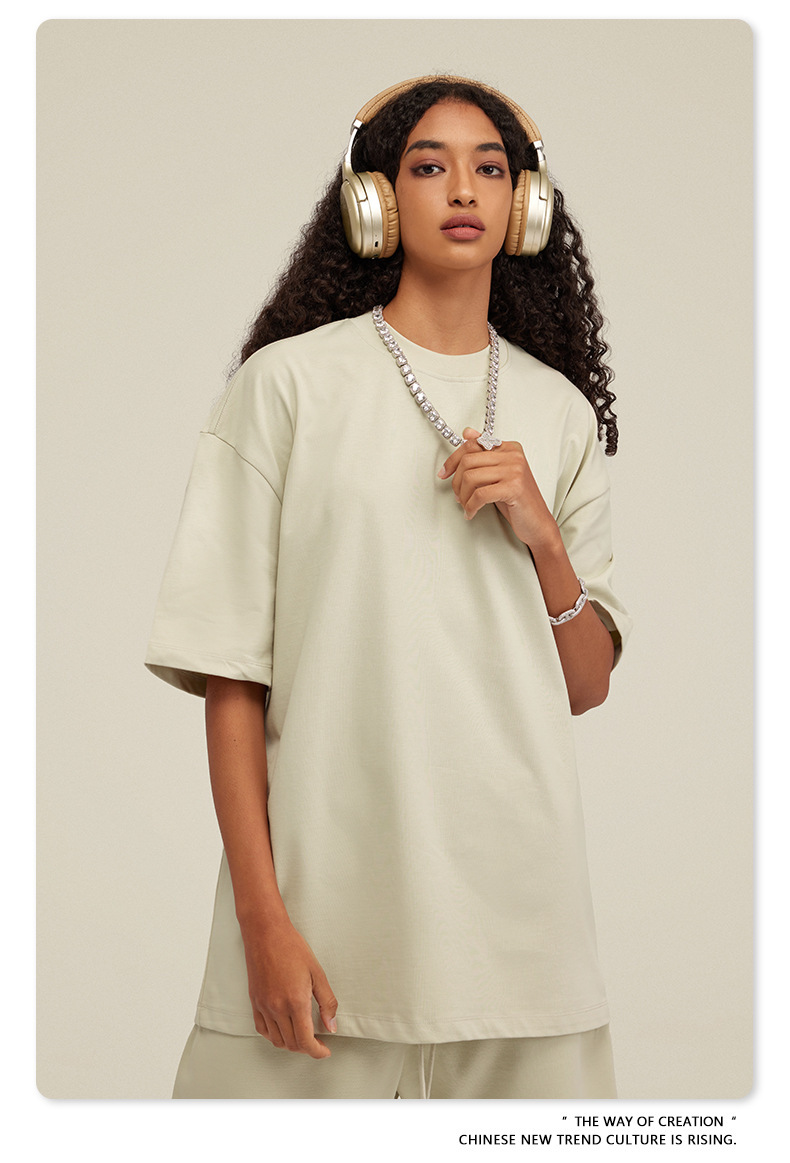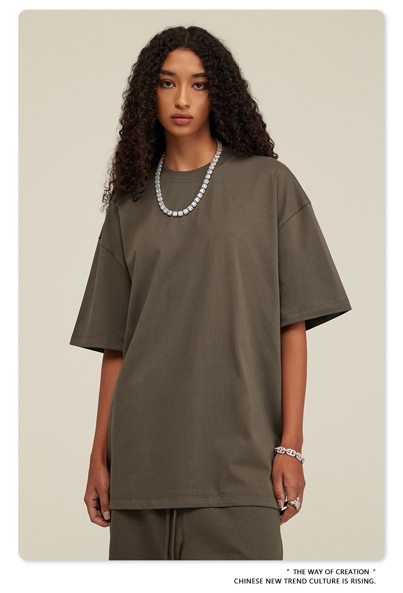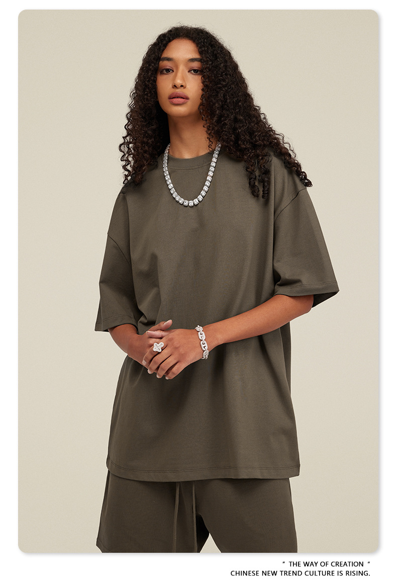 2025 여름 미국산 순면 헤비웨이트 티셔츠 청소년용 대형 사이즈 하이 스트리트 패션 브랜드 단색 루즈핏 캐주얼 반팔 남성용