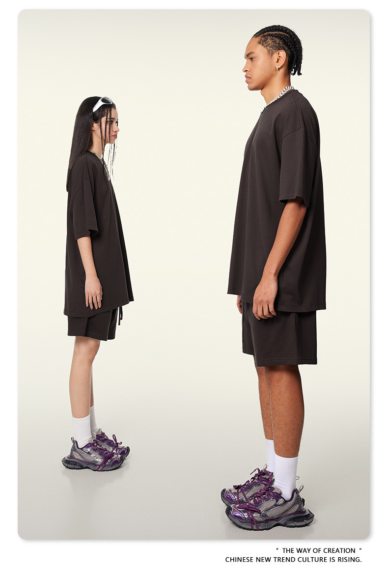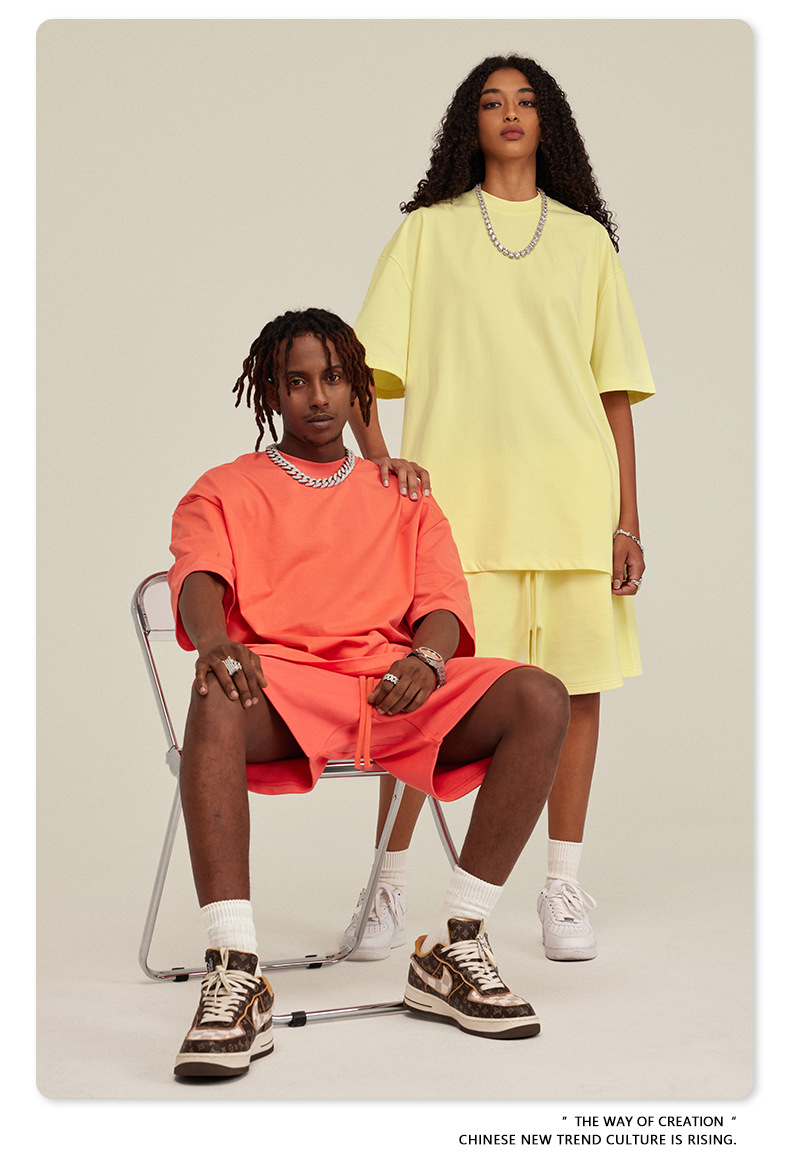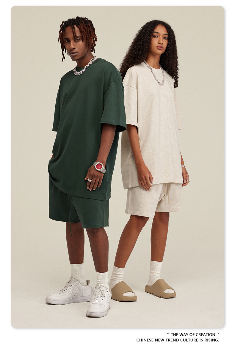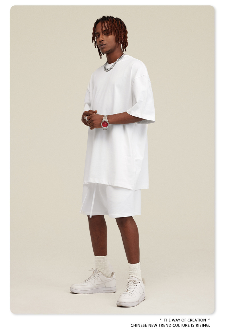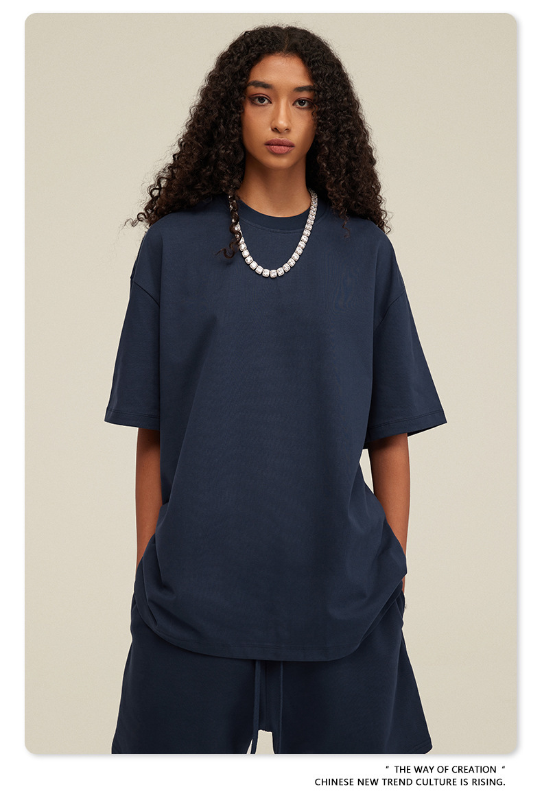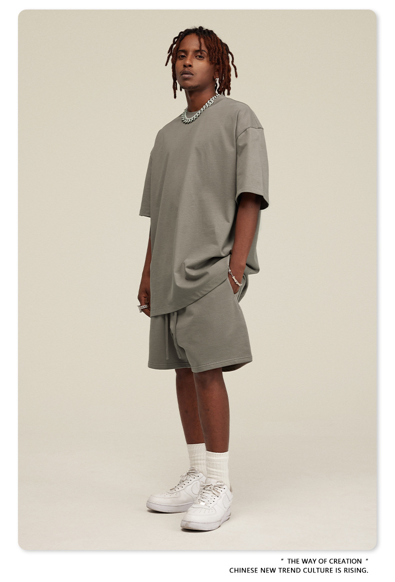 2025 여름 미국산 순면 헤비웨이트 티셔츠 청소년용 대형 사이즈 하이 스트리트 패션 브랜드 단색 루즈핏 캐주얼 반팔 남성용