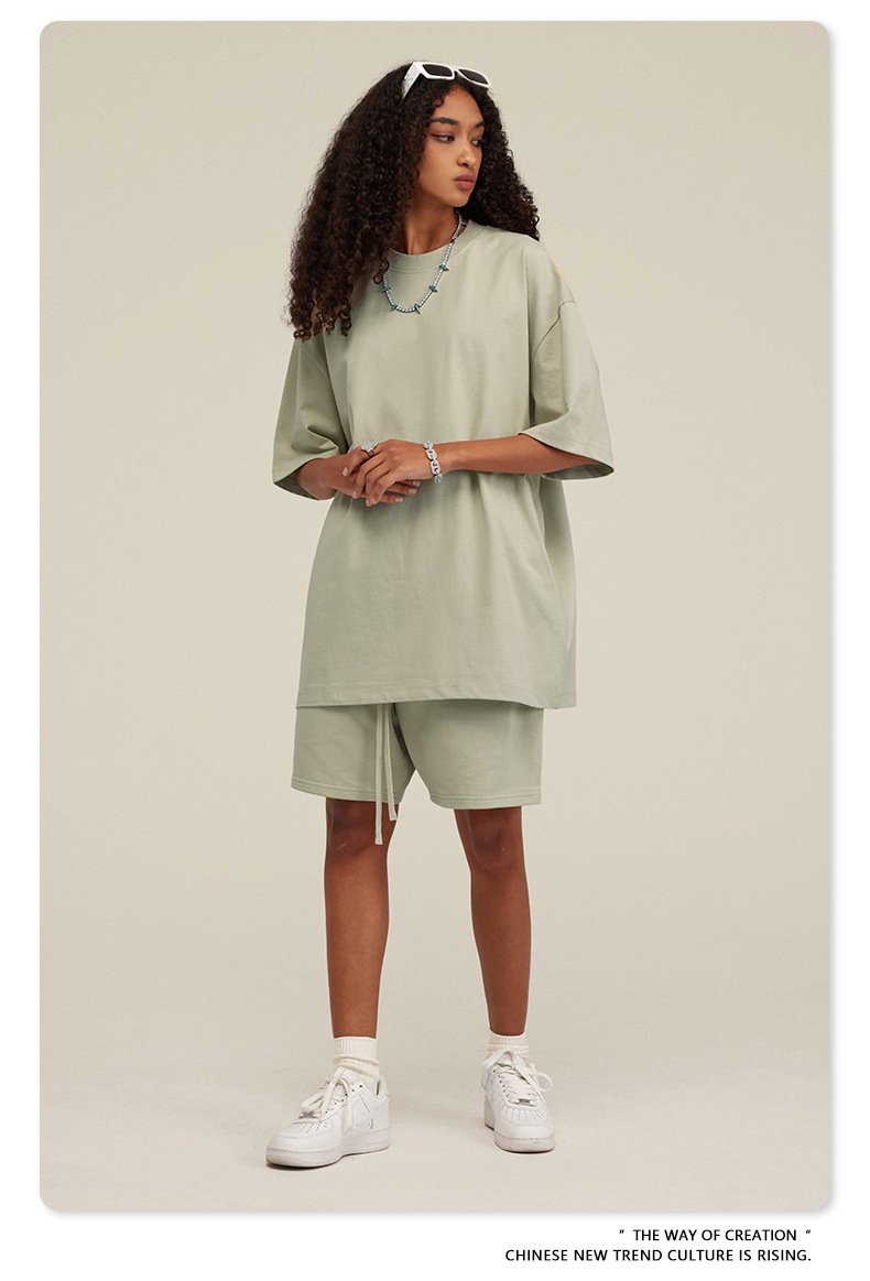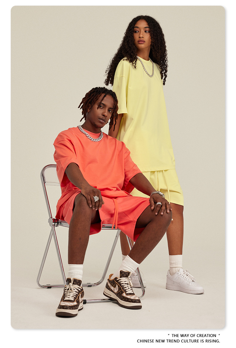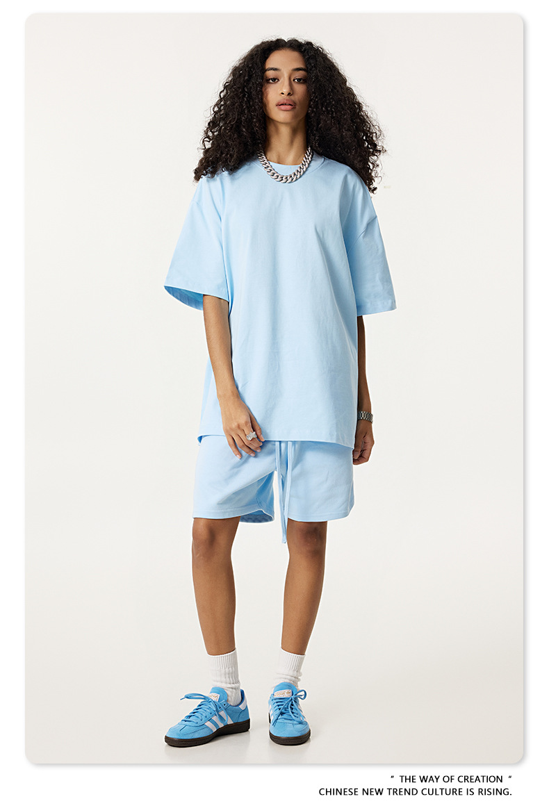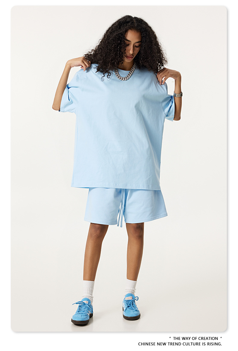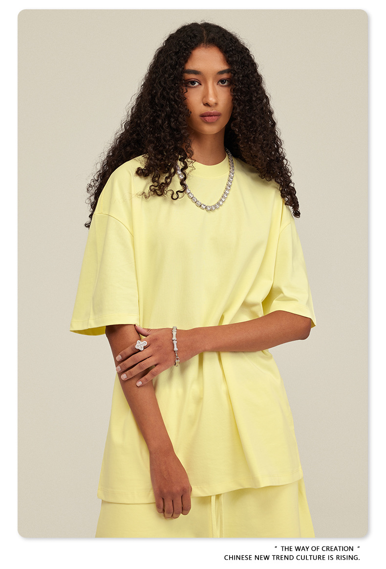 2025 여름 미국산 순면 헤비웨이트 티셔츠 청소년용 대형 사이즈 하이 스트리트 패션 브랜드 단색 루즈핏 캐주얼 반팔 남성용