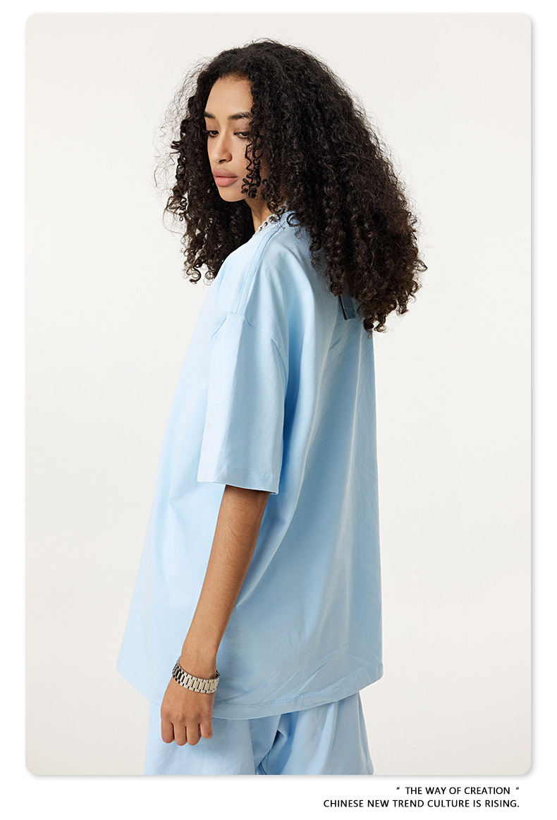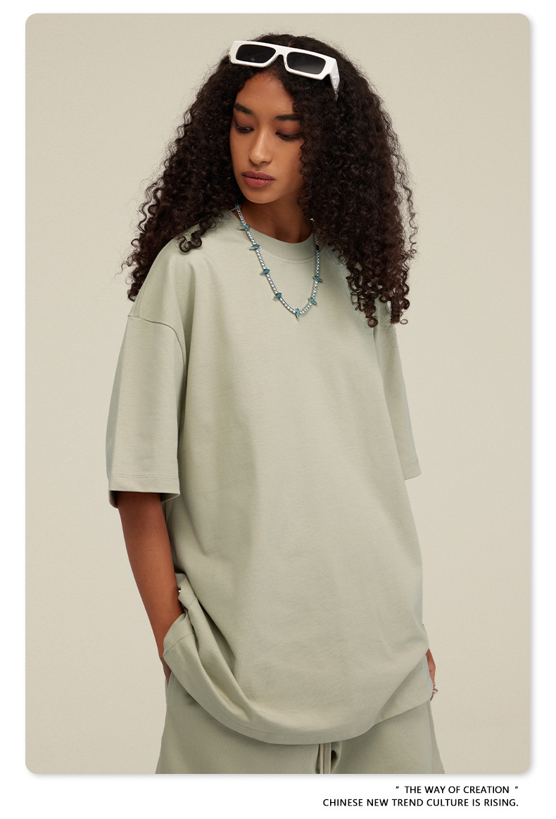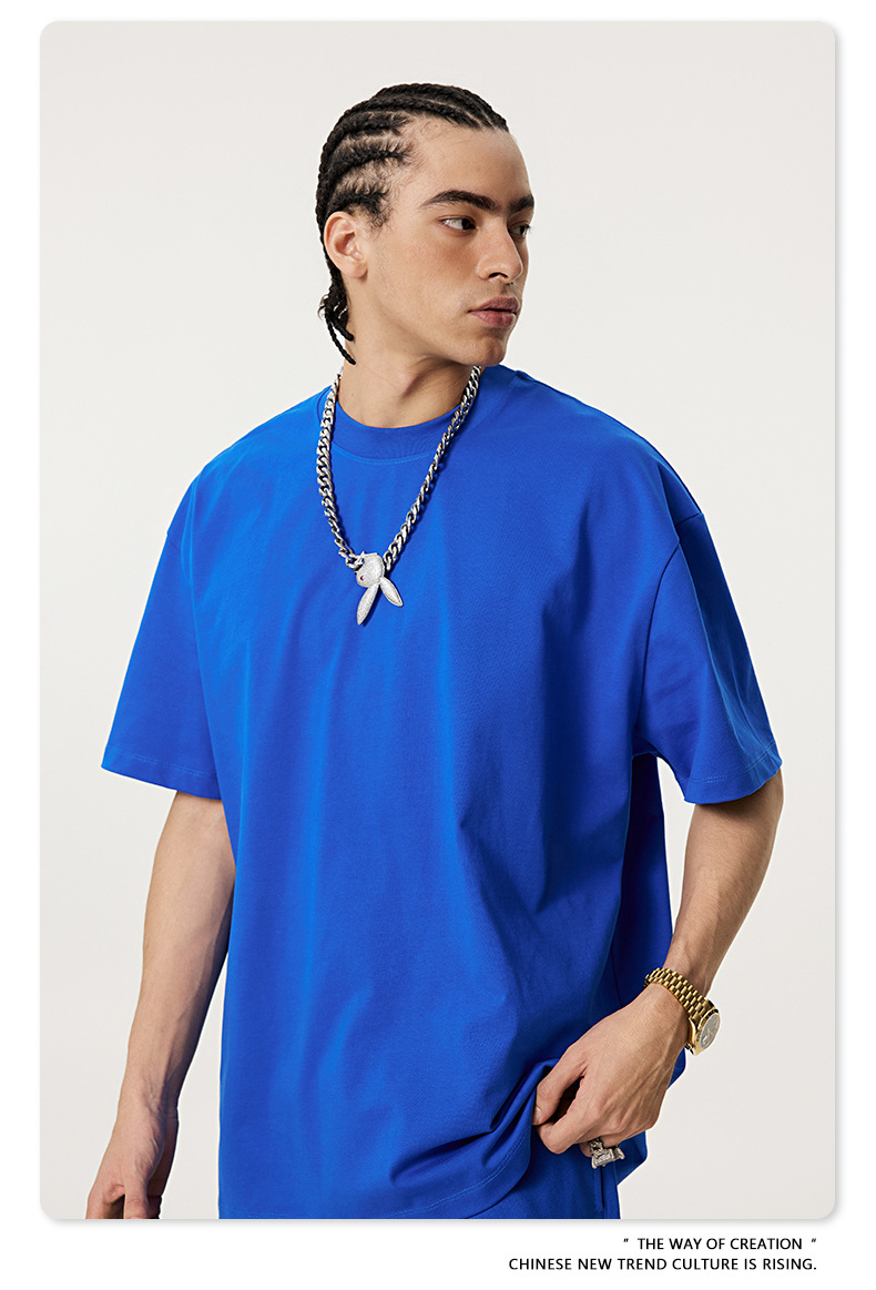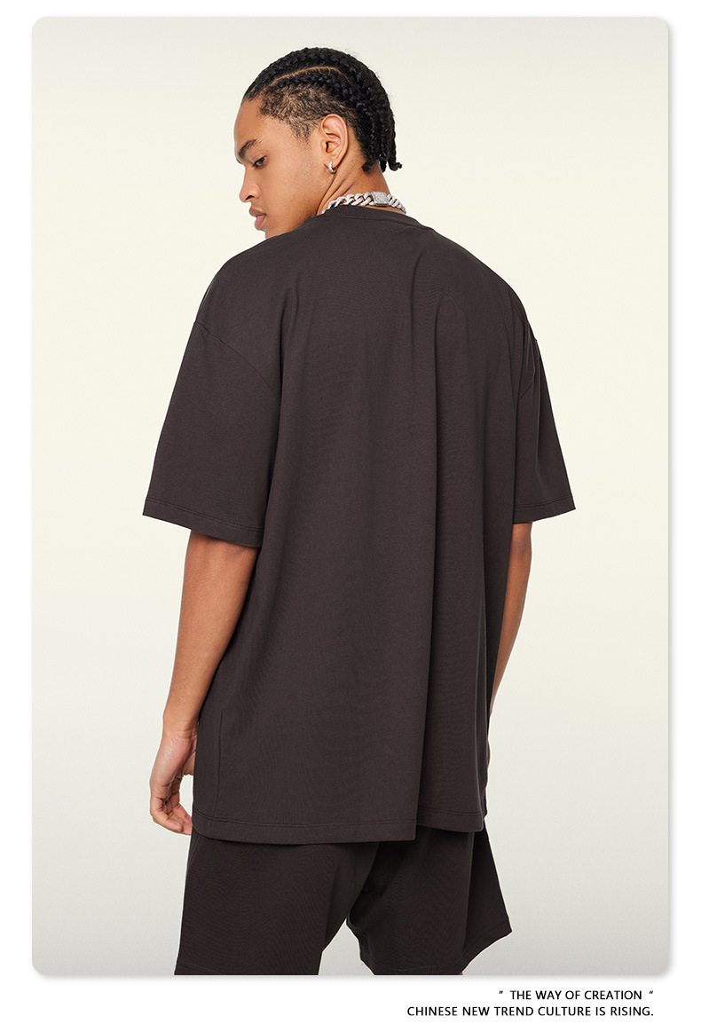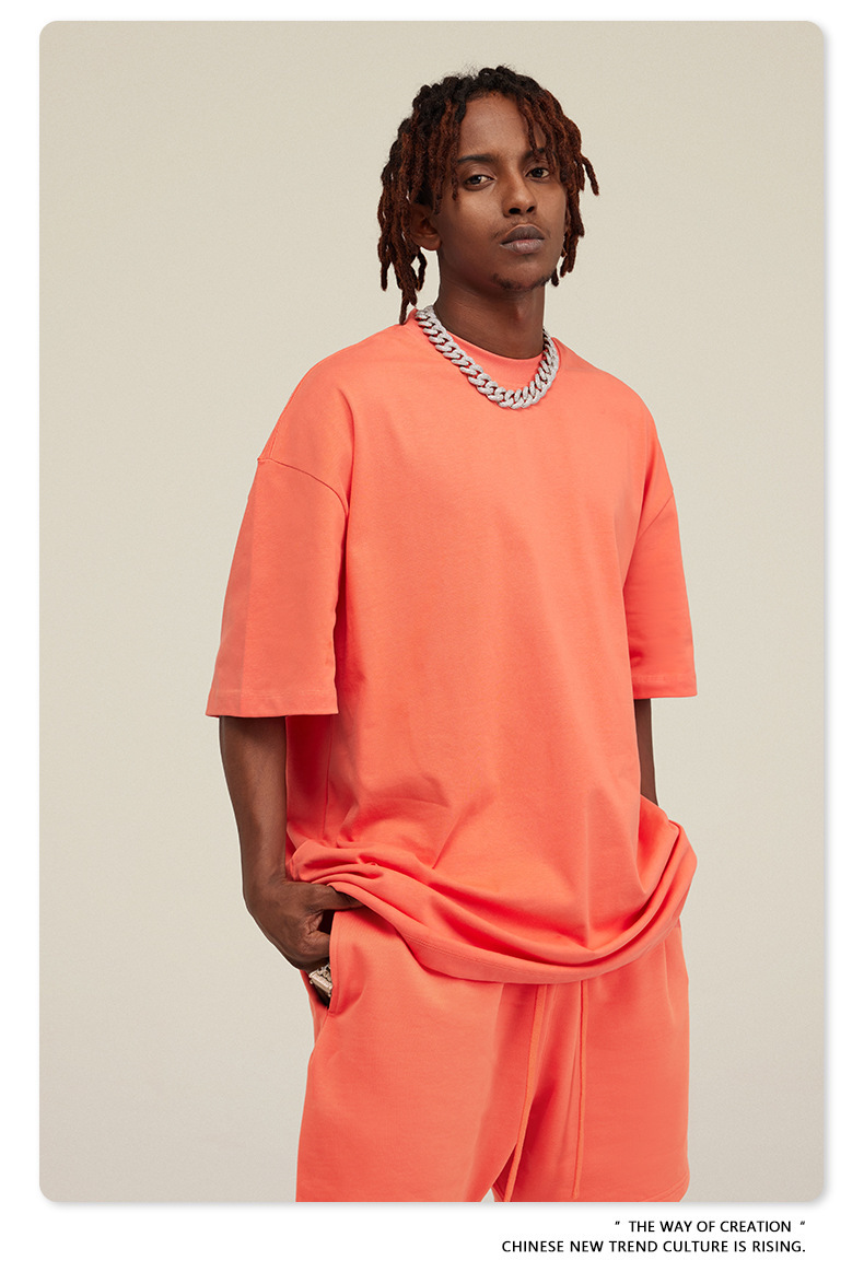 2025 여름 미국산 순면 헤비웨이트 티셔츠 청소년용 대형 사이즈 하이 스트리트 패션 브랜드 단색 루즈핏 캐주얼 반팔 남성용스토어 가기