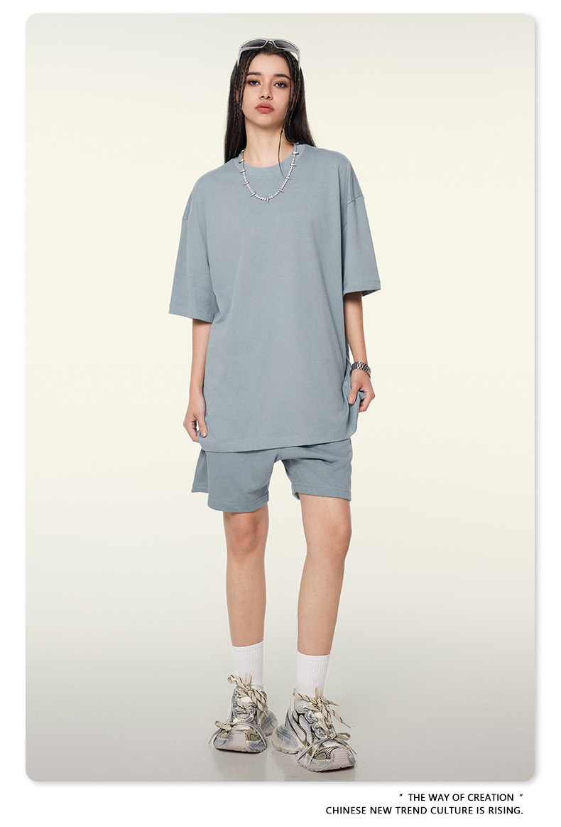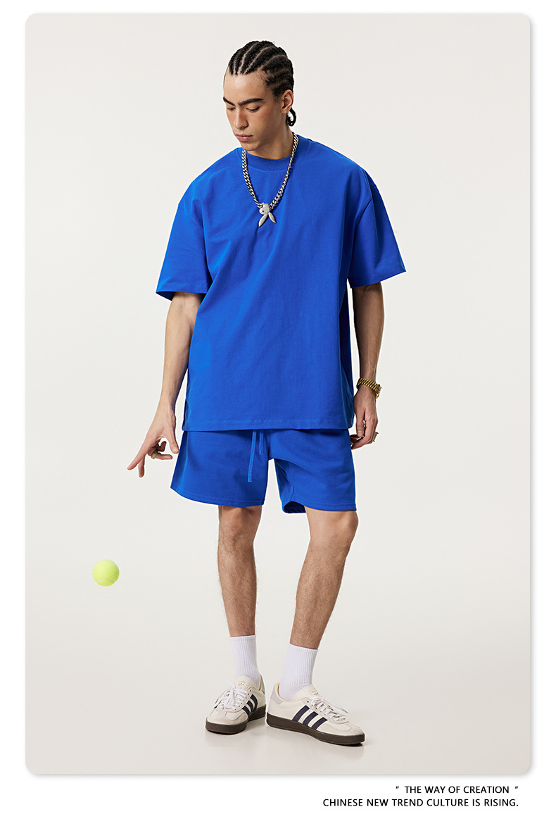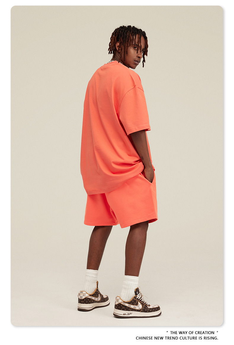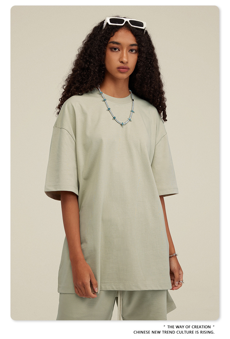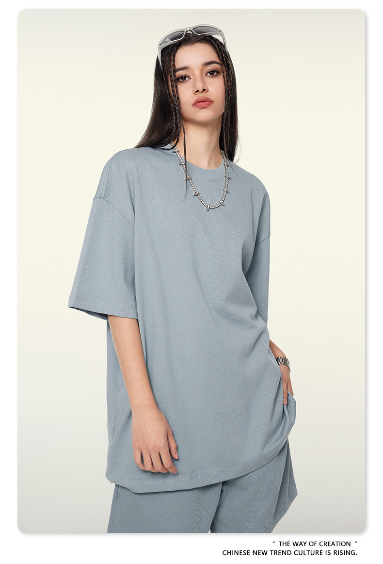 2025 여름 미국산 순면 헤비웨이트 티셔츠 청소년용 대형 사이즈 하이 스트리트 패션 브랜드 단색 루즈핏 캐주얼 반팔 남성용스토어 가기