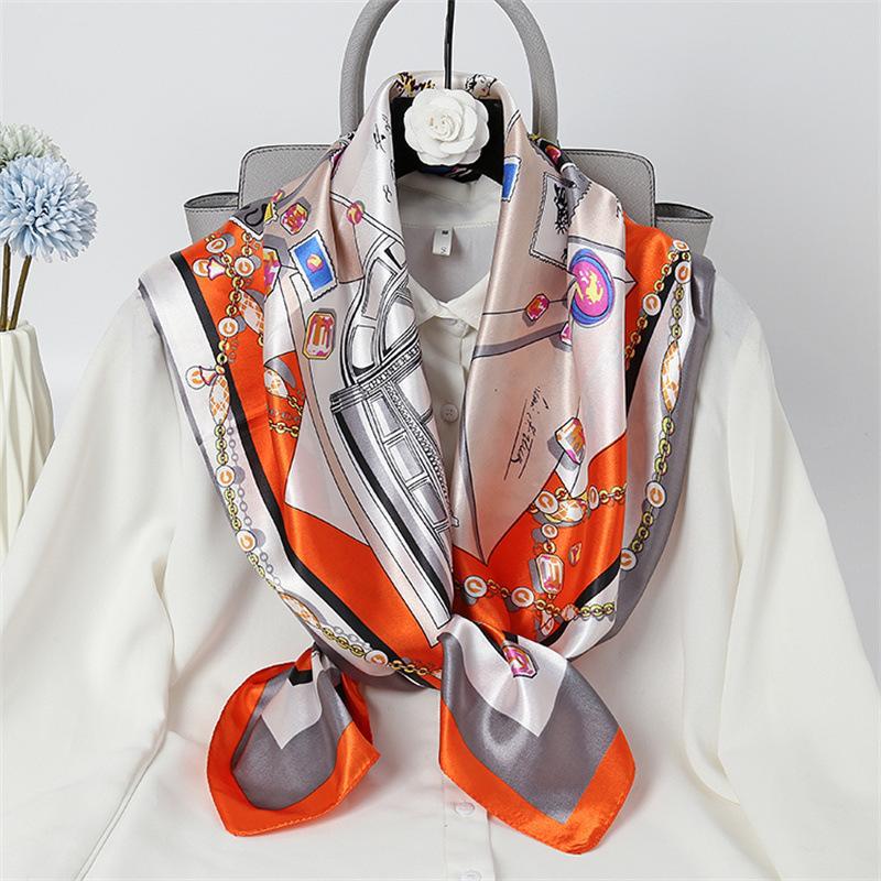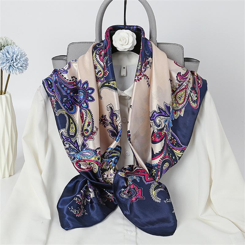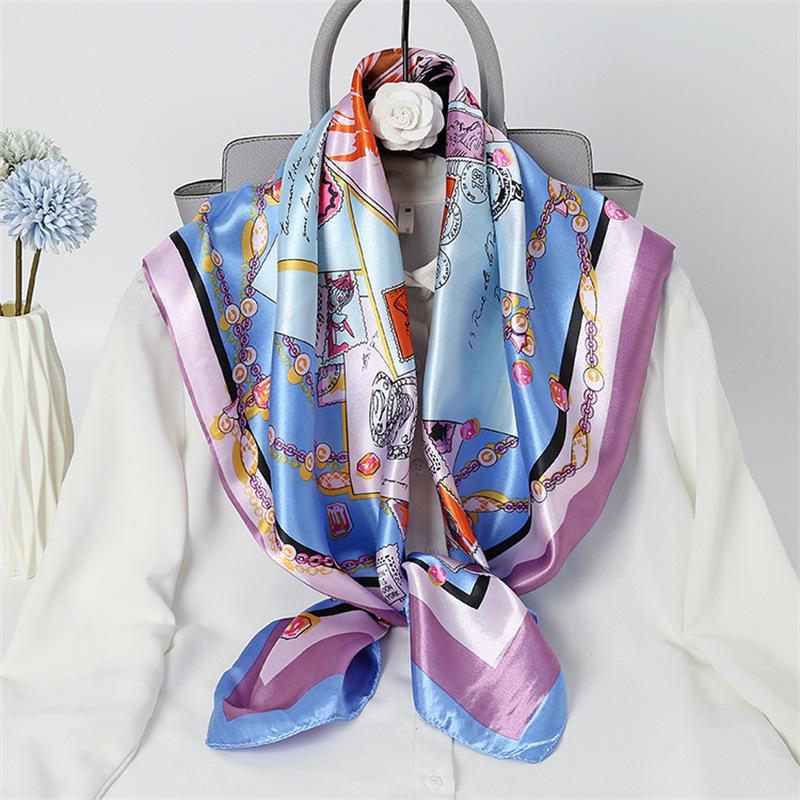 90 대형 스퀘어 롱 올 매치 스카프 여성 패션 인쇄 여름 선 스크린 비치 목도리 후드 실크 스카프