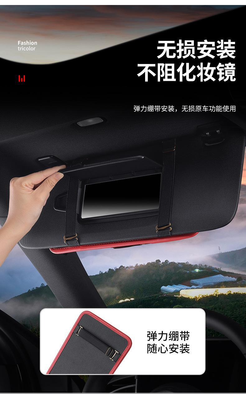 자동차 태양 바이저 저장 유물 다기능 조명 장벽 안경 가방 카드 운전 식별 클립 자동차 보관 커버스토어 가기