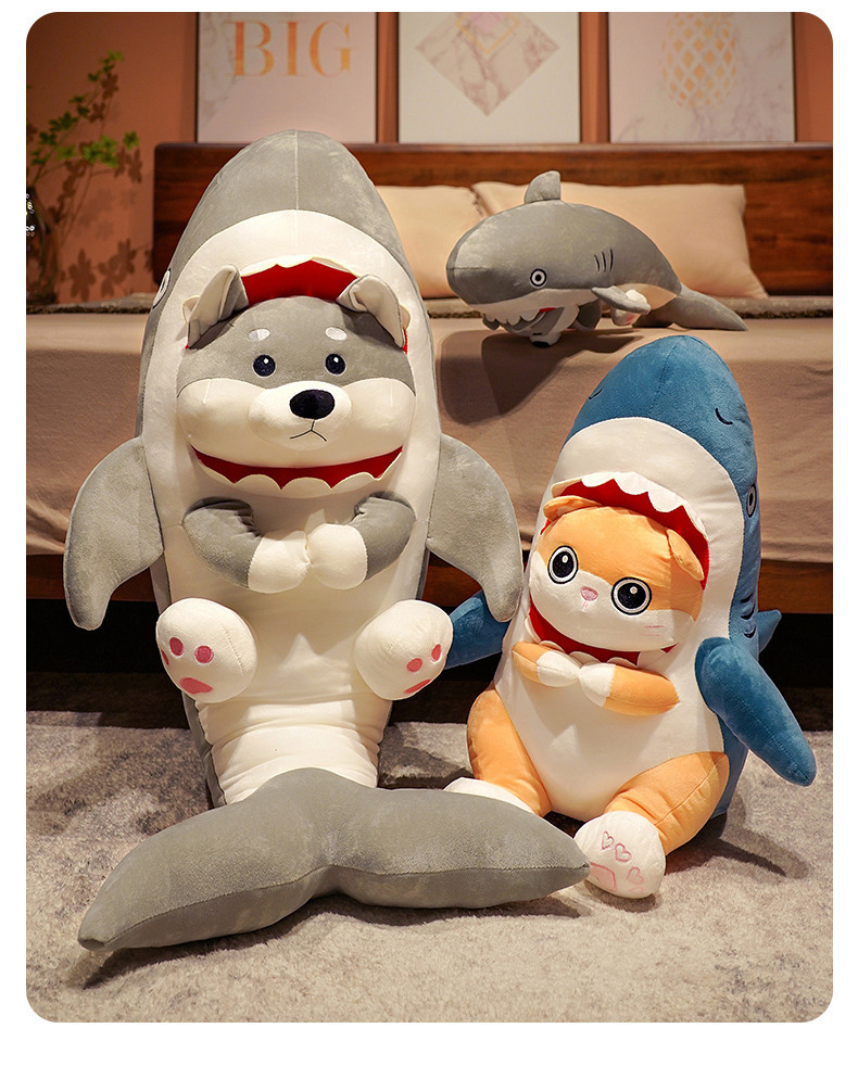 상어 개 인형 잠자는 베개 재미있는 인형 모래 조각 봉제 장난감 침대 인형 재미있는 상어 생일 선물스토어 가기