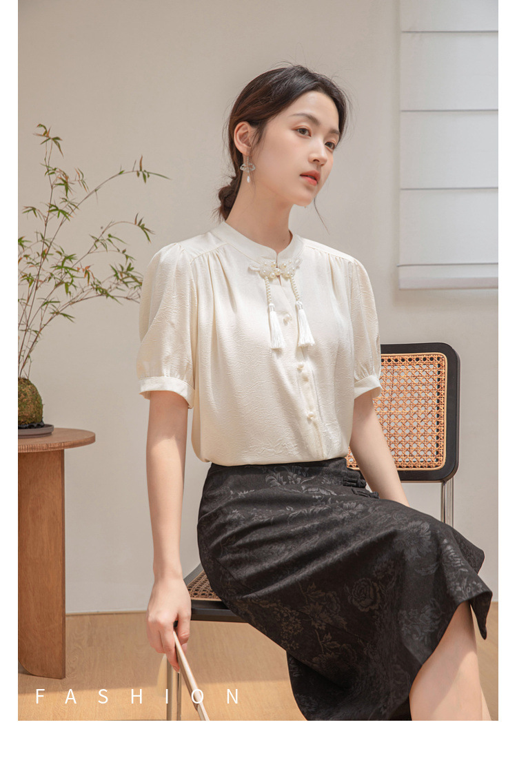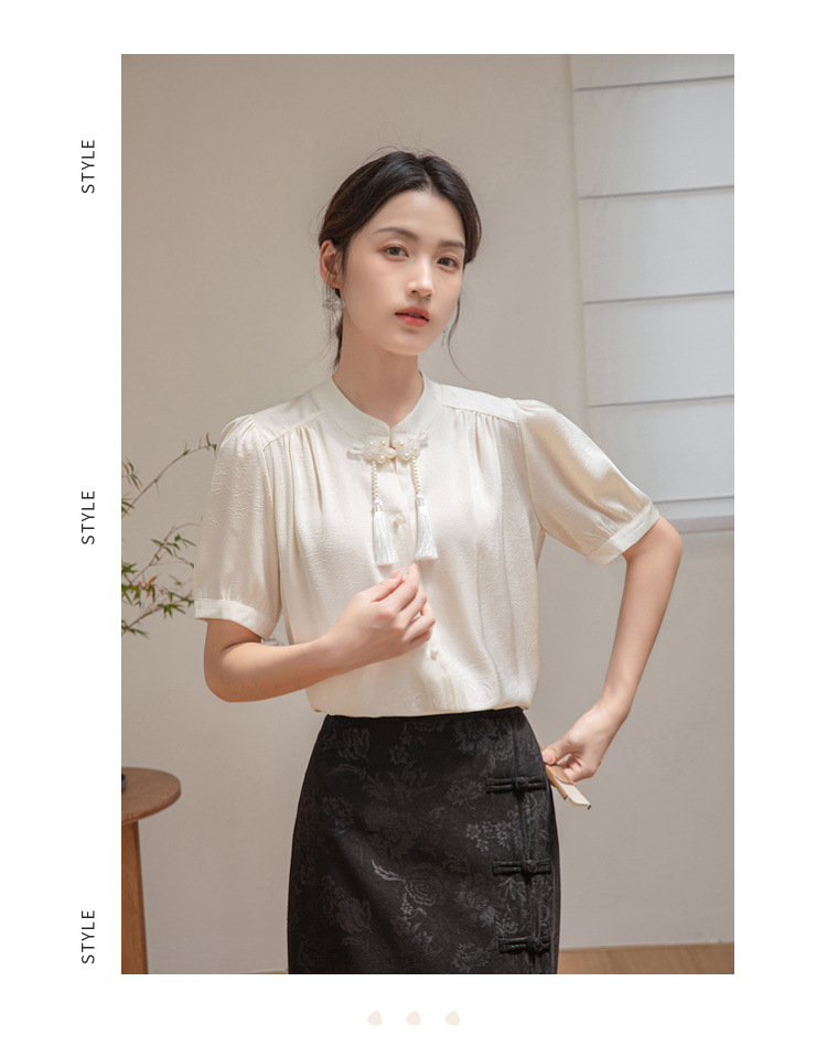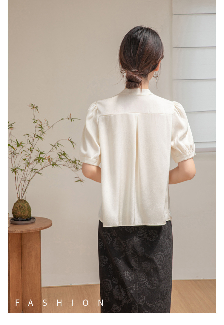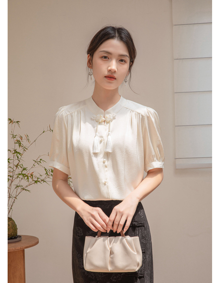 새로운 중국 반팔 셔츠 여성 여름 스타일 빈티지 디자인 틈새 느슨한 전문 통근 셔츠 도매스토어 가기