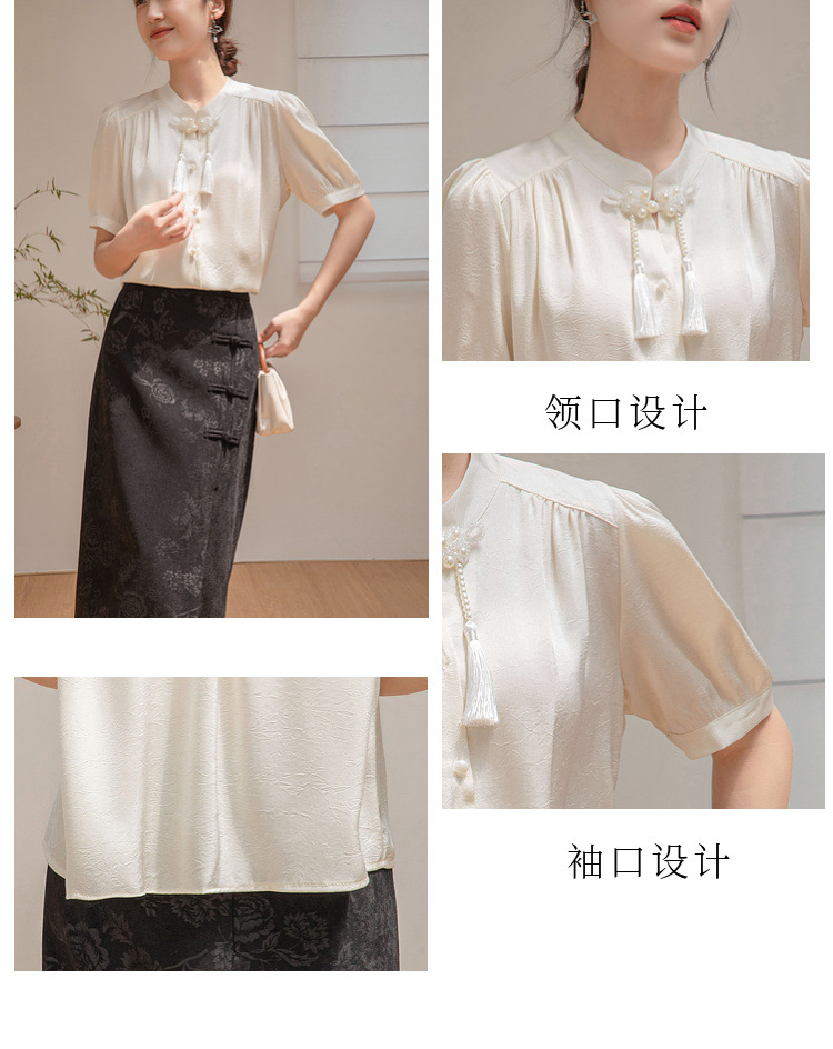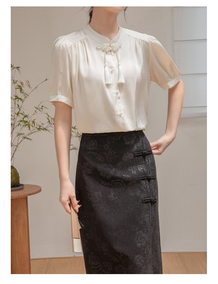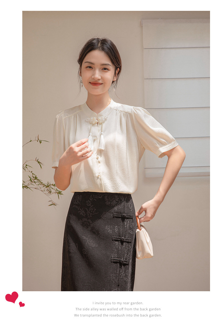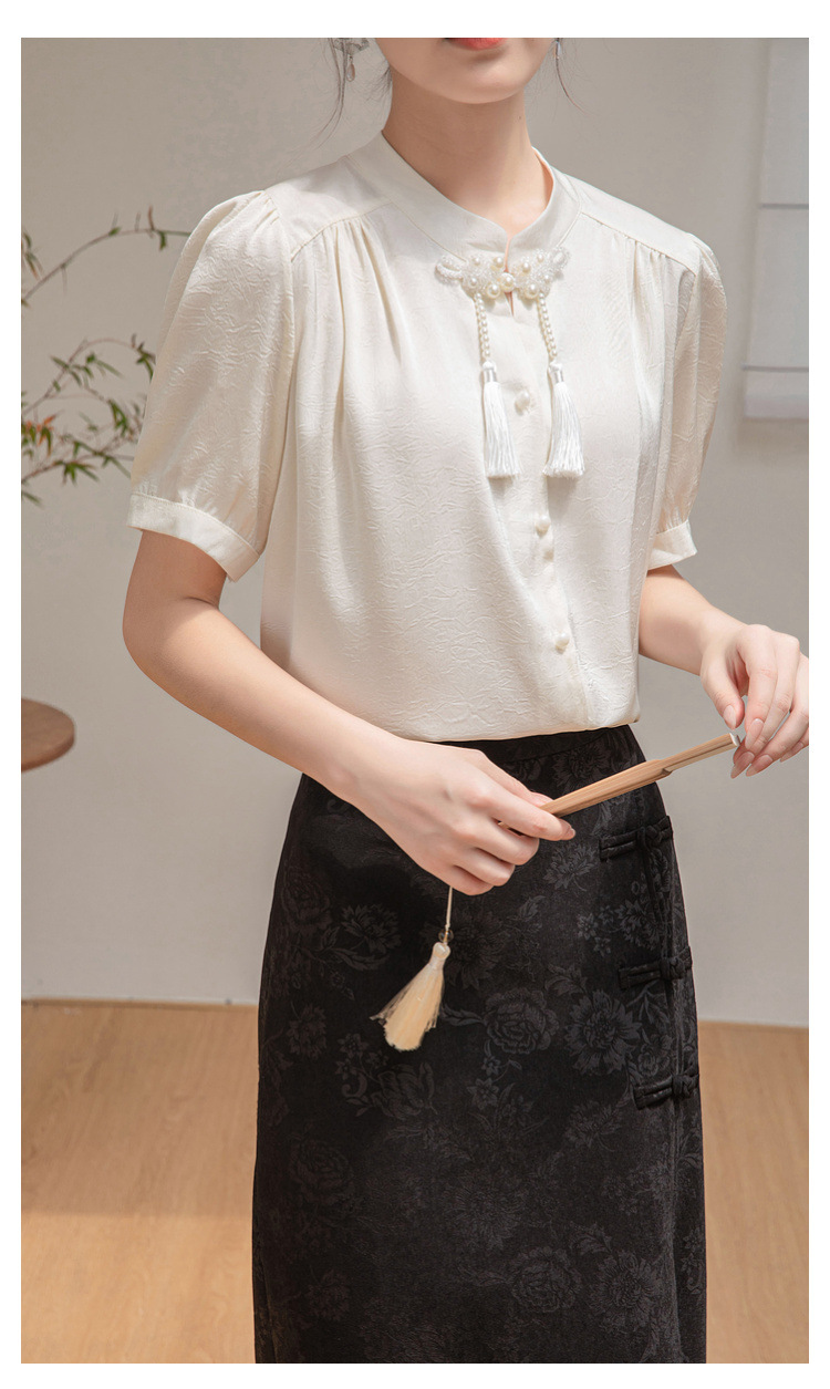 새로운 중국 반팔 셔츠 여성 여름 스타일 빈티지 디자인 틈새 느슨한 전문 통근 셔츠 도매스토어 가기