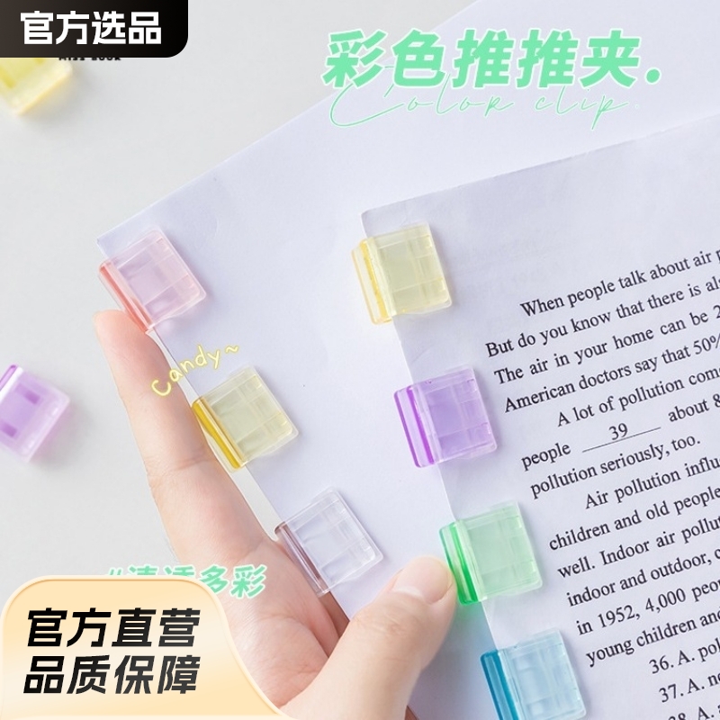 푸시 클립 투명 컬러 작은 클립 오피스 파일 슬라이딩 클립 학생 테스트 용지 데이터 스토리지 고정 푸시 클립스토어 가기