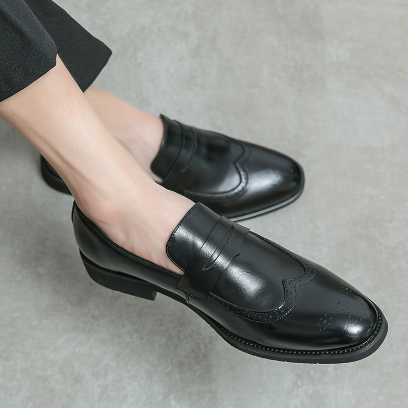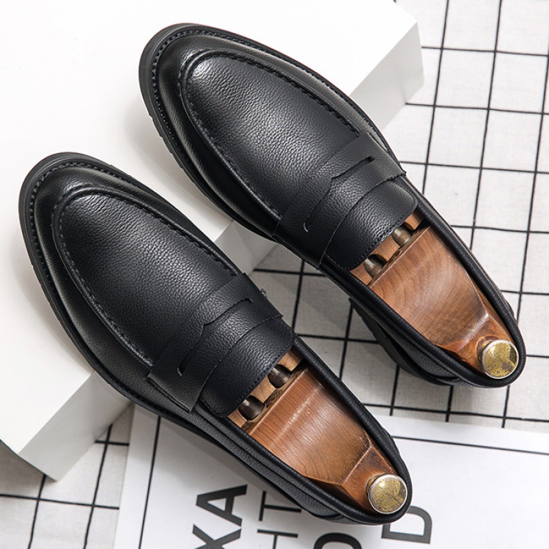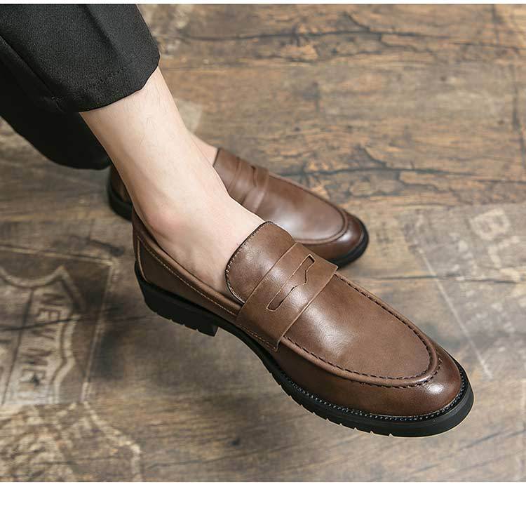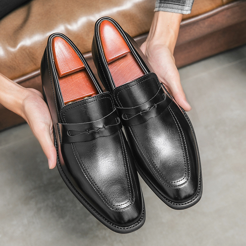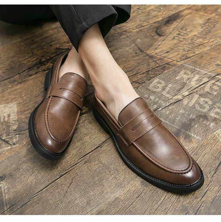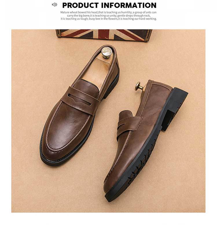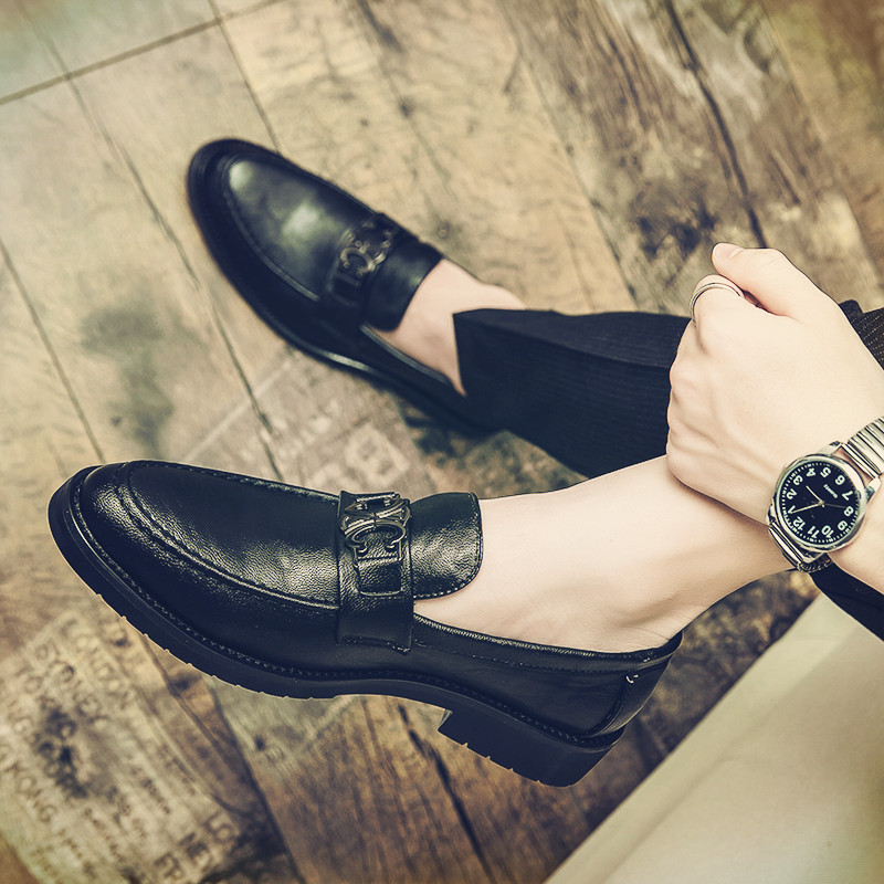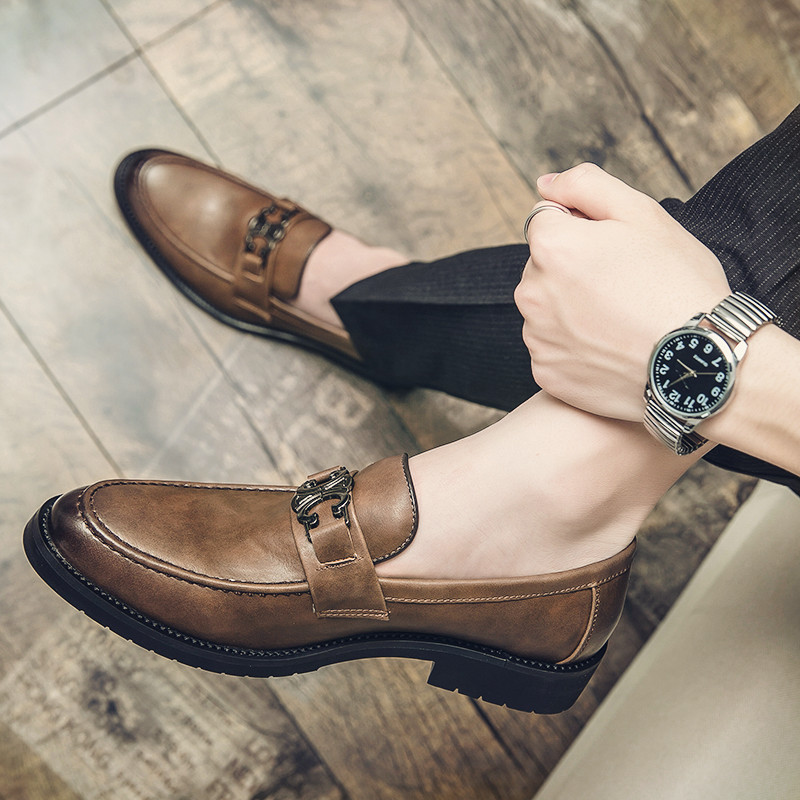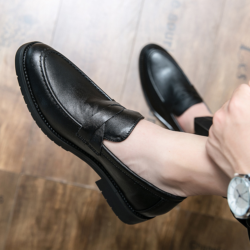 가을 Lefu Bean 신발 영국 비즈니스 캐주얼 슬립 온 신발 남성 통기성 청소년 헤어 가죽 신발스토어 가기