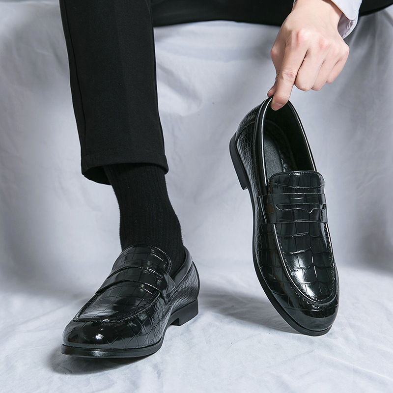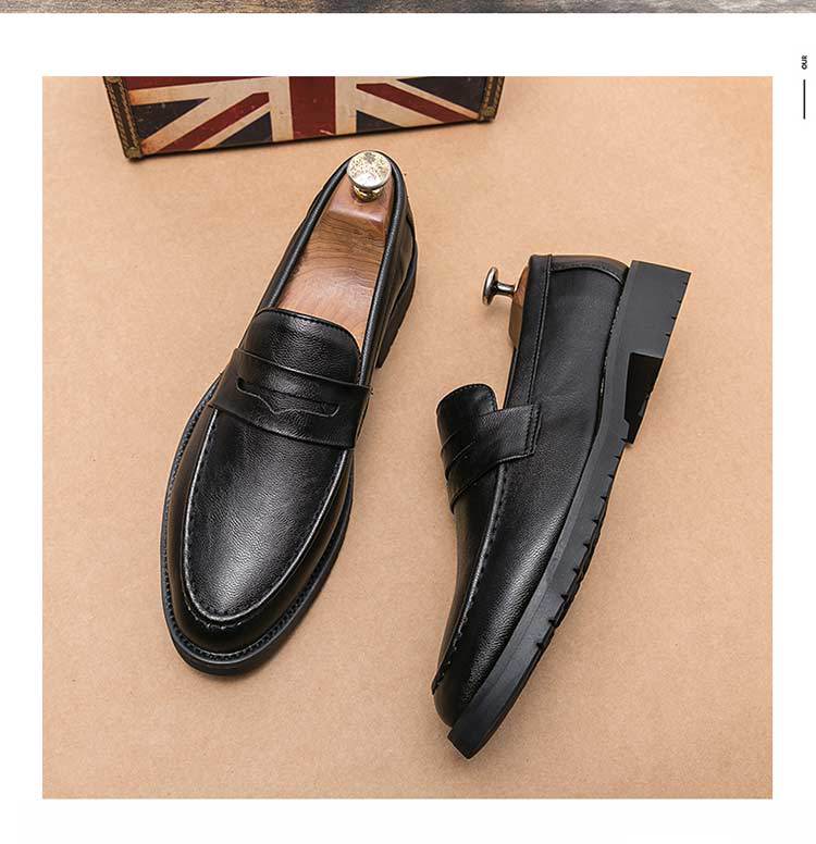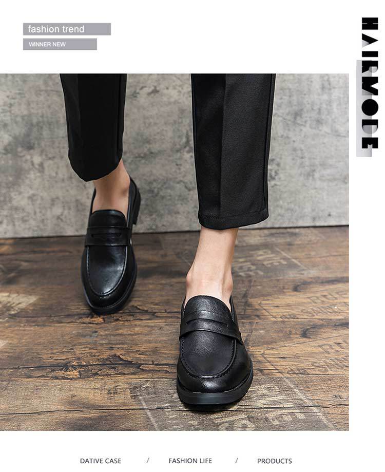 가을 Lefu Bean 신발 영국 비즈니스 캐주얼 슬립 온 신발 남성 통기성 청소년 헤어 가죽 신발