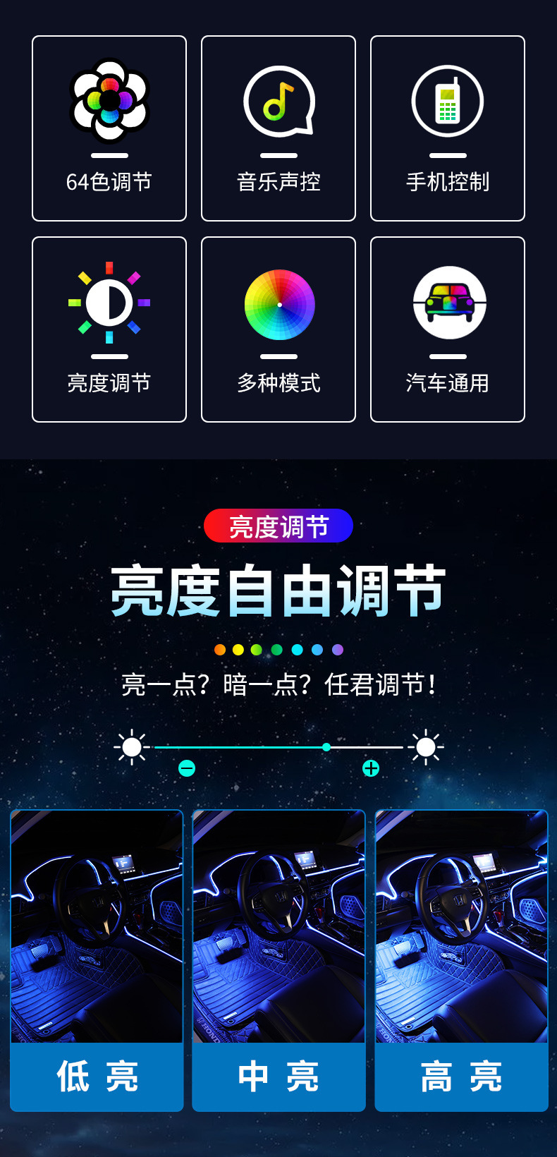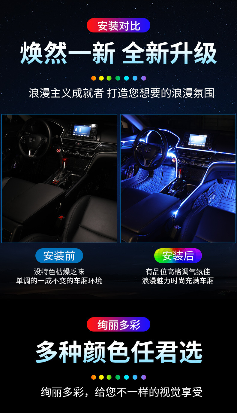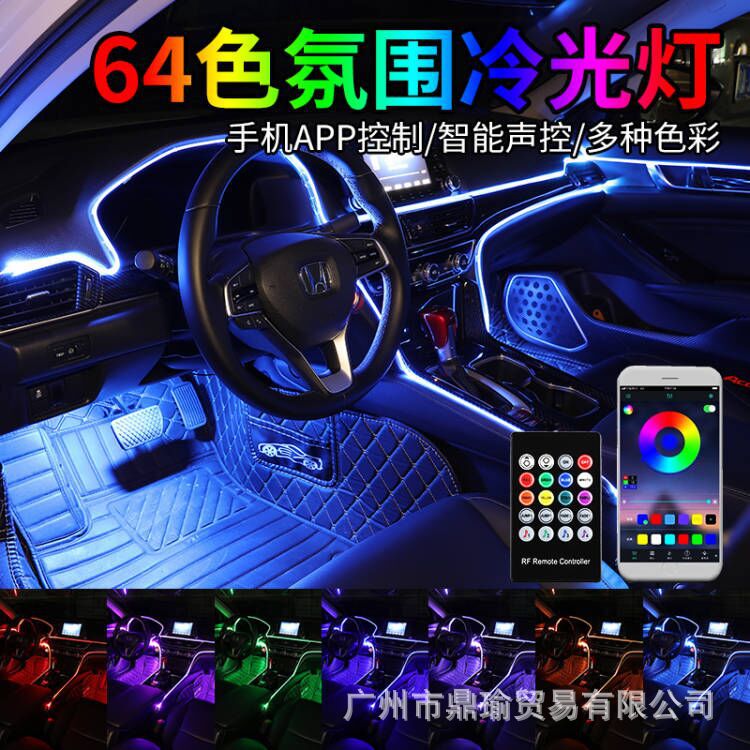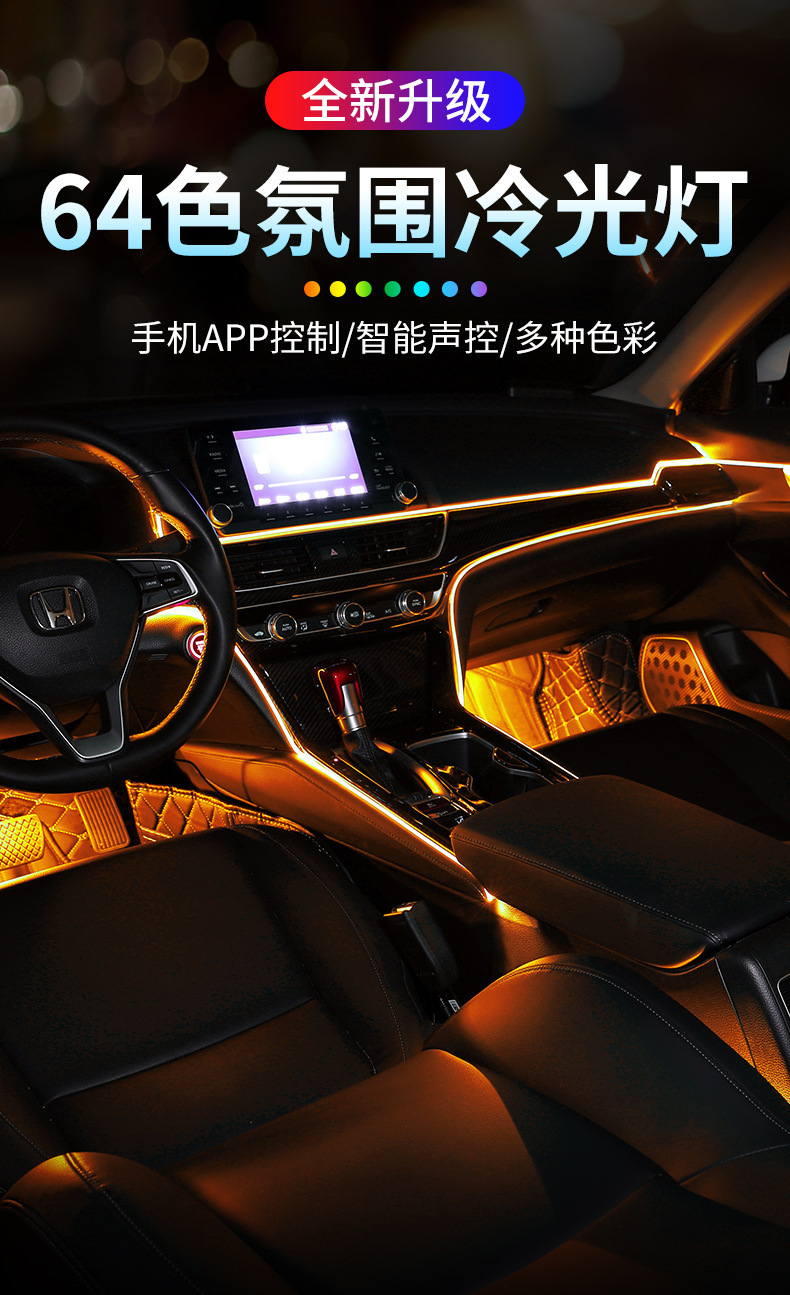 자동차 분위기 빛 RGB64 컬러 광섬유 장식 빛 APP 원격 제어 차가운 빛 배선 무료 자동차 인테리어 장식 분위기 빛스토어 가기