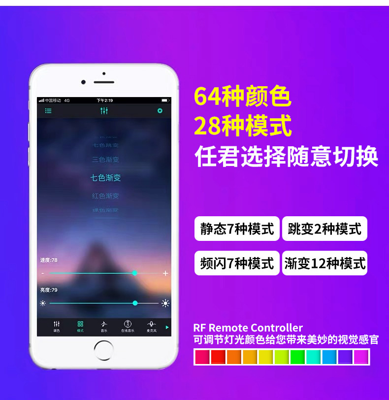 자동차 분위기 빛 RGB64 컬러 광섬유 장식 빛 APP 원격 제어 차가운 빛 배선 무료 자동차 인테리어 장식 분위기 빛