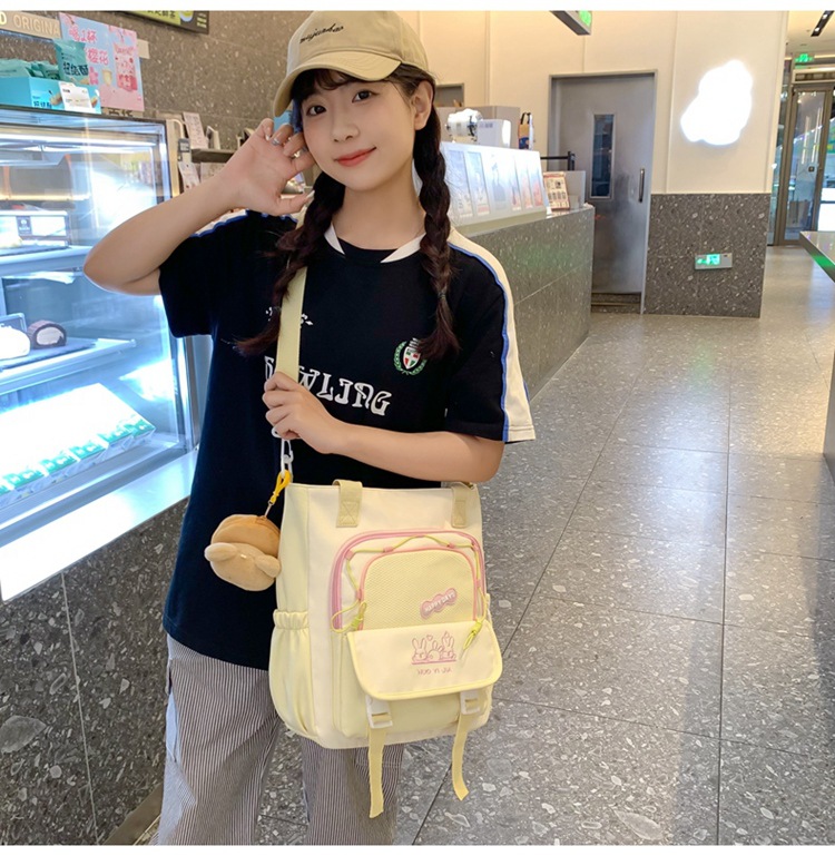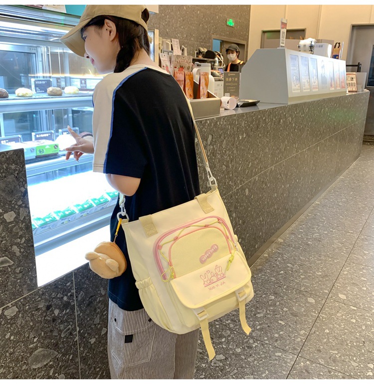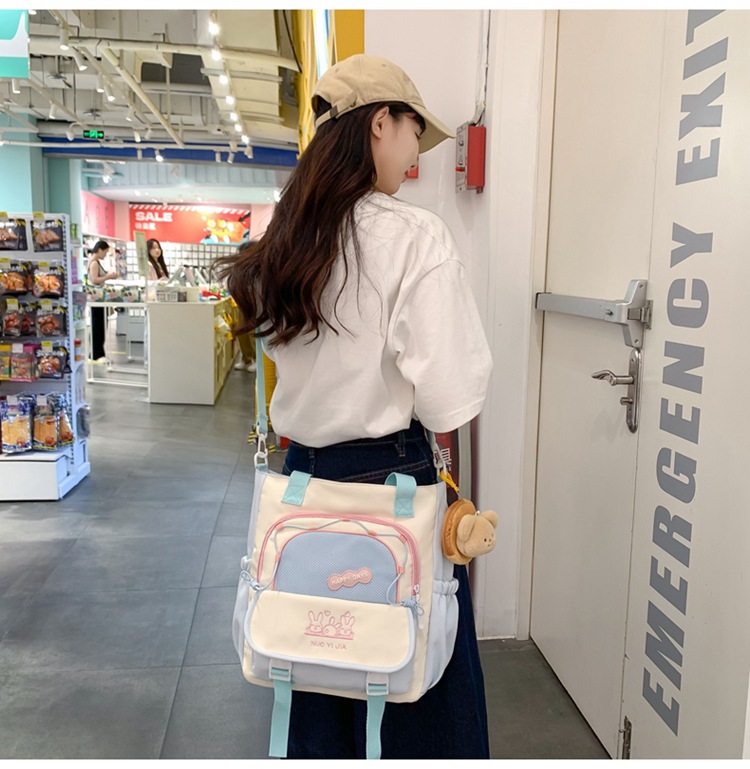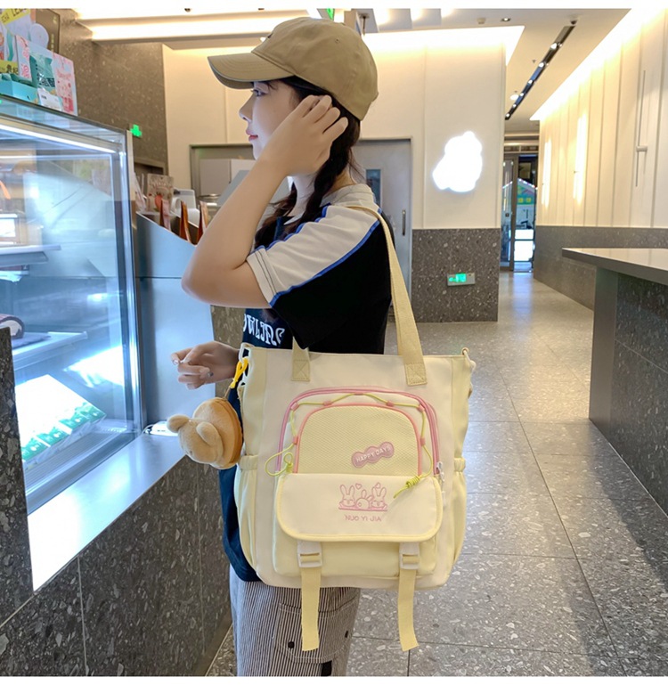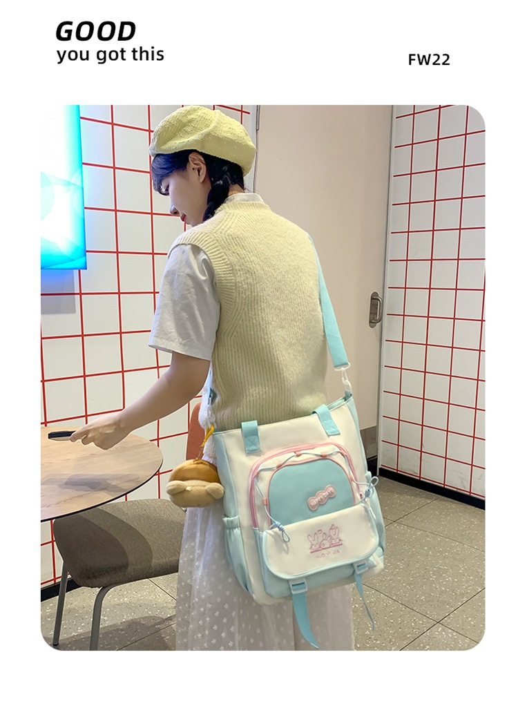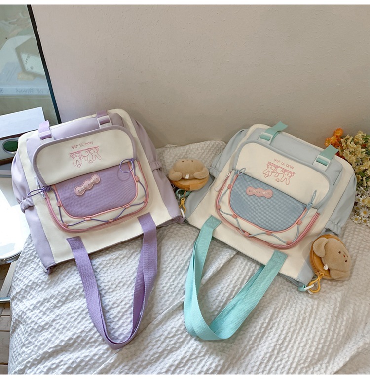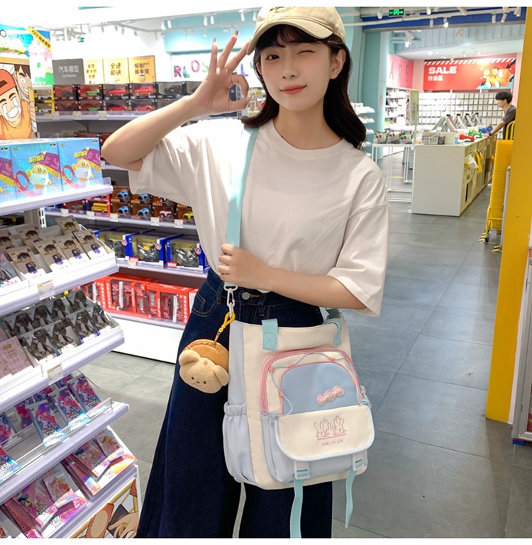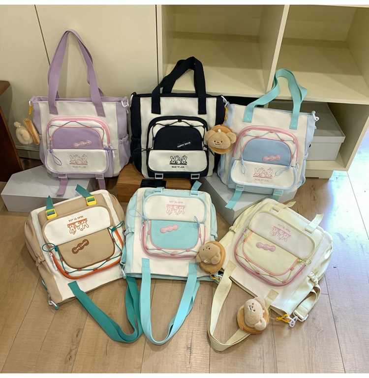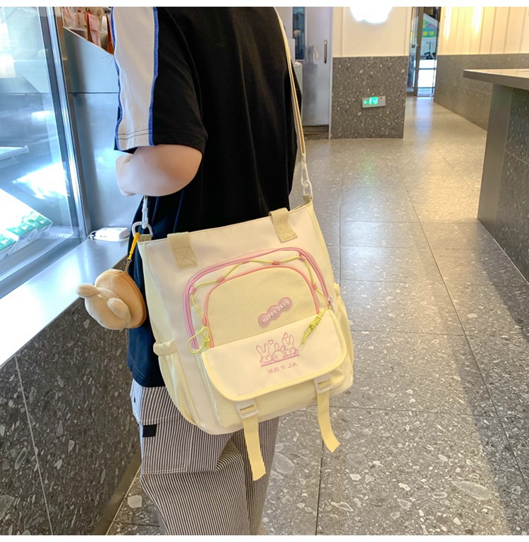 대학 중학생을위한 여성용 크로스 바디 캔버스 가방 Ins 스타일 귀여운 튜트 메이킹 대용량 핸드백 숄더 백