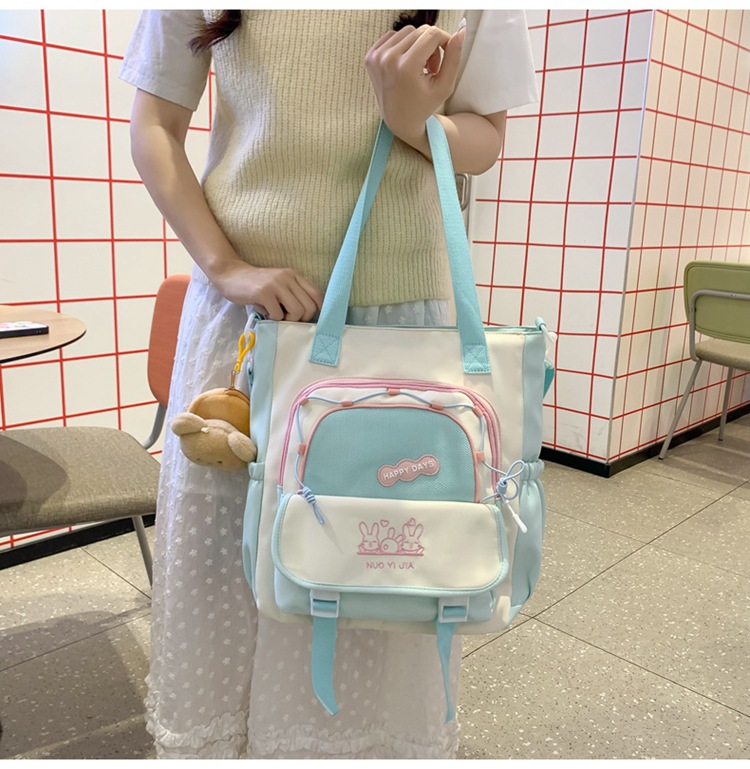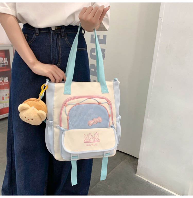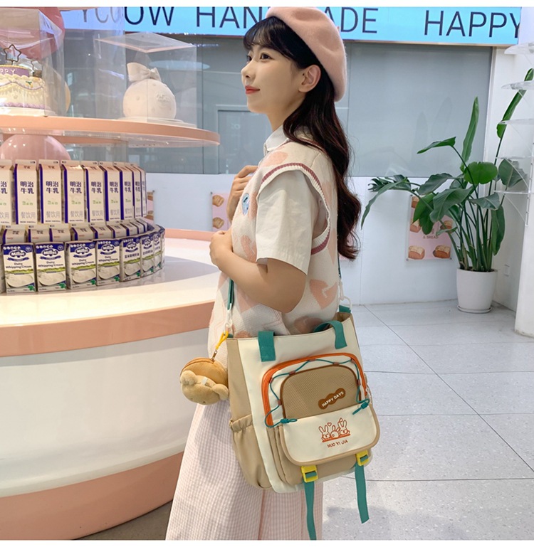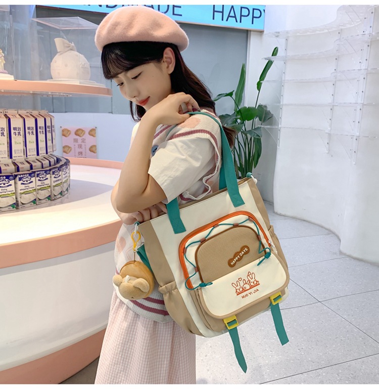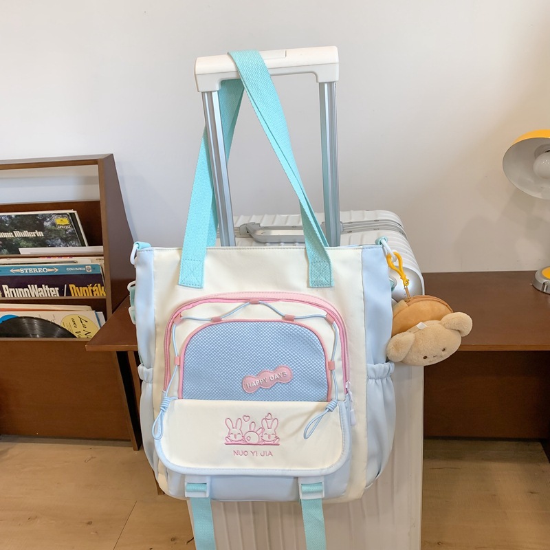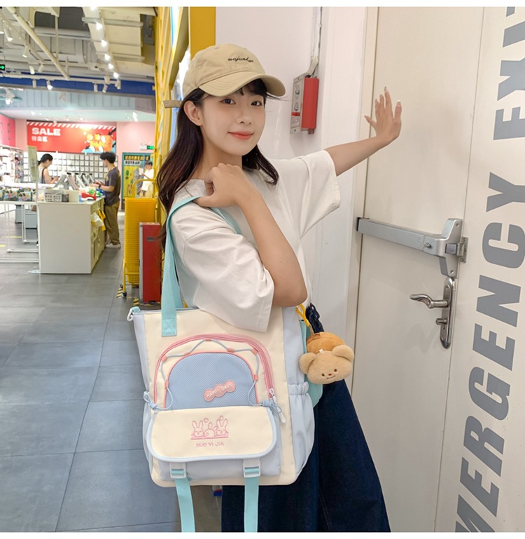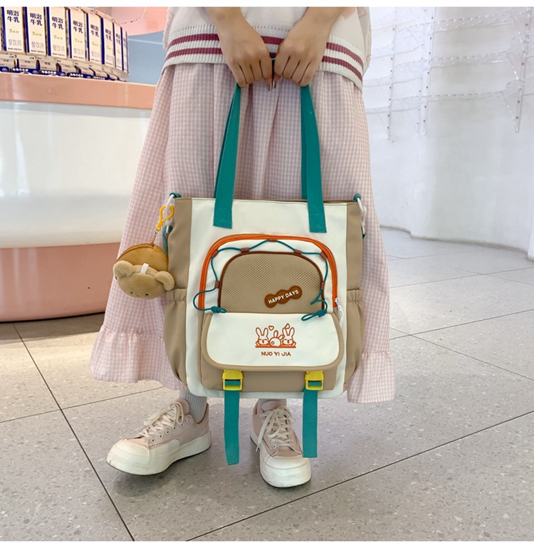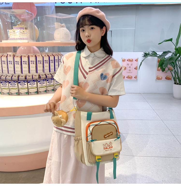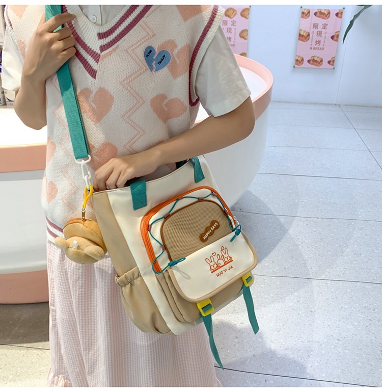 대학 중학생을위한 여성용 크로스 바디 캔버스 가방 Ins 스타일 귀여운 튜트 메이킹 대용량 핸드백 숄더 백