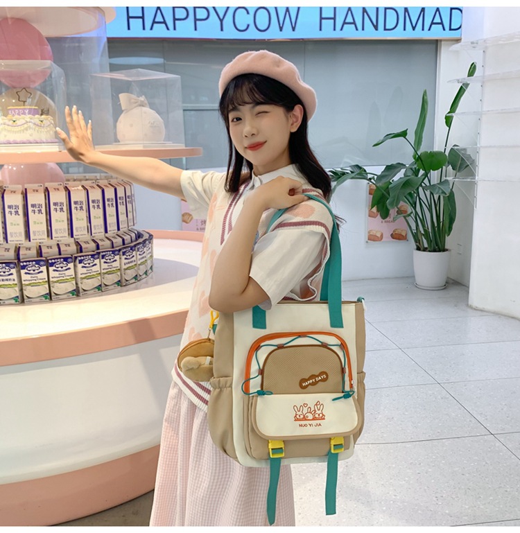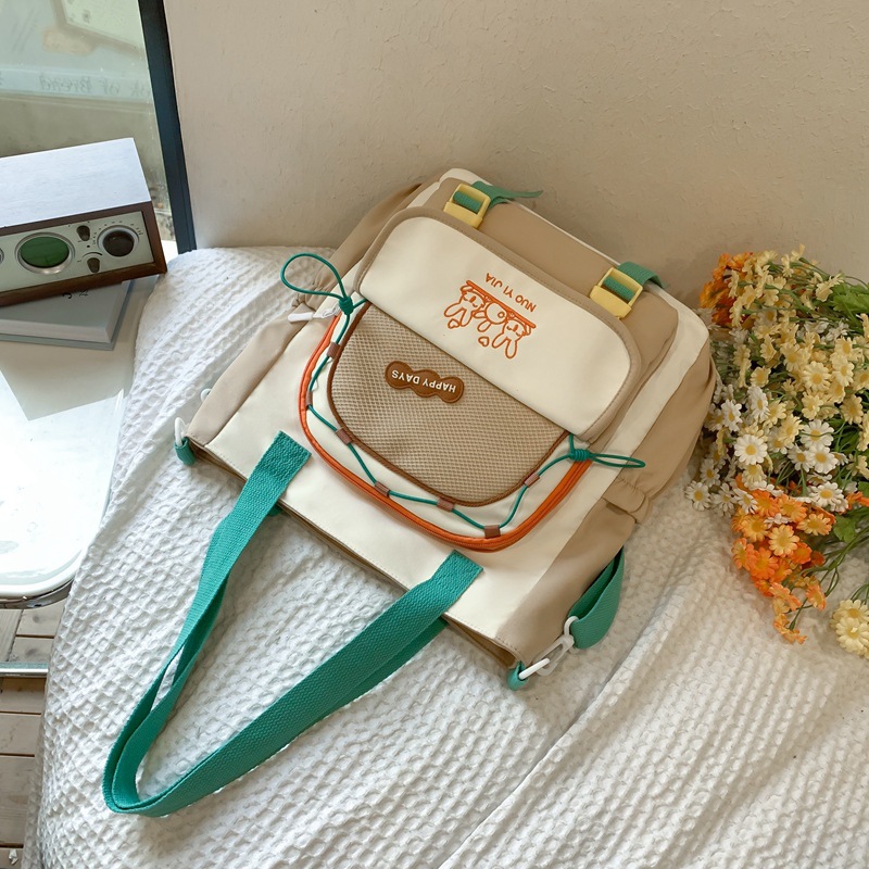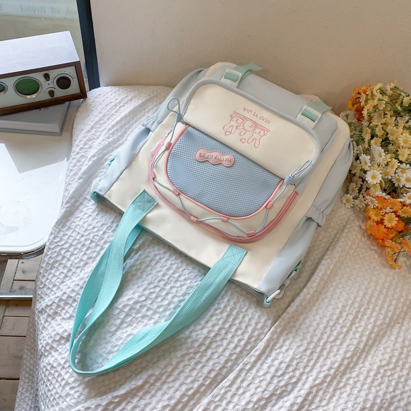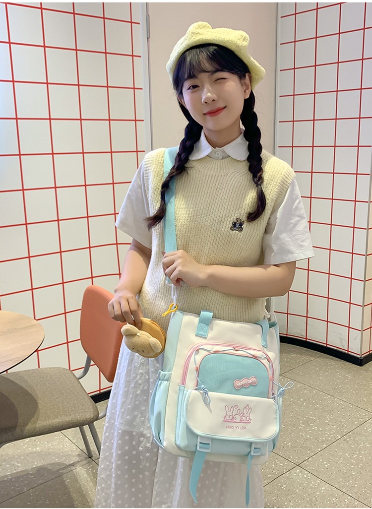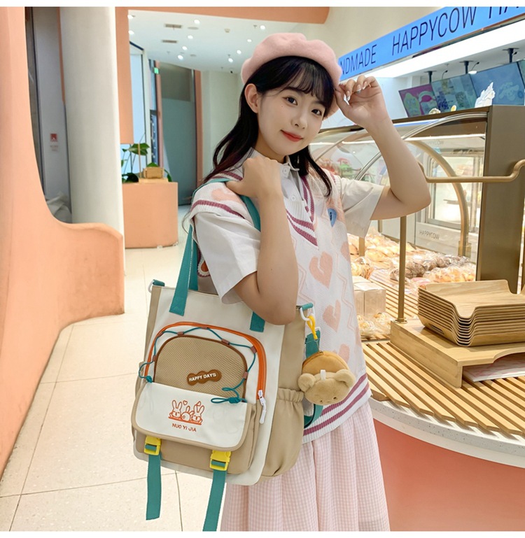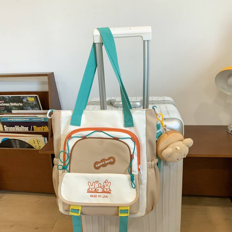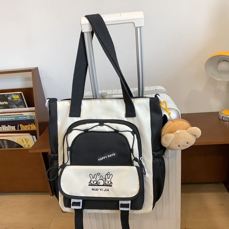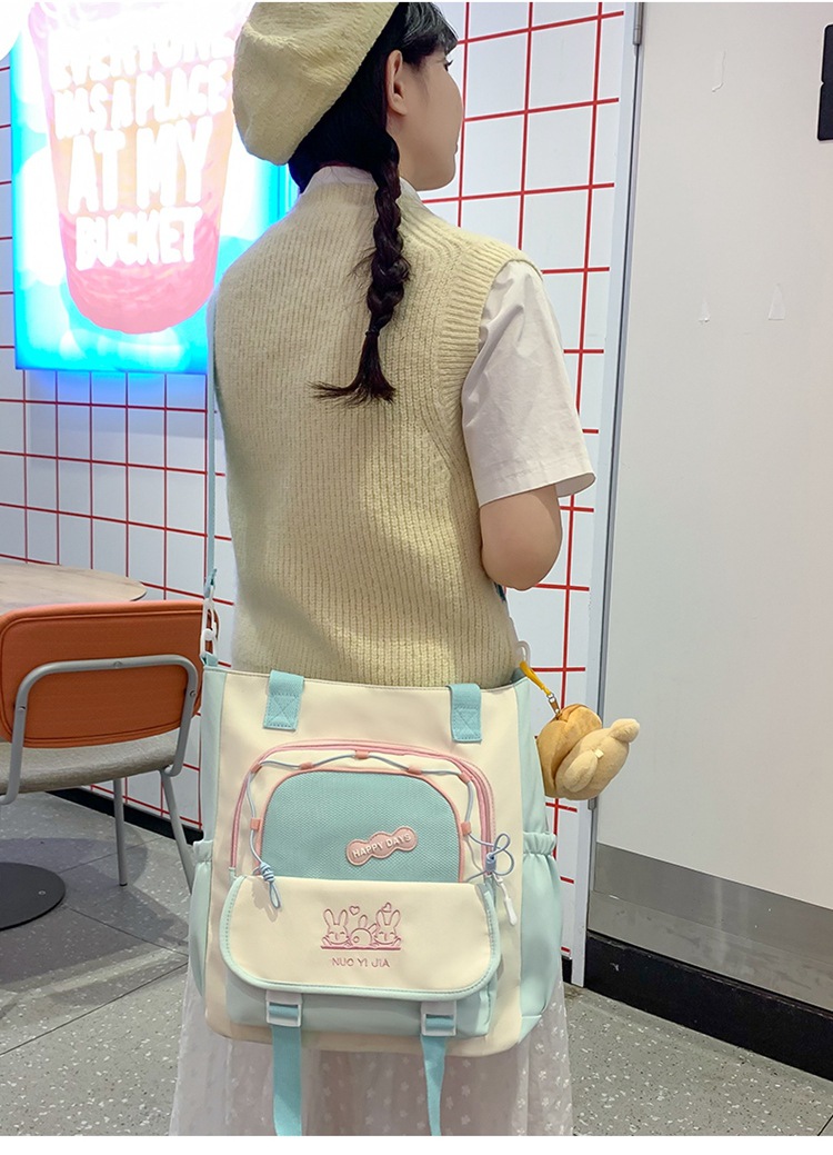 대학 중학생을위한 여성용 크로스 바디 캔버스 가방 Ins 스타일 귀여운 튜트 메이킹 대용량 핸드백 숄더 백