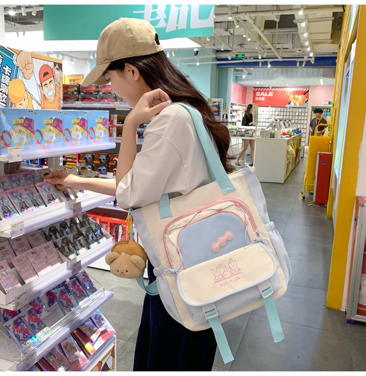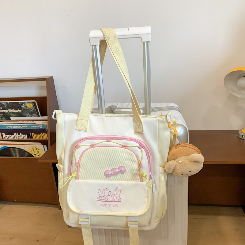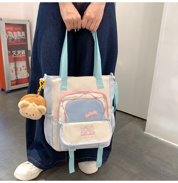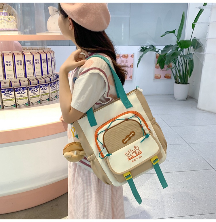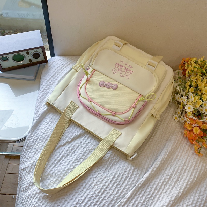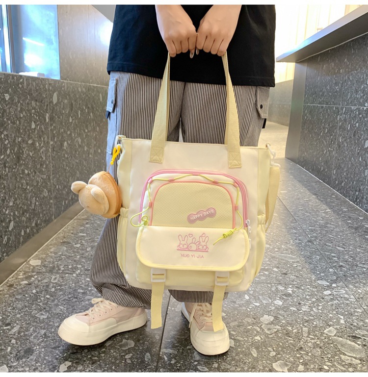 대학 중학생을위한 여성용 크로스 바디 캔버스 가방 Ins 스타일 귀여운 튜트 메이킹 대용량 핸드백 숄더 백스토어 가기