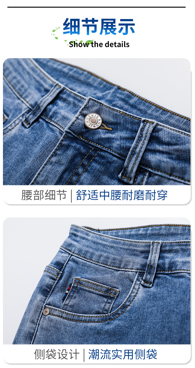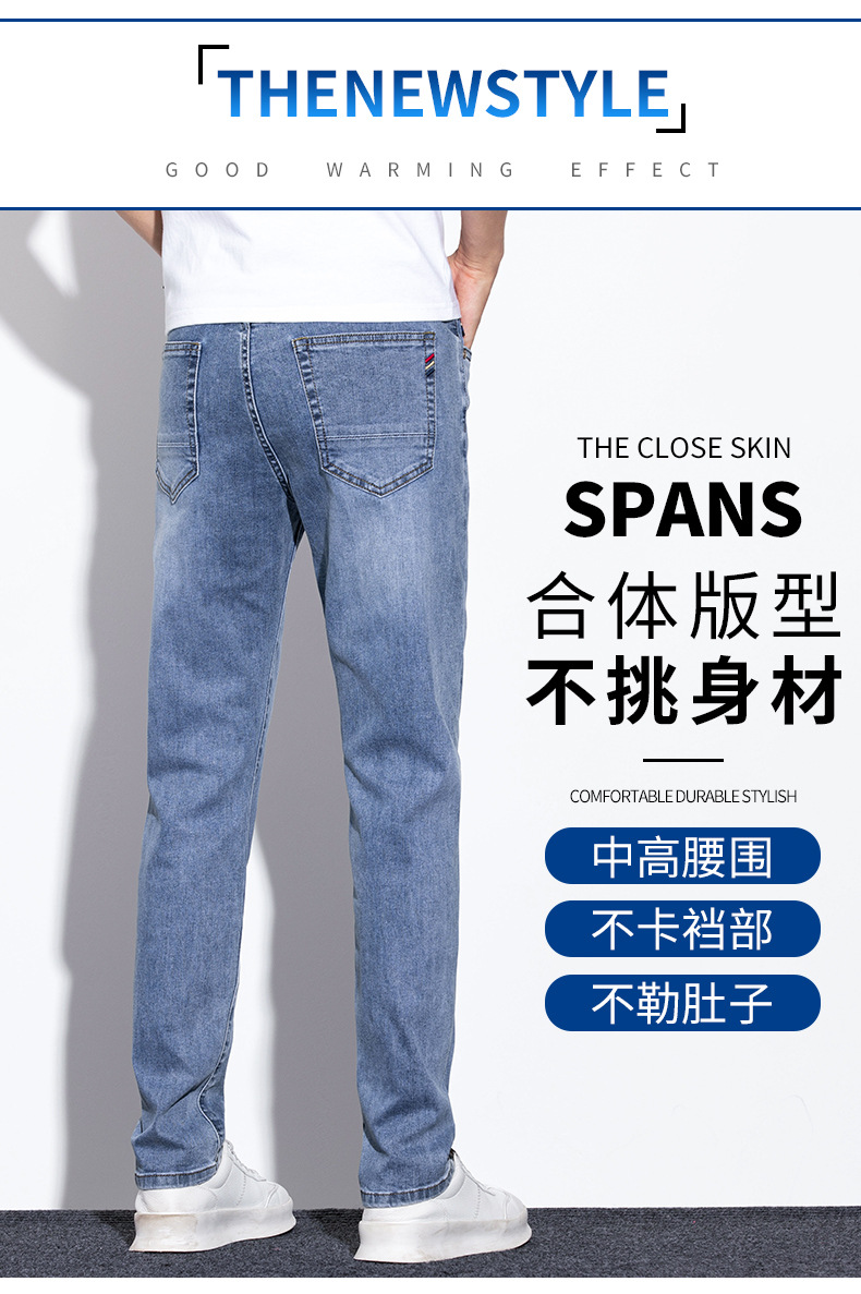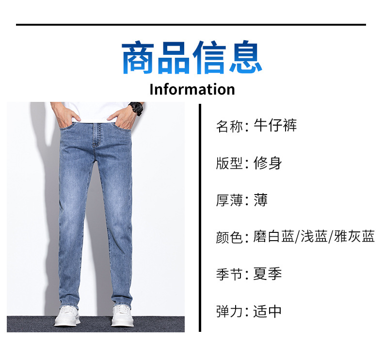 라이트 블루 청바지 남성 2024 년 여름 새로운 얇은 직선 캐주얼 바지 슬림 핏 비즈니스 스트레치 바지스토어 가기