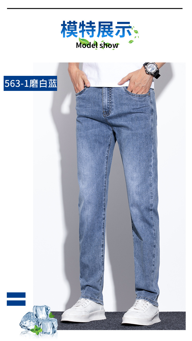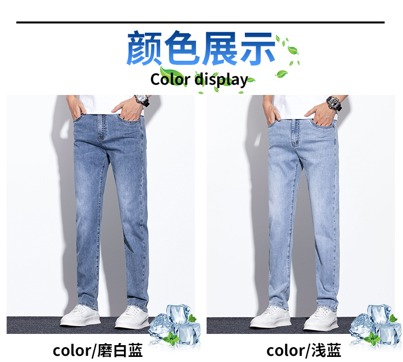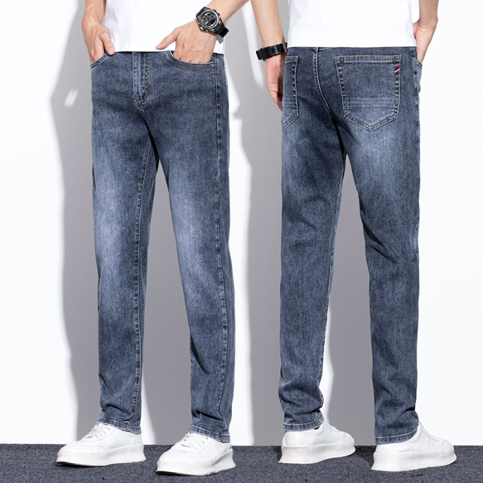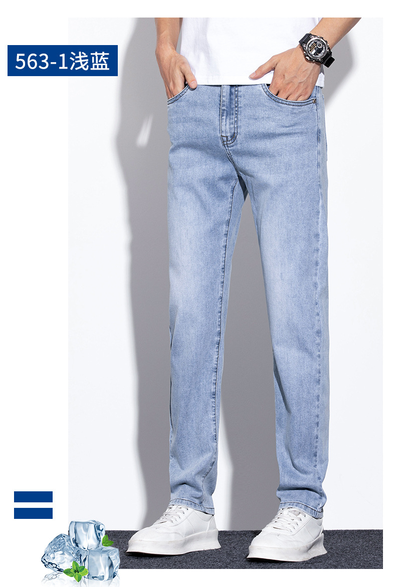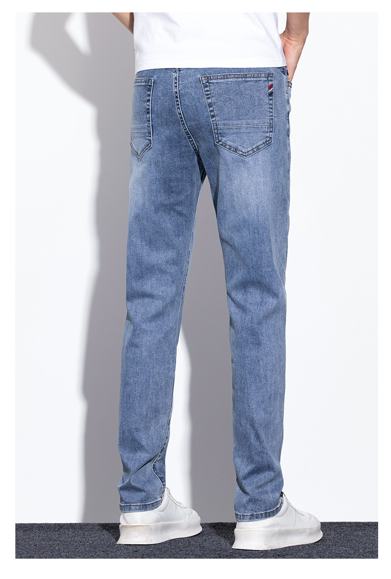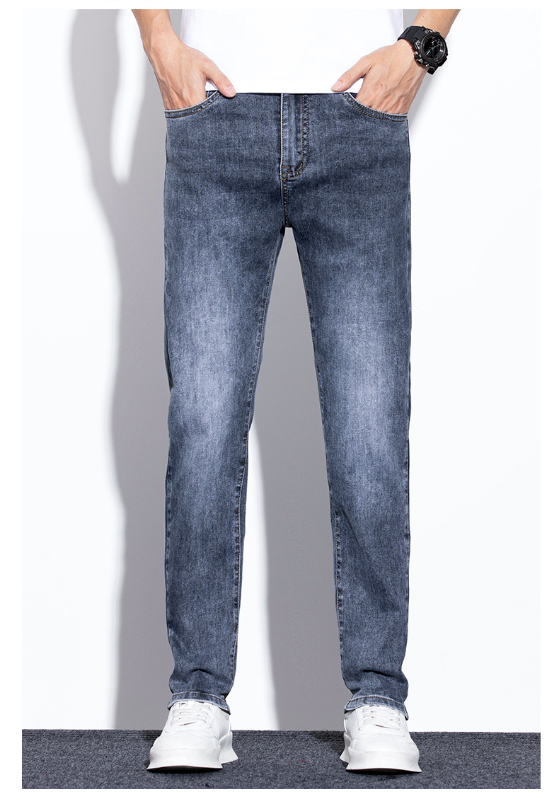 라이트 블루 청바지 남성 2024 년 여름 새로운 얇은 직선 캐주얼 바지 슬림 핏 비즈니스 스트레치 바지