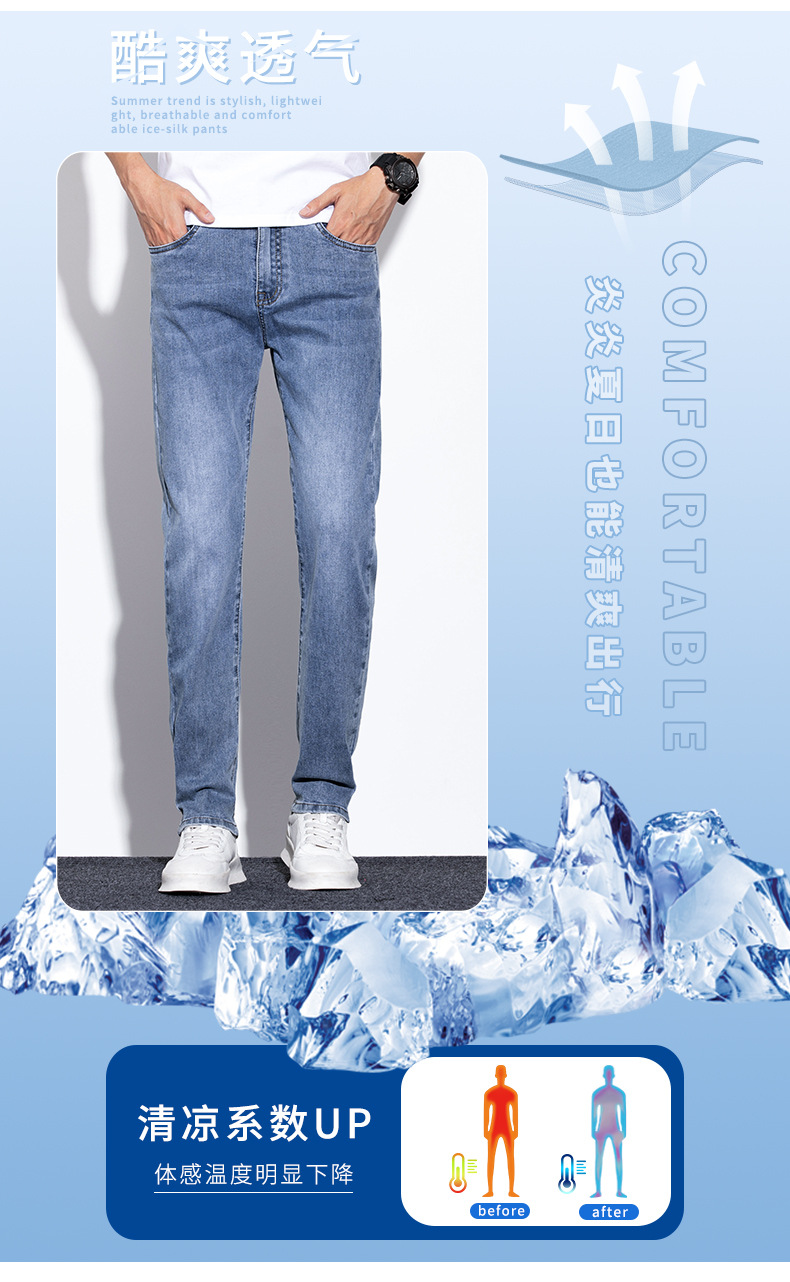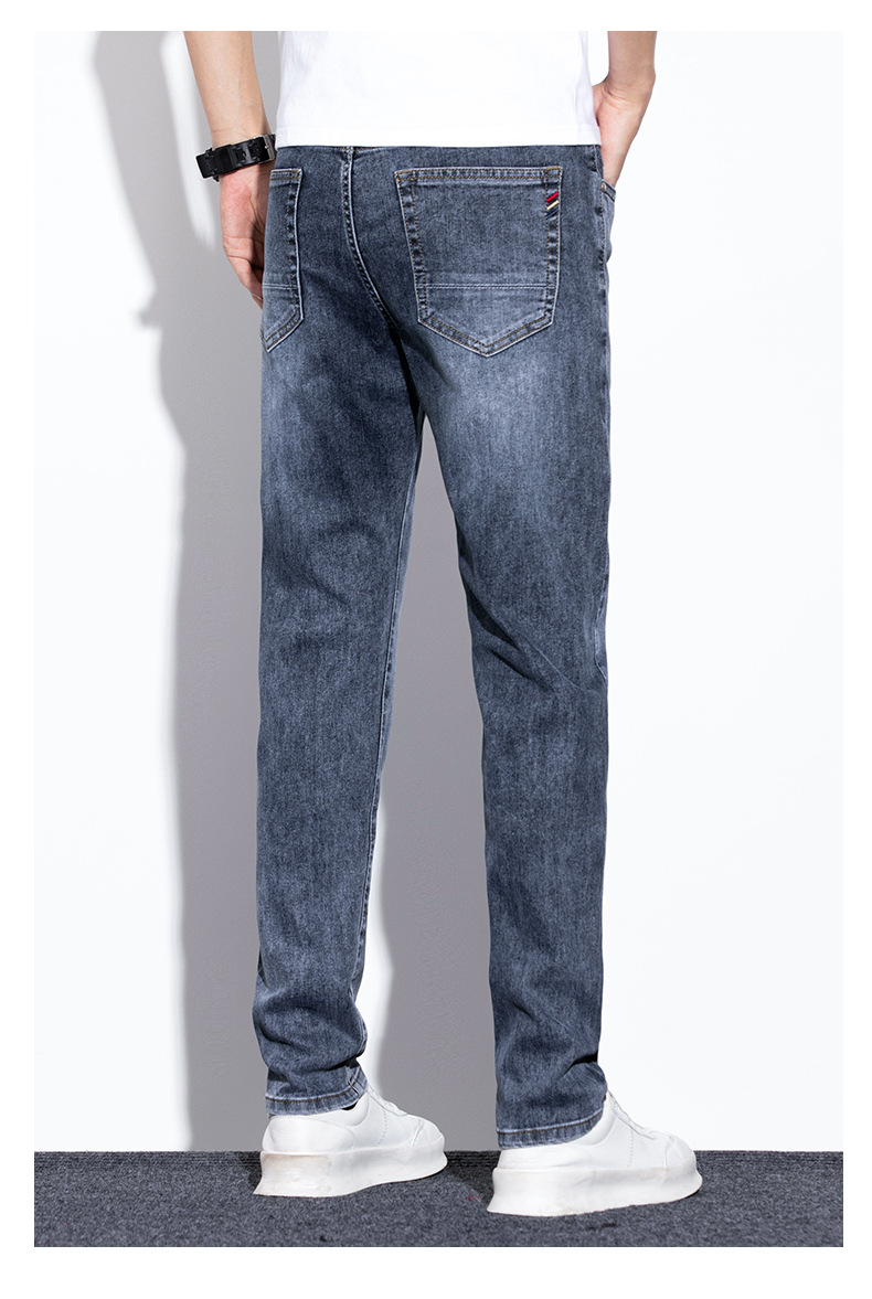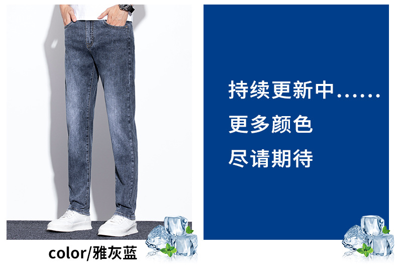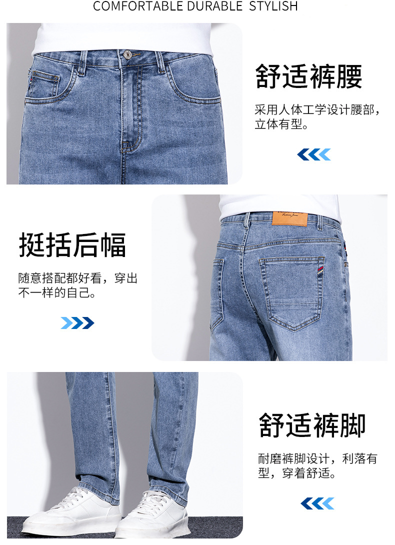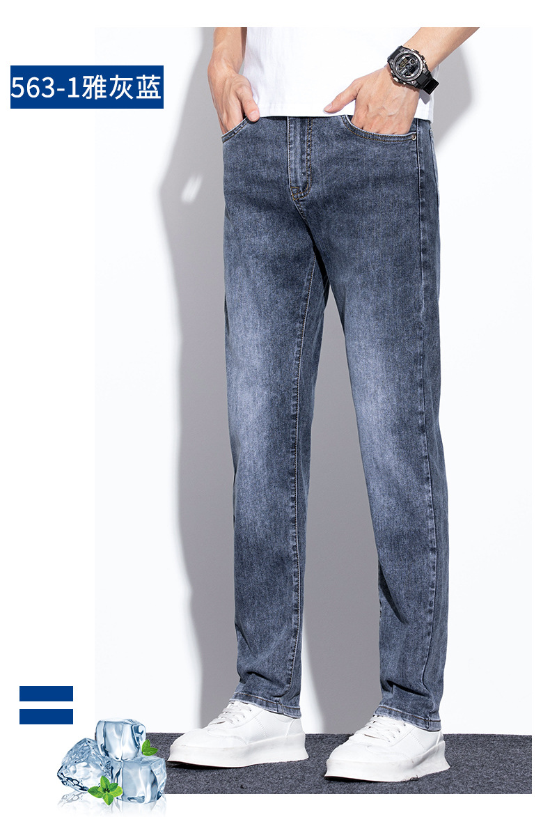 라이트 블루 청바지 남성 2024 년 여름 새로운 얇은 직선 캐주얼 바지 슬림 핏 비즈니스 스트레치 바지