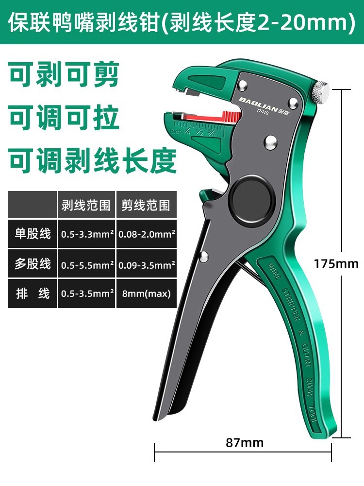 Baalian Wire Stripper 전기 와이어 당기기 다기능 덕빌 유형 필링 및 필링 플라이어 호크의 구운 와이어 커팅 플라이어 특수 도구스토어 가기