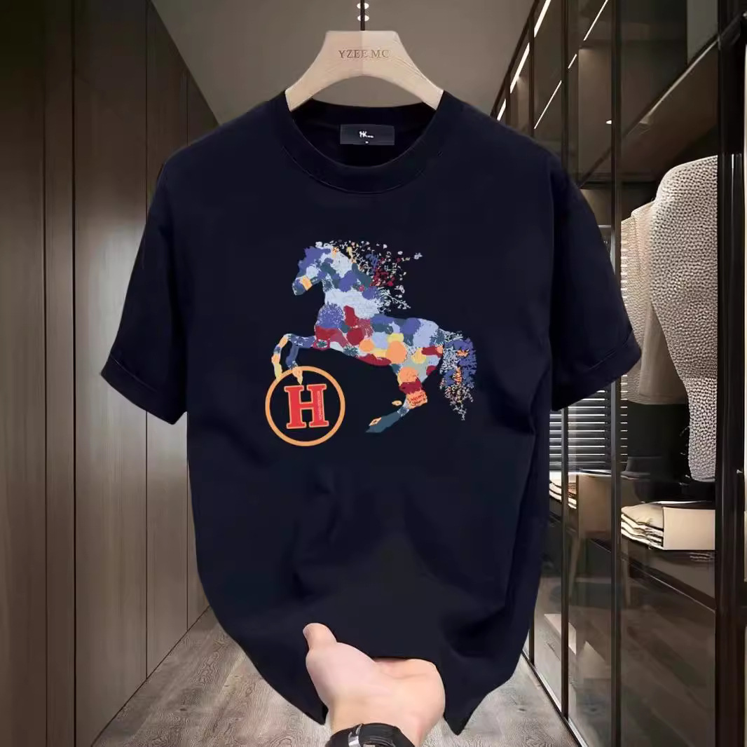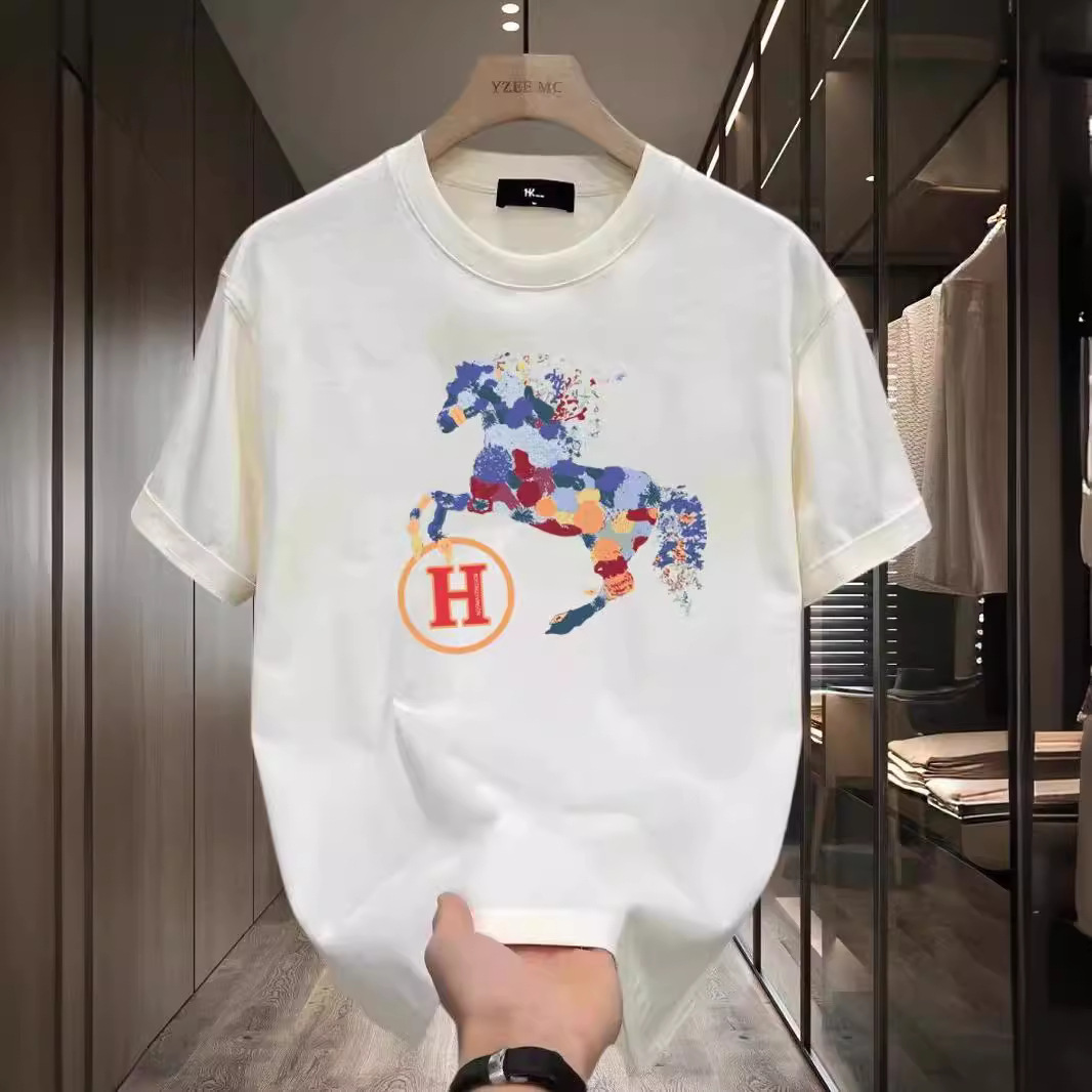 하이 퀄리티 남자의 새로운 H-말 코튼 티셔츠 반팔 미니멀리스트 디자인 인쇄 라운드 넥 패션 브랜드 탑