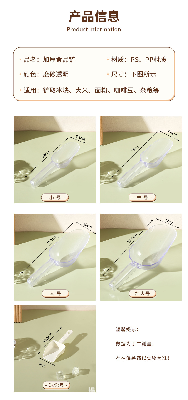 슈퍼마켓 상점가 두꺼운 플라스틱 얼음 삽 차 삽 쌀 삽 밀가루 곡물 쌀 사료 삽 작은 삽 음식 삽