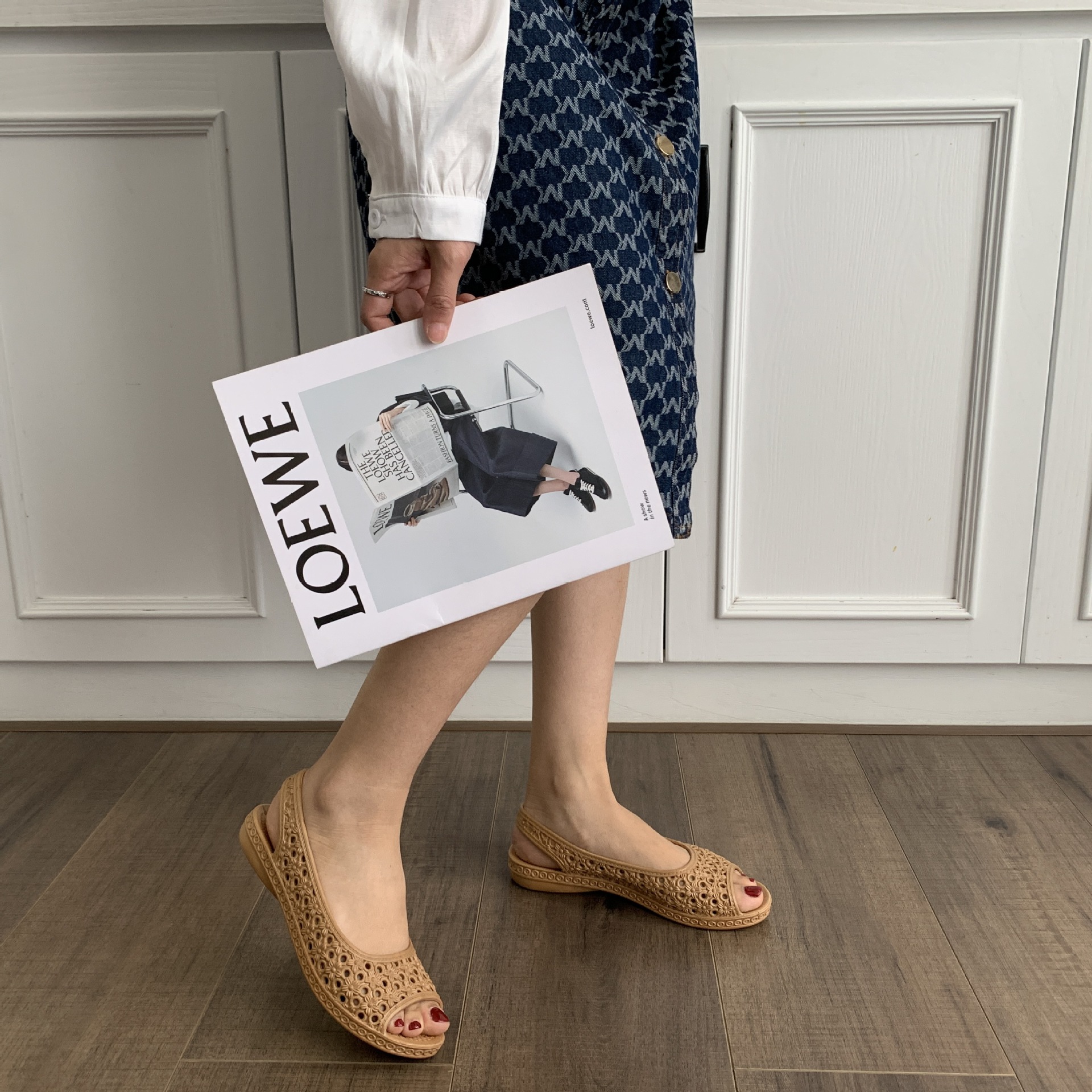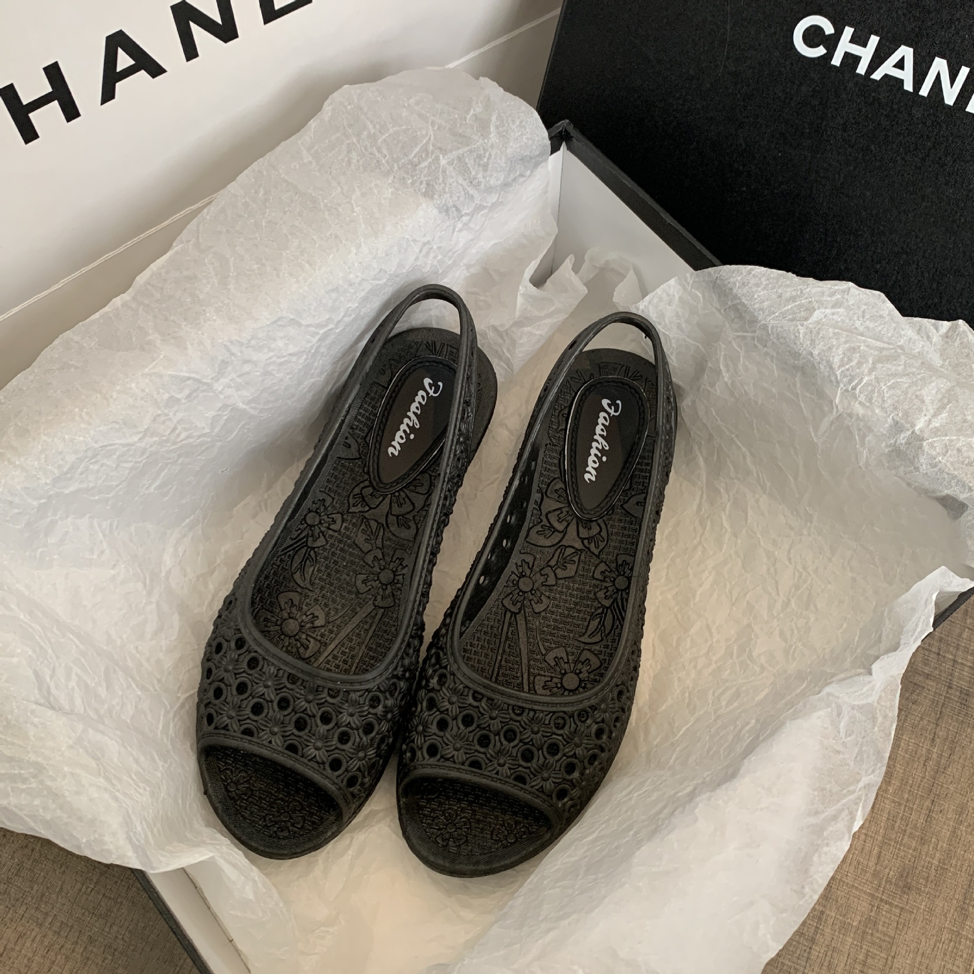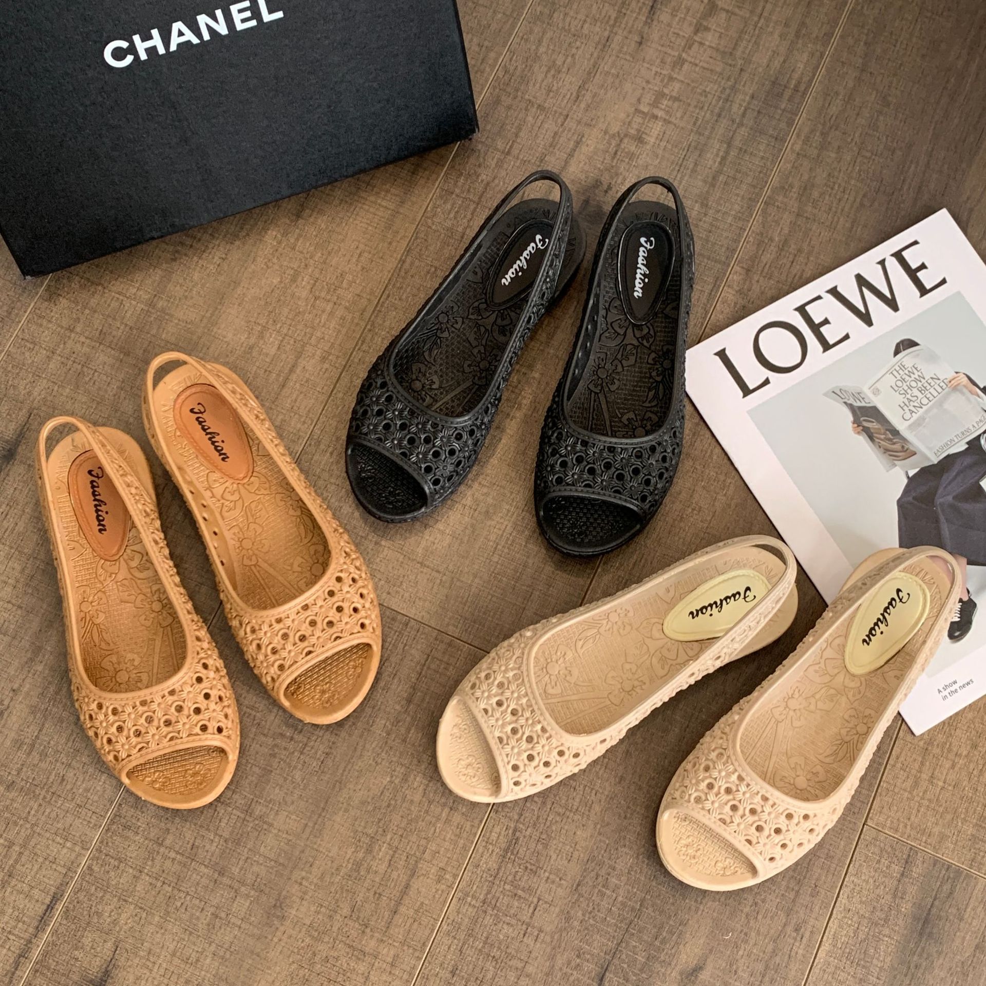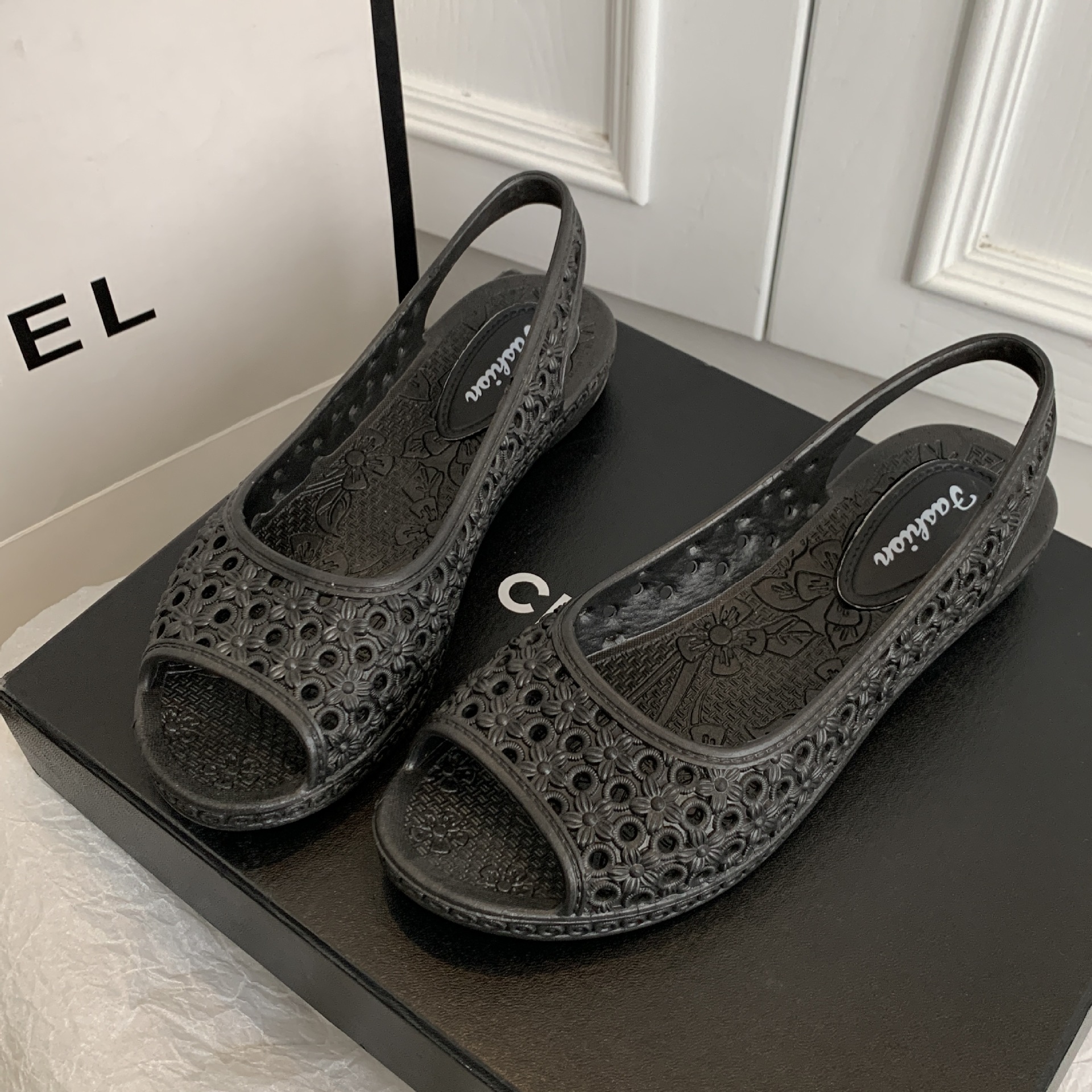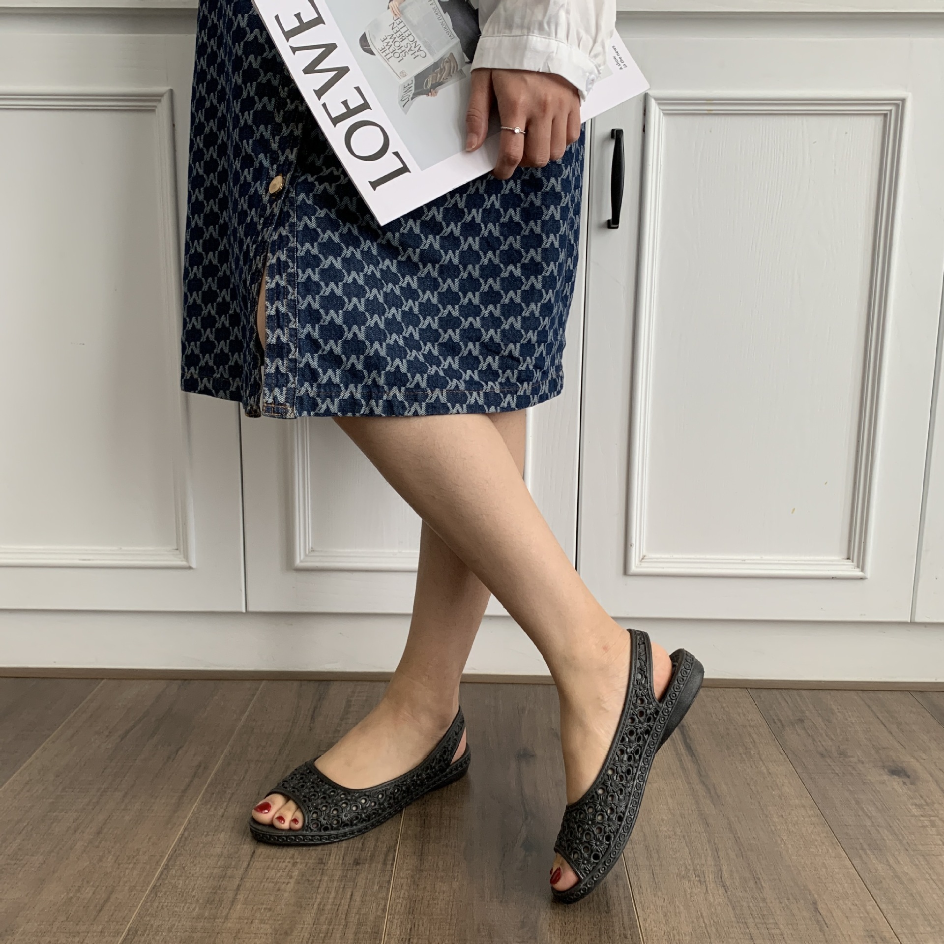 새로운 여름 샌들 솔리드 컬러 캐주얼 아웃웨어 패션 할로우 비치 플랫 리어 쿨 스트랩 여성용 신발
