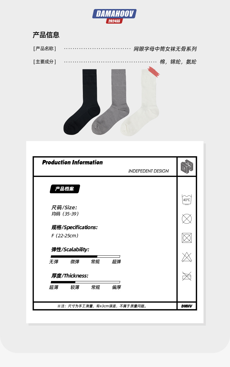 炎炎夏日给大家做了这款网眼字母中筒袜