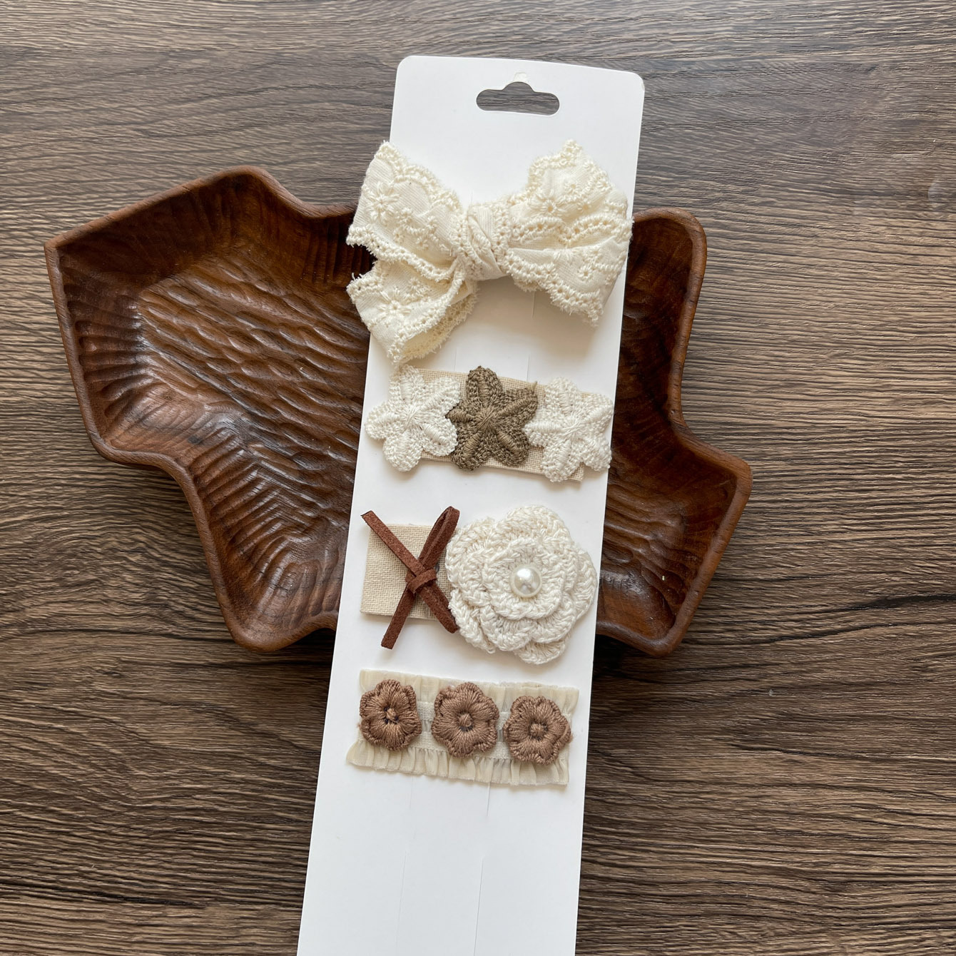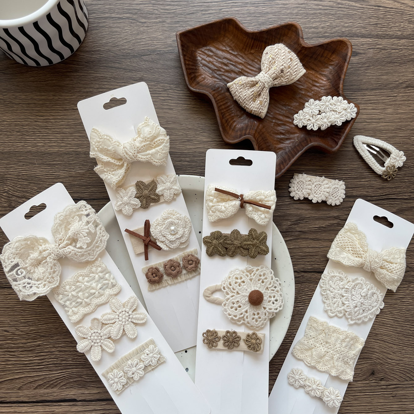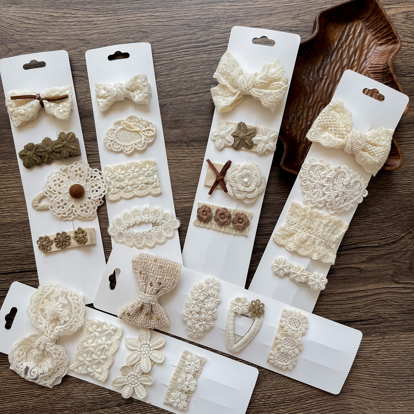 우유 카페 프렌치 레이스 원단 달콤한 활 소녀 4 팩 헤어핀 귀여운 꽃 방귀 헤드웨어스토어 가기