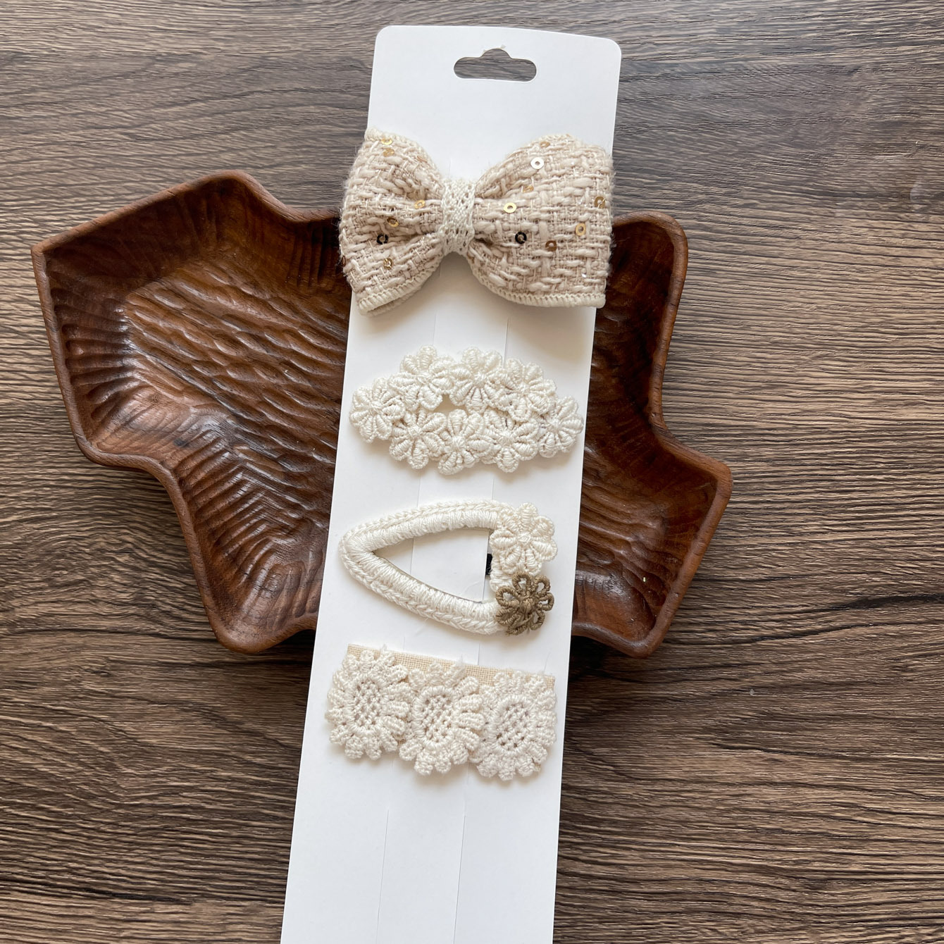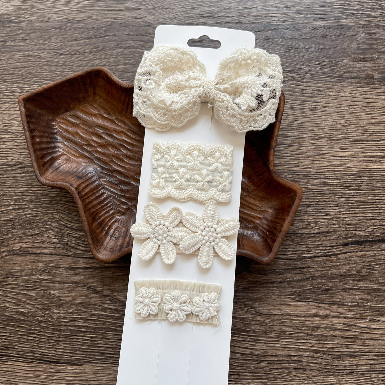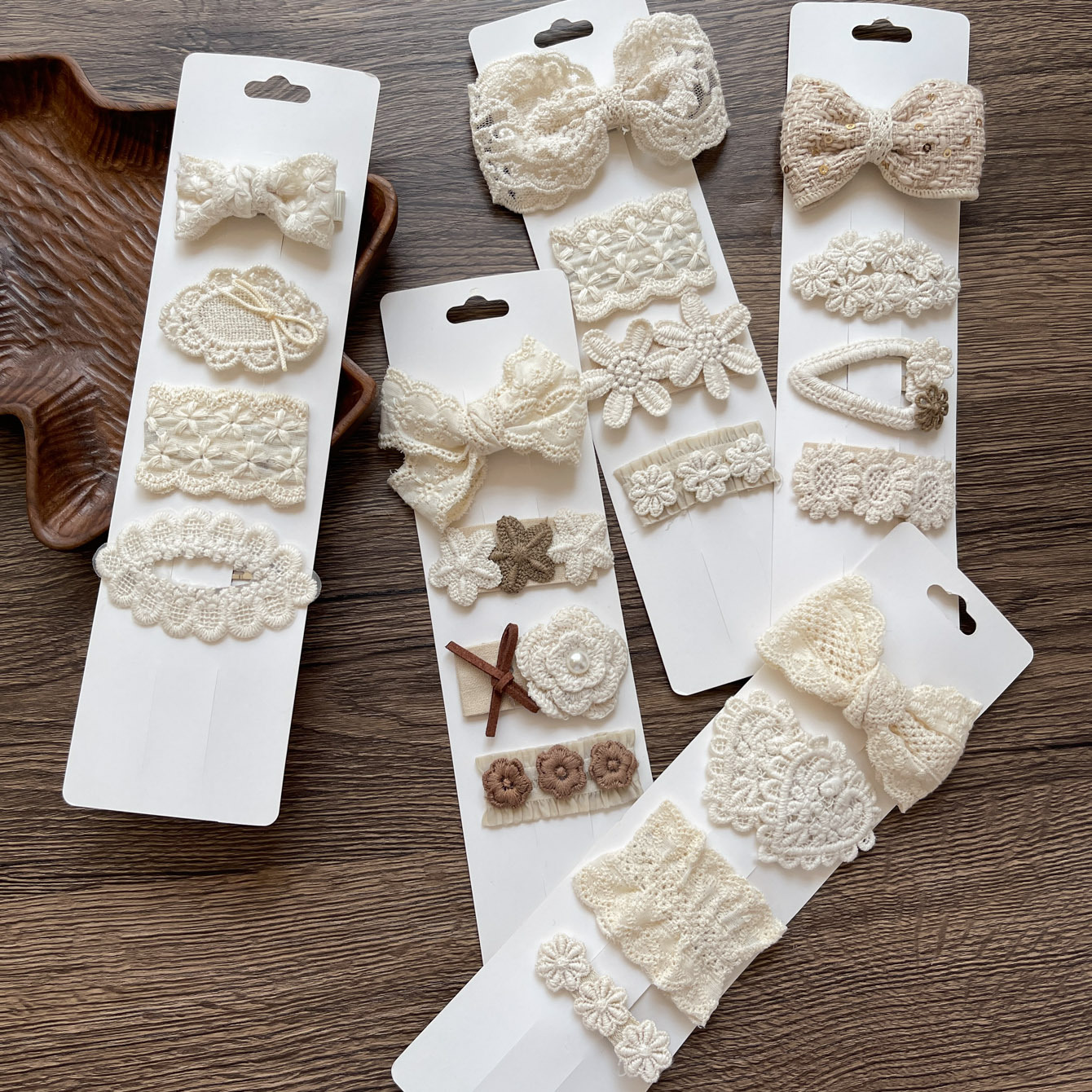 우유 카페 프렌치 레이스 원단 달콤한 활 소녀 4 팩 헤어핀 귀여운 꽃 방귀 헤드웨어