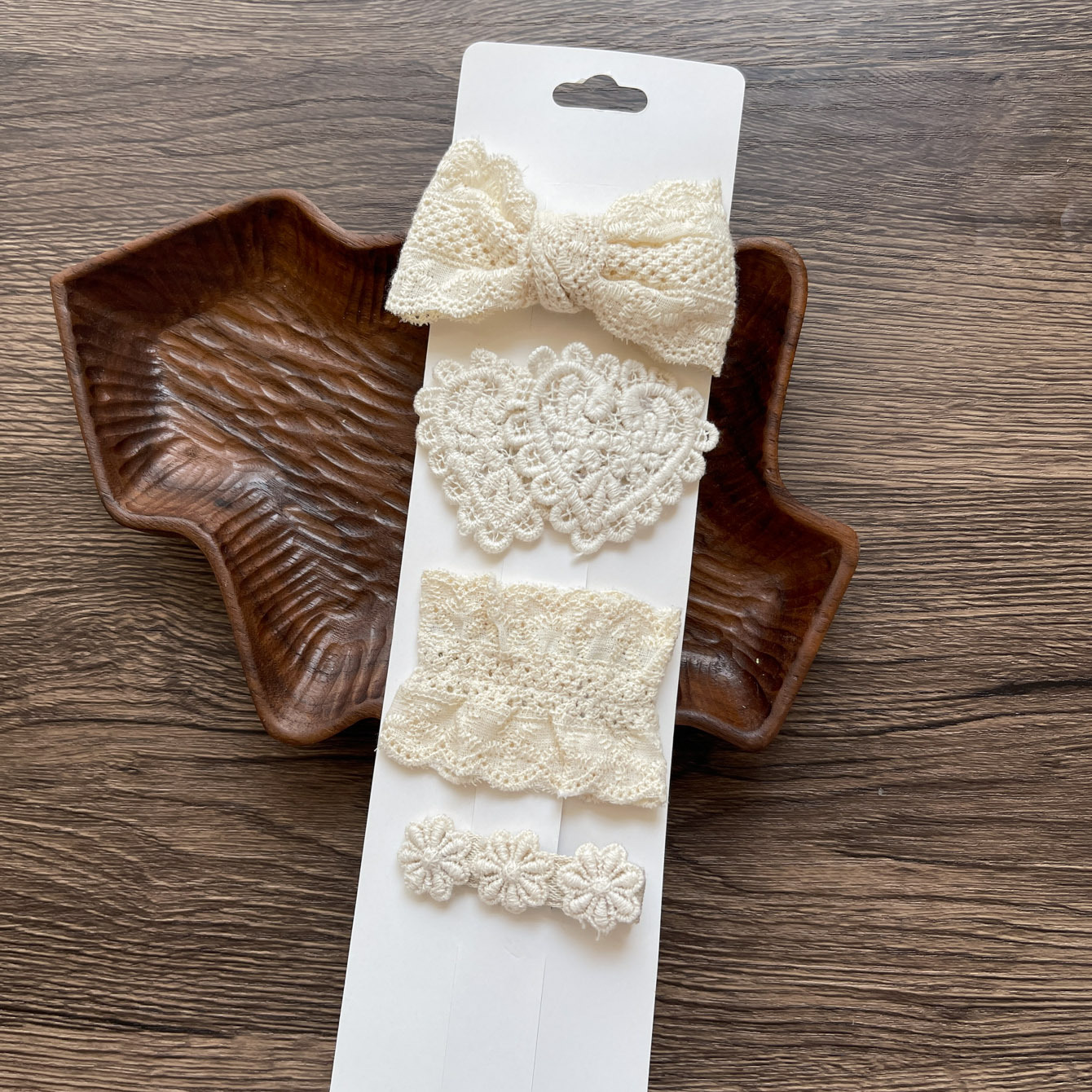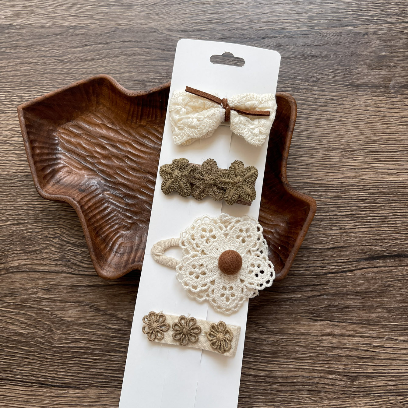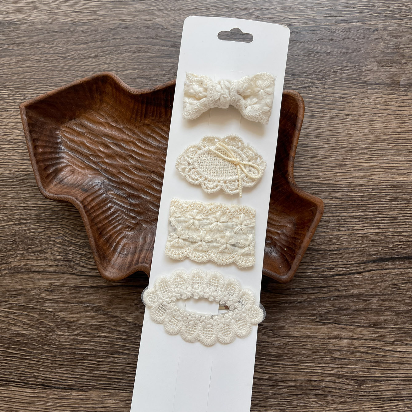 우유 카페 프렌치 레이스 원단 달콤한 활 소녀 4 팩 헤어핀 귀여운 꽃 방귀 헤드웨어