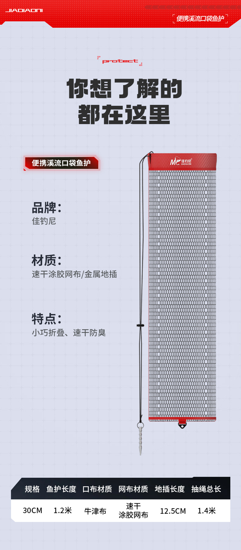 Jiadaoni Creek 포켓 물고기 보호 빠른 건조 야생 낚시 특수 작은 접이식 경량 휴대용 접착제 코팅 그물 포켓 작은 물고기 보호스토어 가기