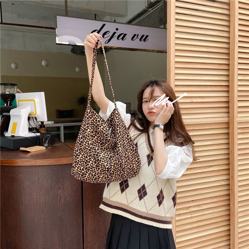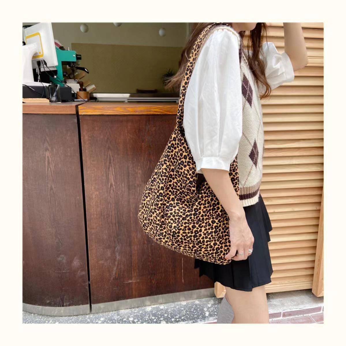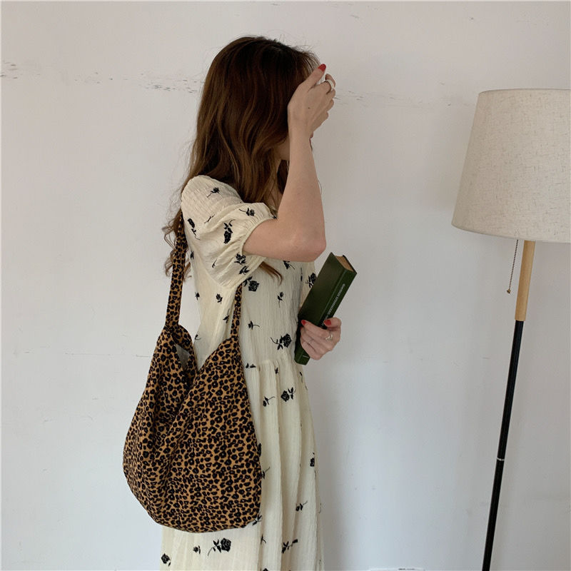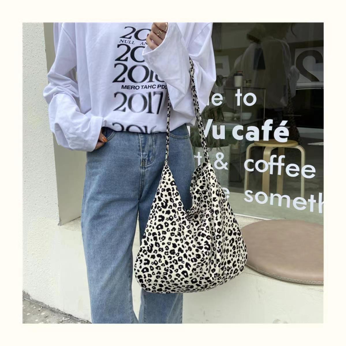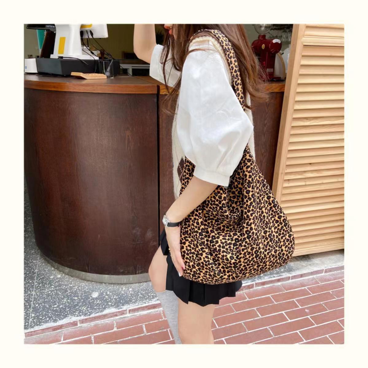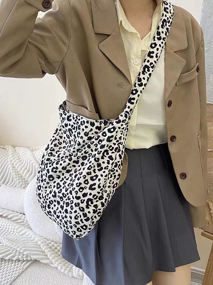 엄선된 레오파드 프린트 일본과 한국의 대용량 크로스백, 여대생을 위한 레이지 스타일 숄더 캔버스 백, 다용도 가방스토어 가기
